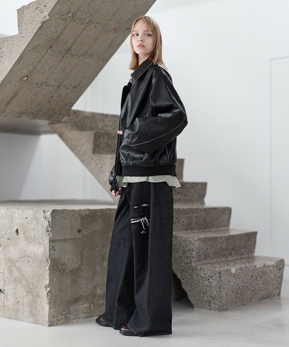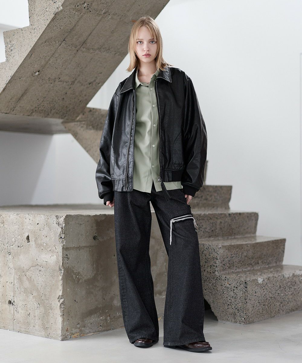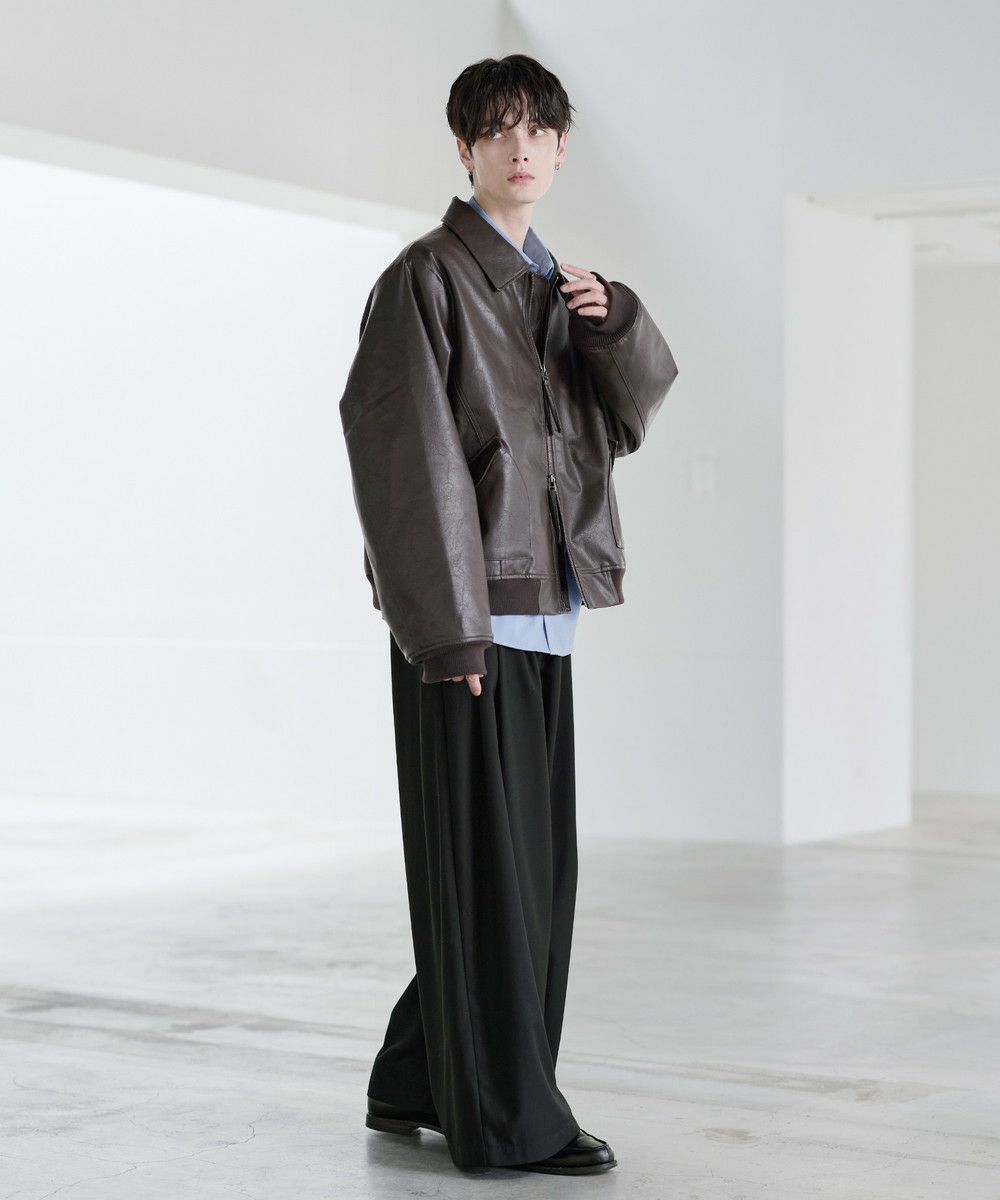 インナーには、カットソーをはじめ、シャツやニット、スウェットやパーカーなどと幅広いアイテムと合わせていただけます。リラックス感のあるサイジングのため、ボトムにはワイドシルエットのアイテムと相性抜群。ダブルジップ仕様でジップの開け具合でコーデの幅も広がります。