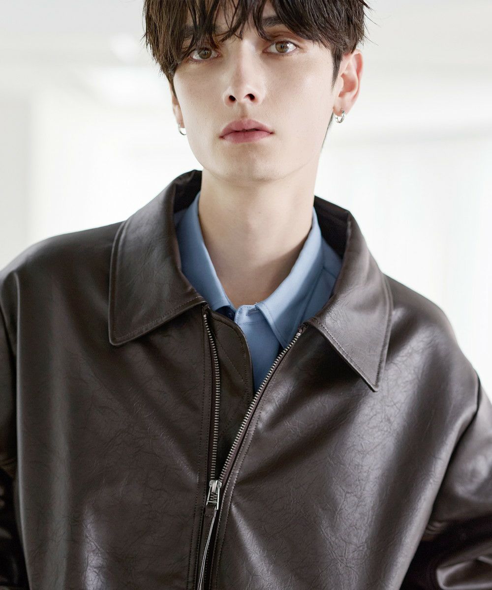 革のレザー同様の高級感とシンプルさを併せ持ったショートブルゾン。質感にこだわったリアルレザーのようなシボ感と、ヴィンテージライクな雰囲気が魅力です。洗練された無駄のないディティールで、コーデに取り入れやすいデザインに仕上げました。