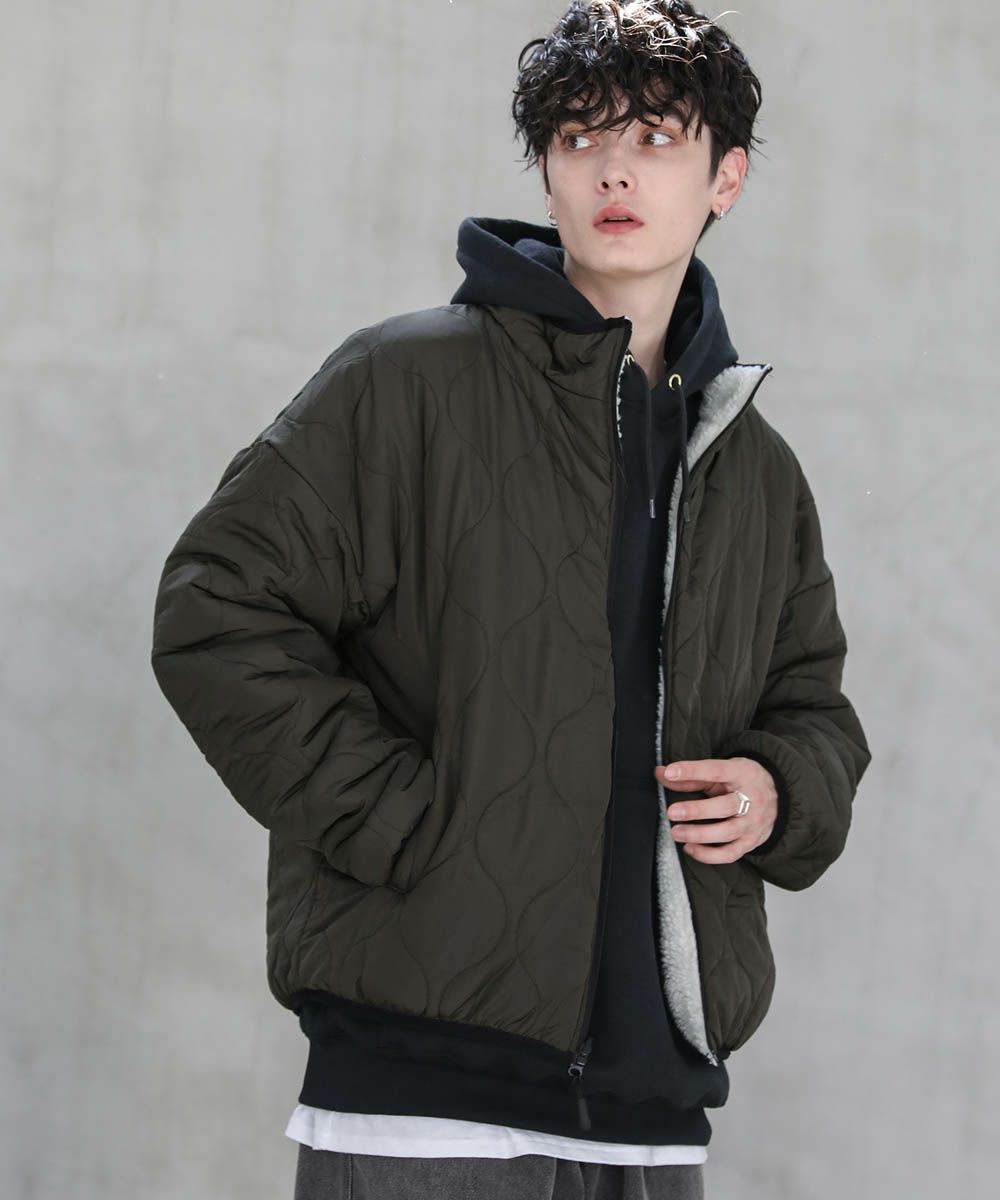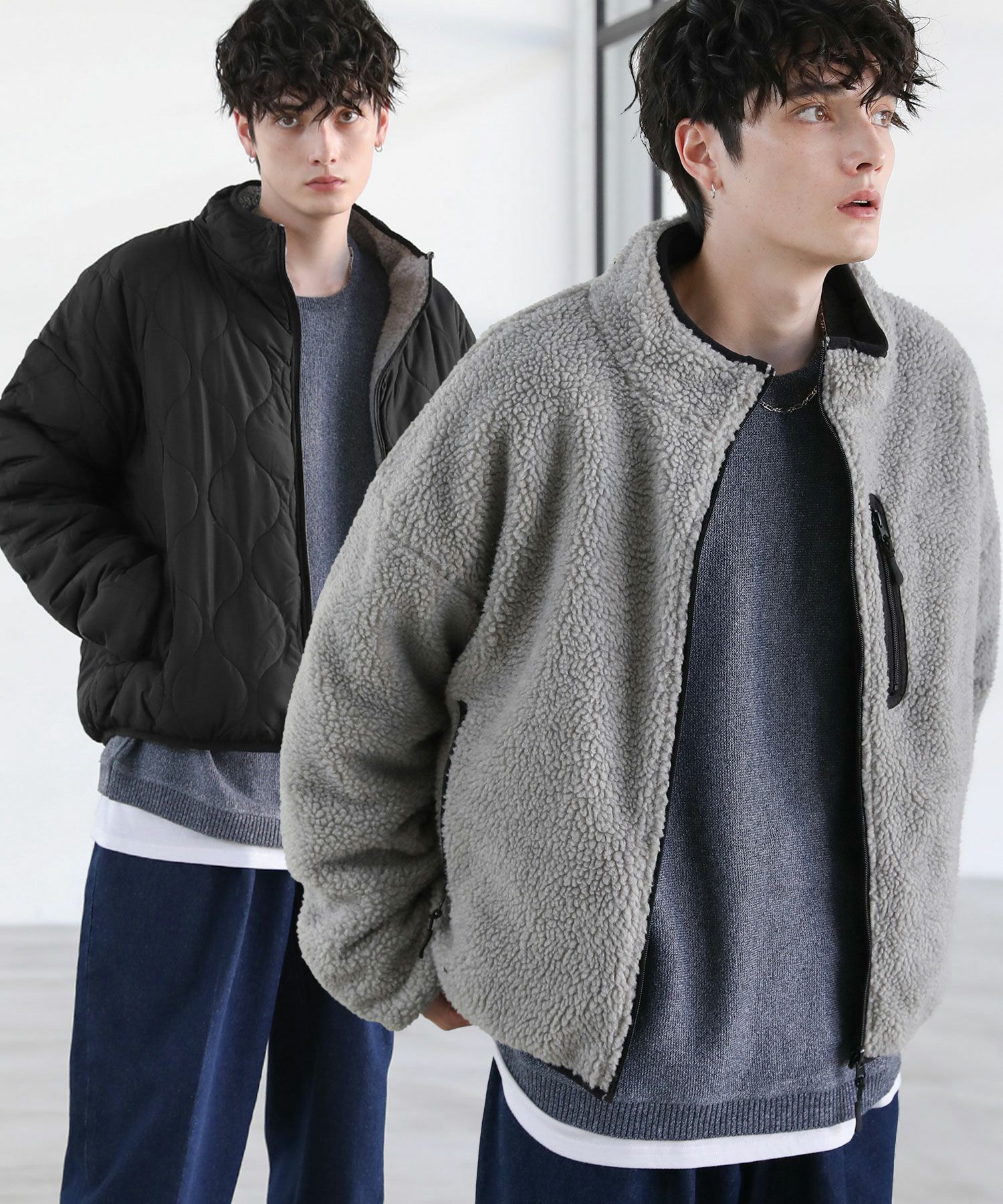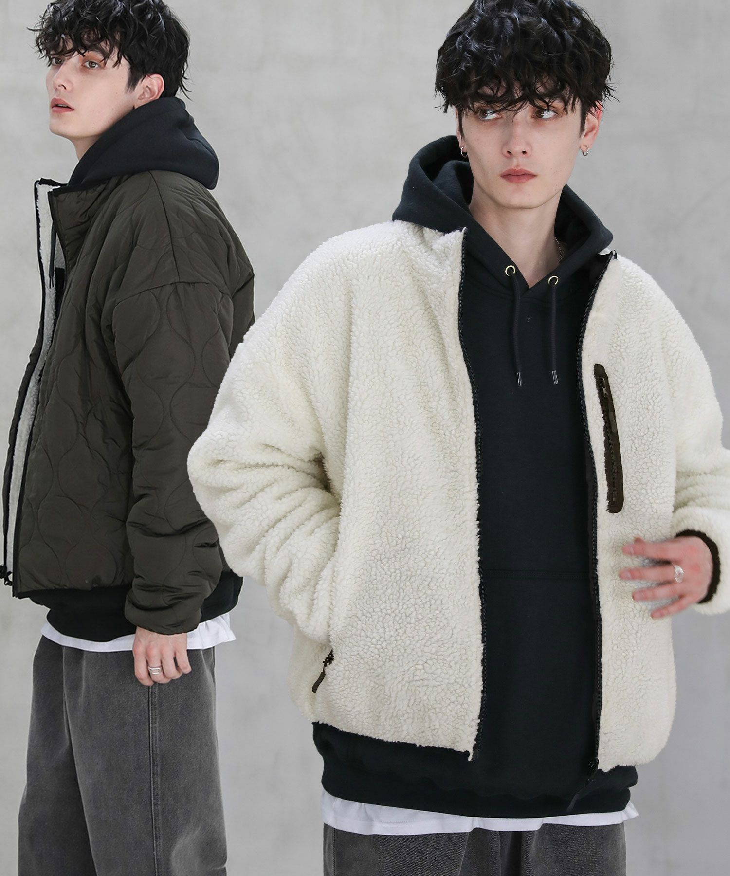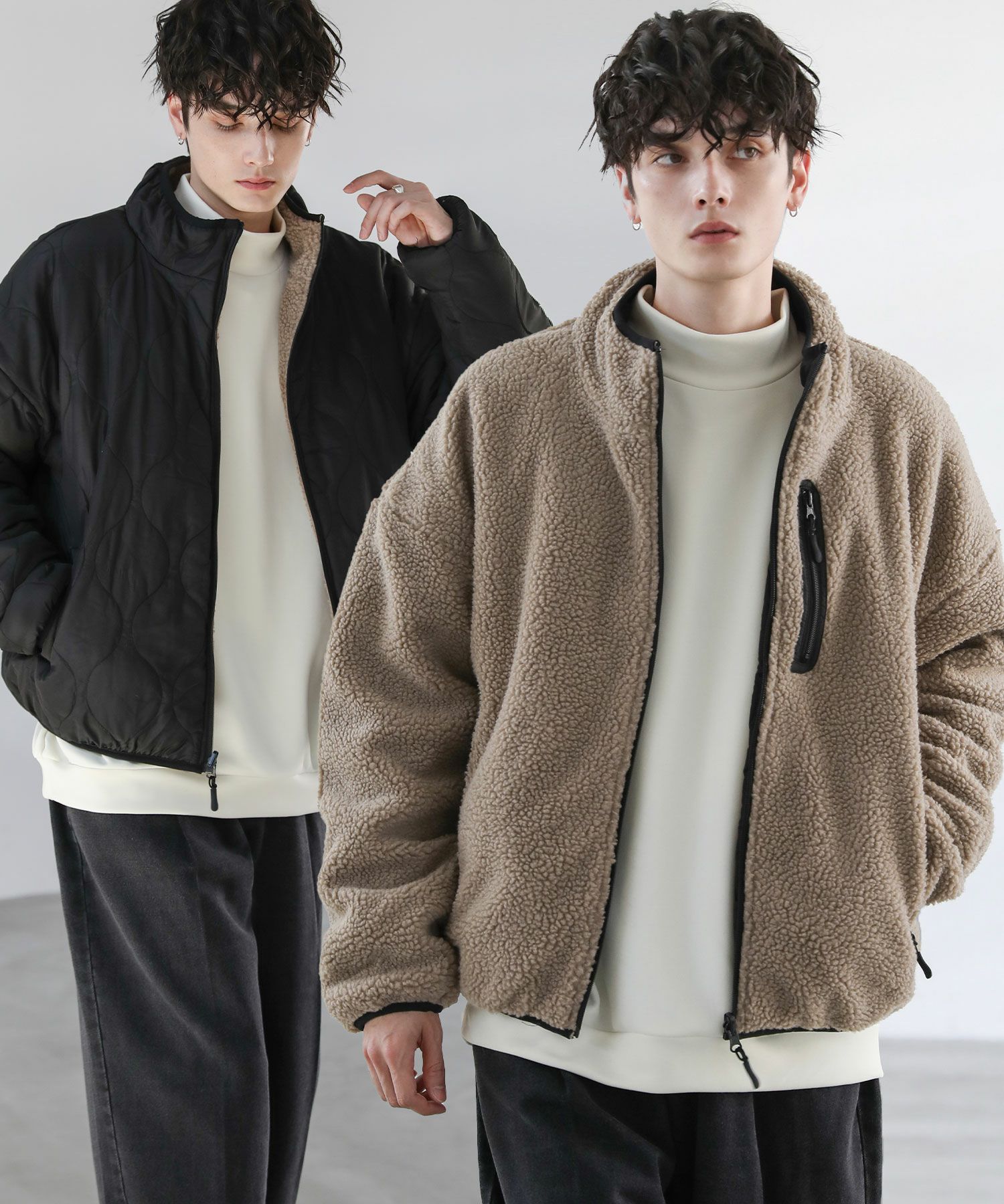 ビッグシルエットリバーシブル中綿ボアフリースジャケット