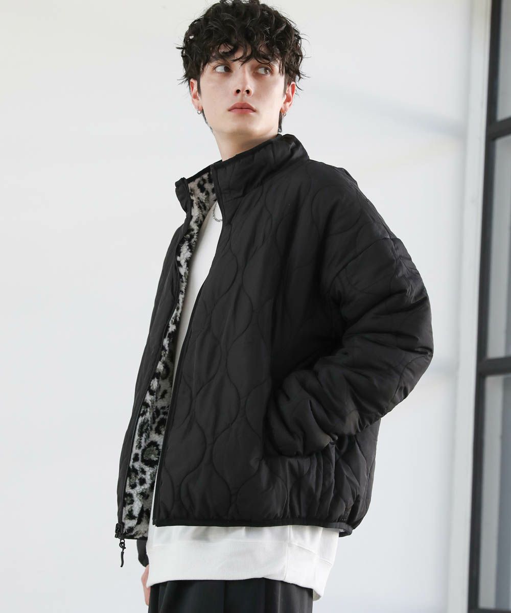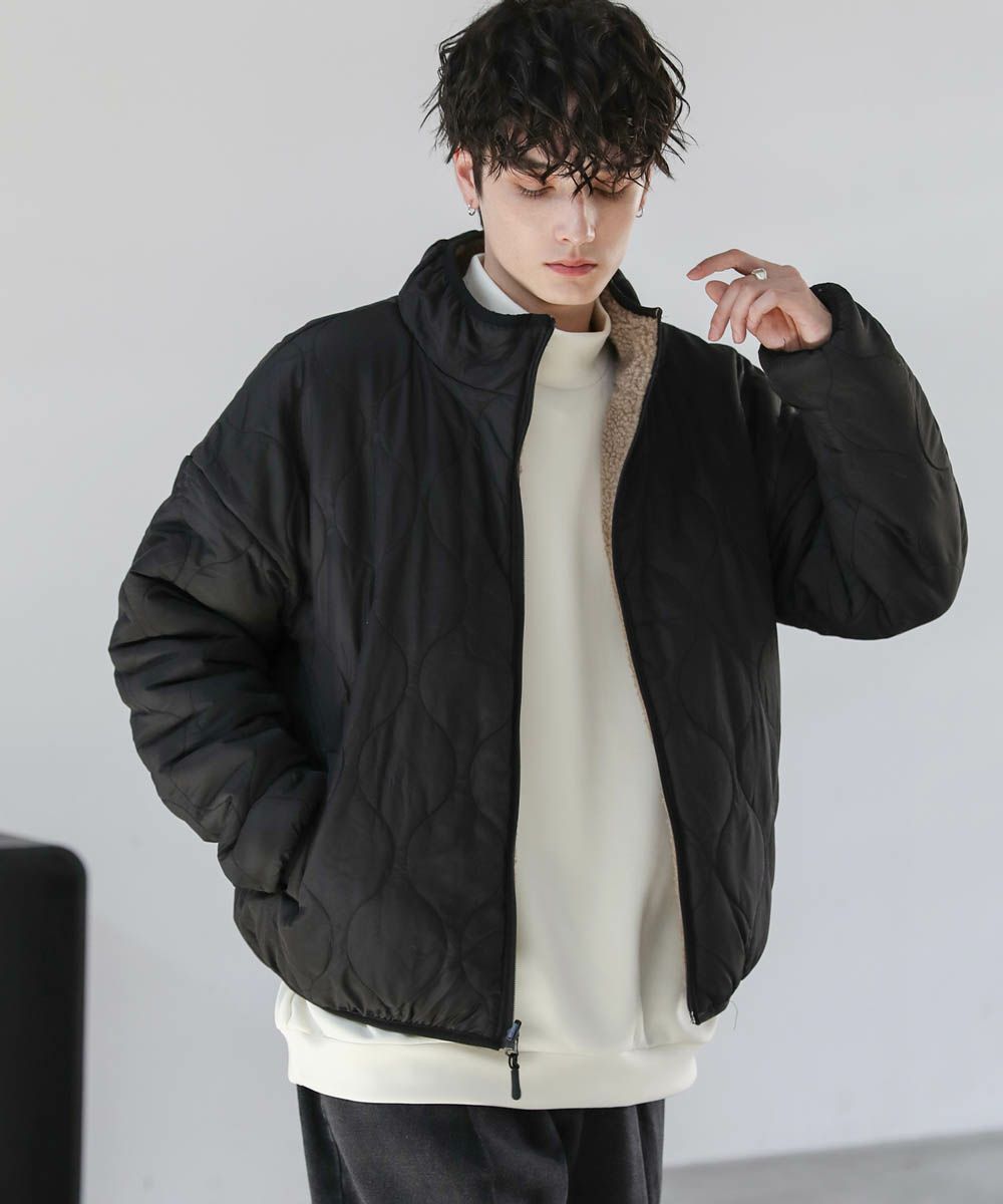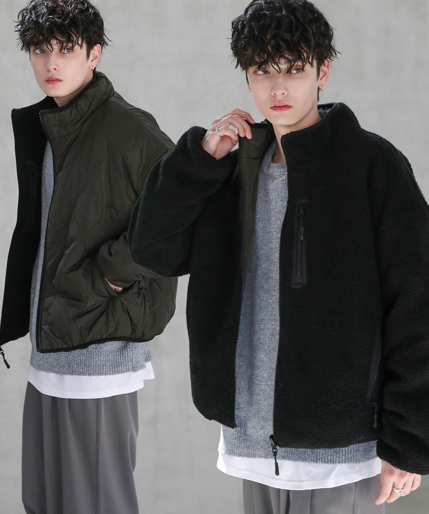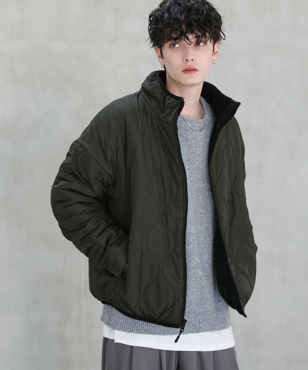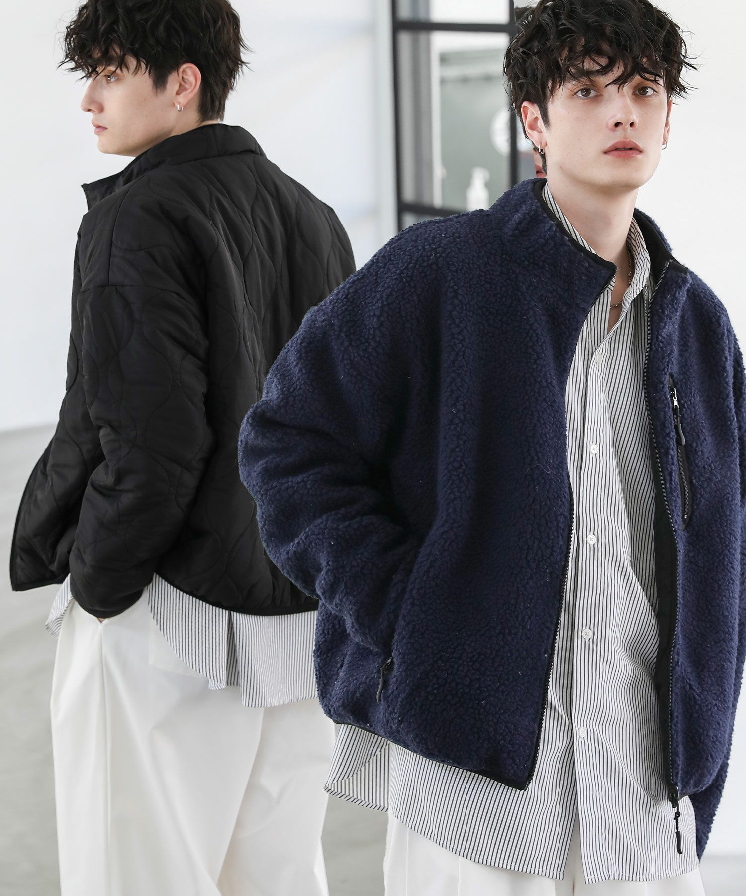 ビッグシルエットリバーシブル中綿ボアフリースジャケット