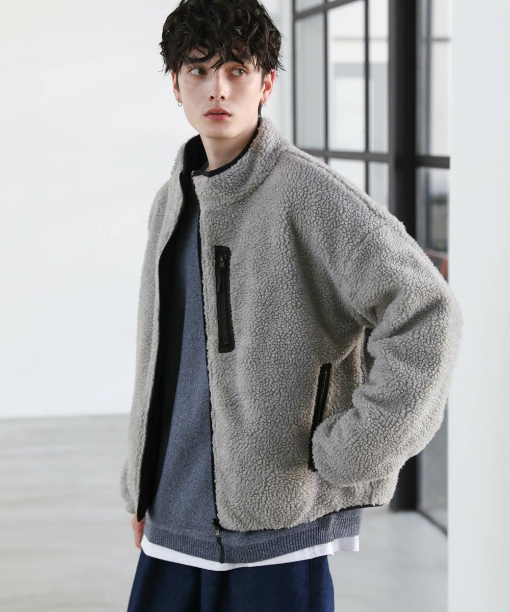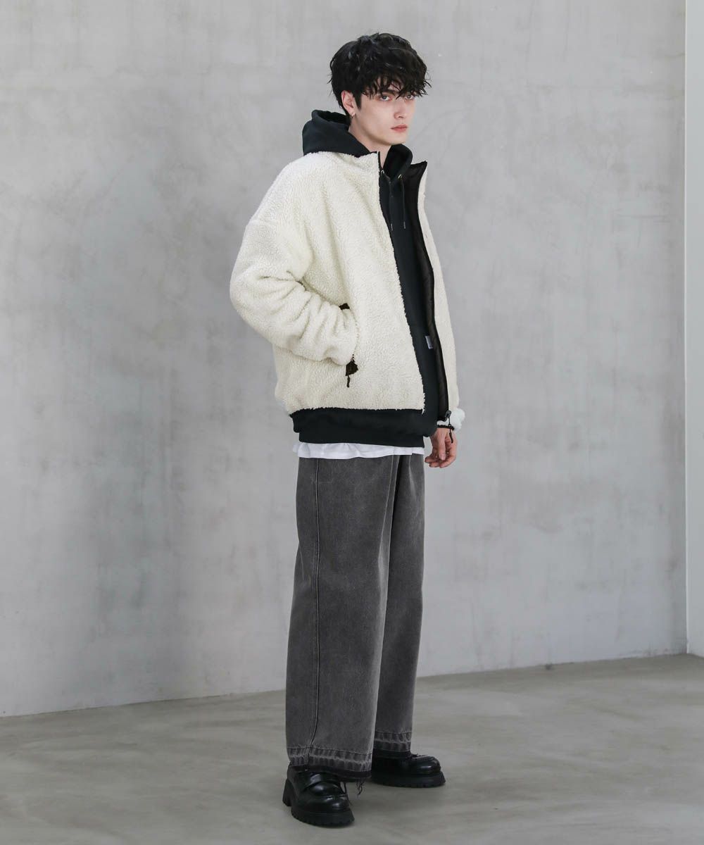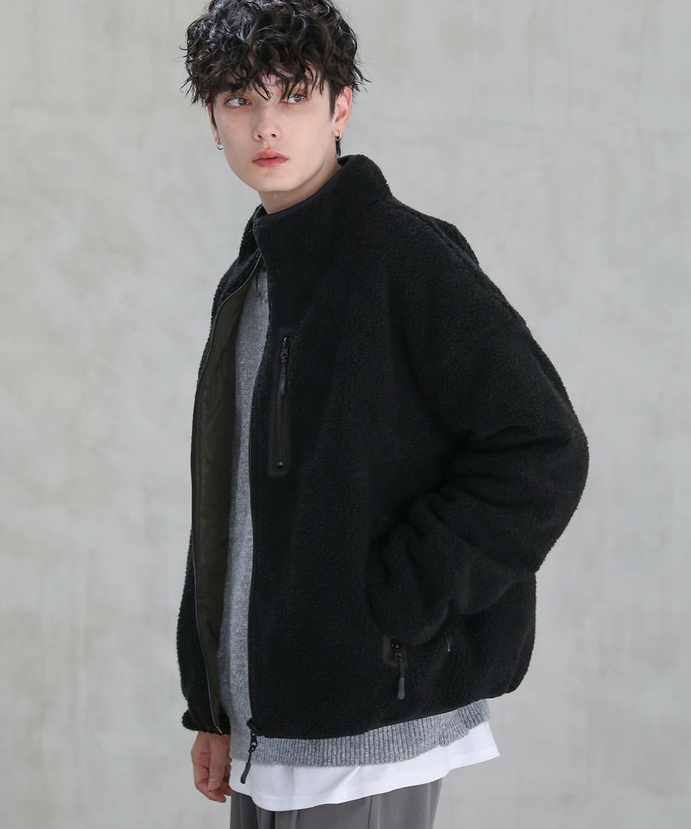 4. ビッグシルエットリバーシブル中綿ボアフリースジャケット