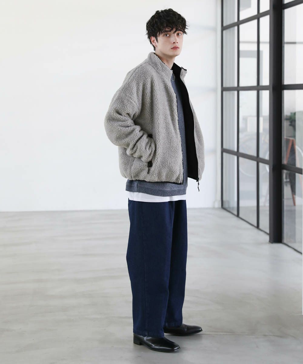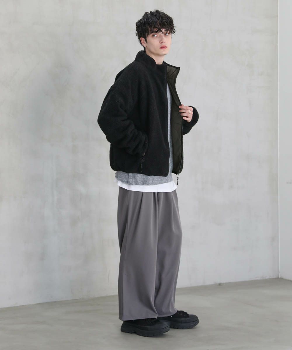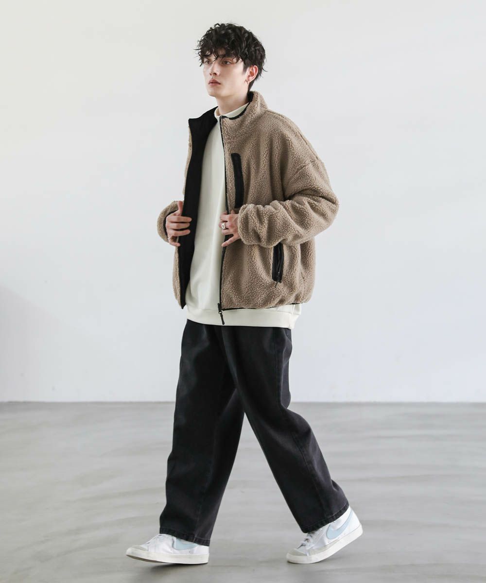 4. ビッグシルエットリバーシブル中綿ボアフリースジャケット