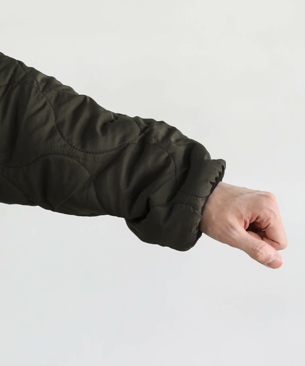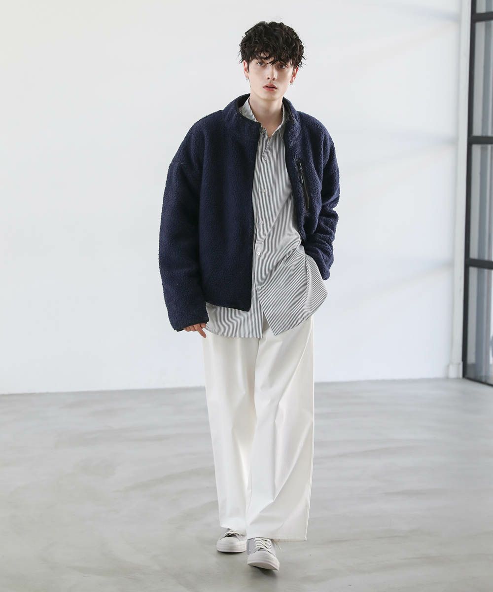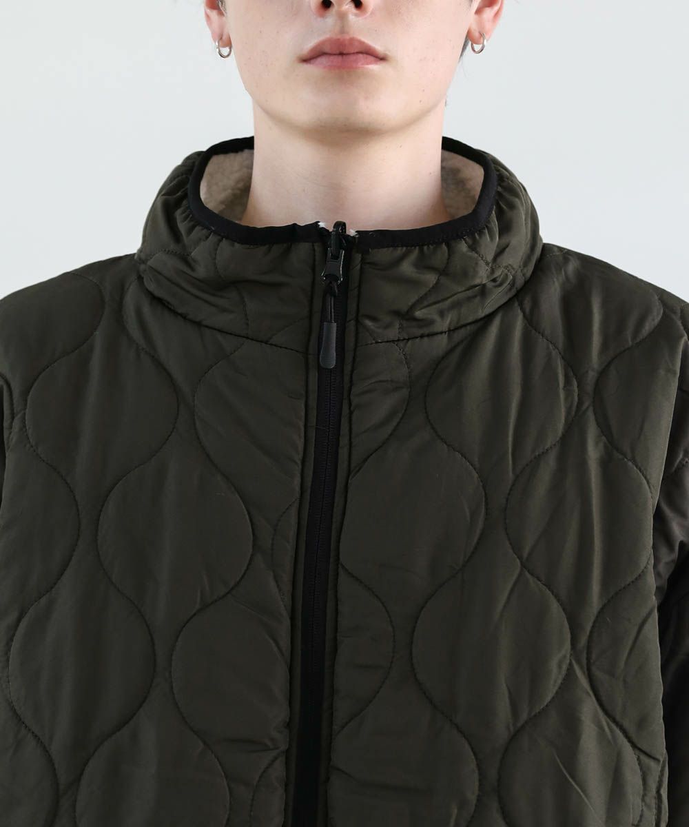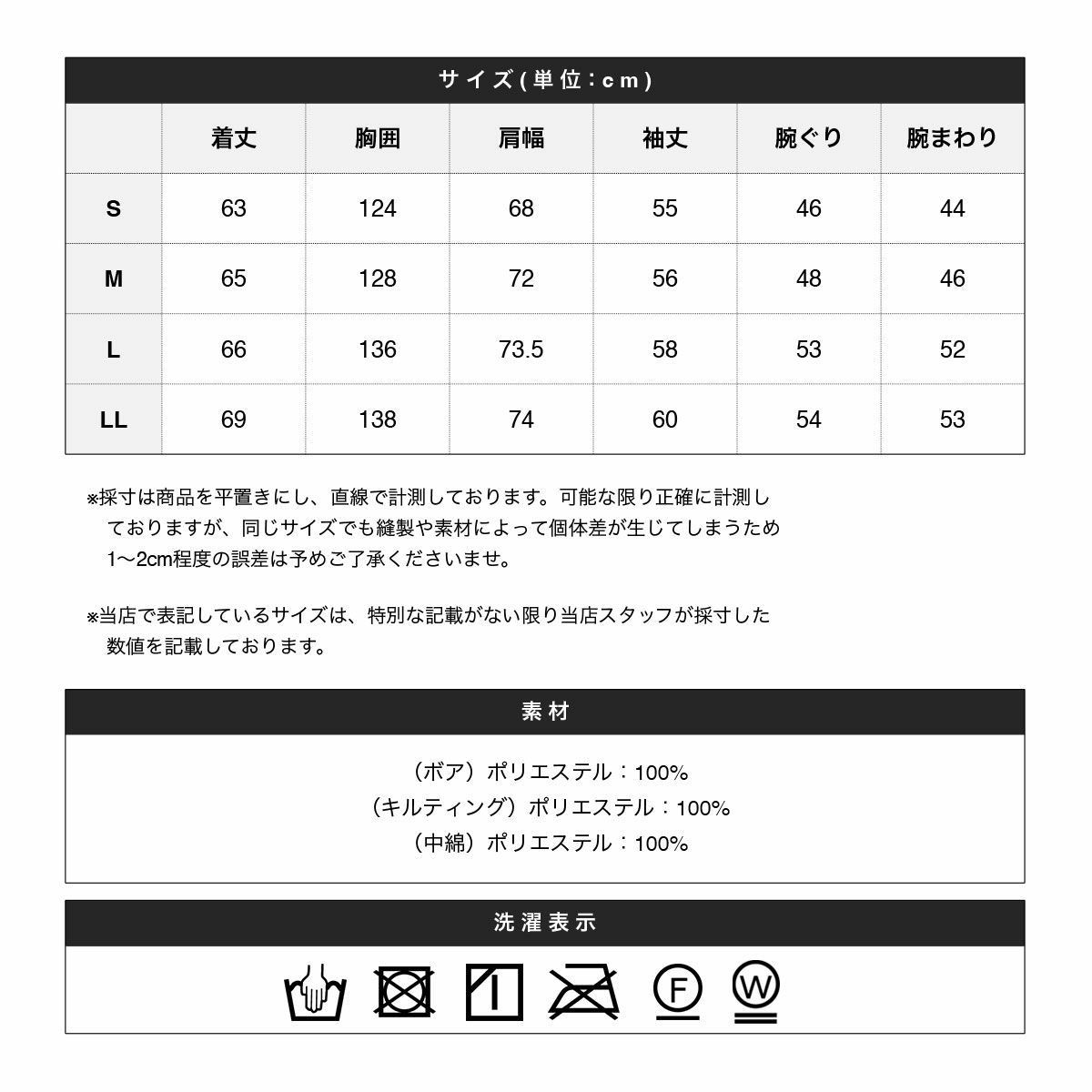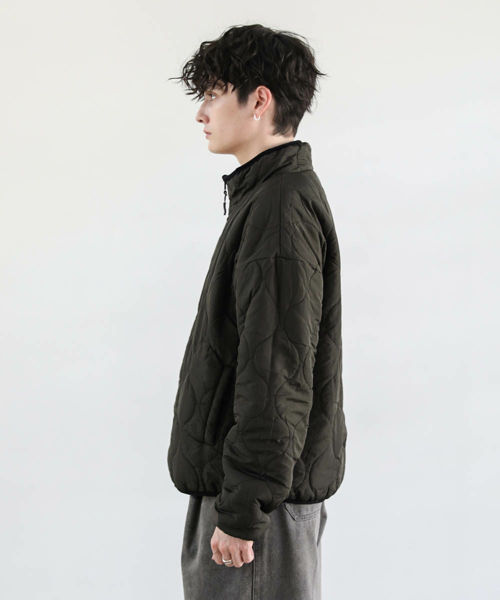 カジュアルな雰囲気のボアと大人っぽい印象のキルティングの2パターンの着こなしが楽しめます。ショート丈なので、ボリュームのあるワイドパンツやバギーパンツともバランスが取りやすく着回しやすいアイテムです。ゆったりとしたサイジングなので、インナーに厚手のニットやパーカーも楽に着込めます。