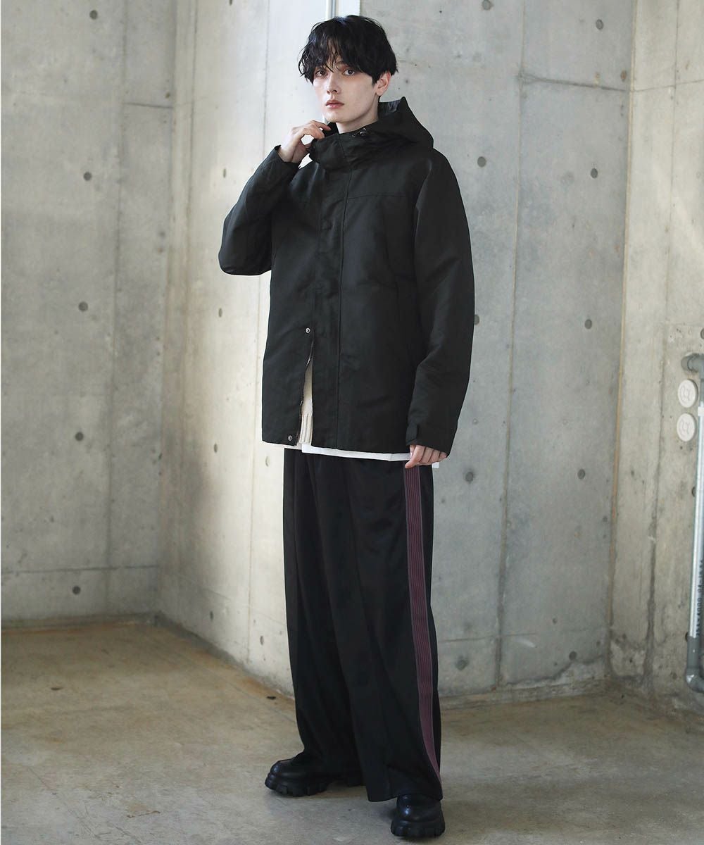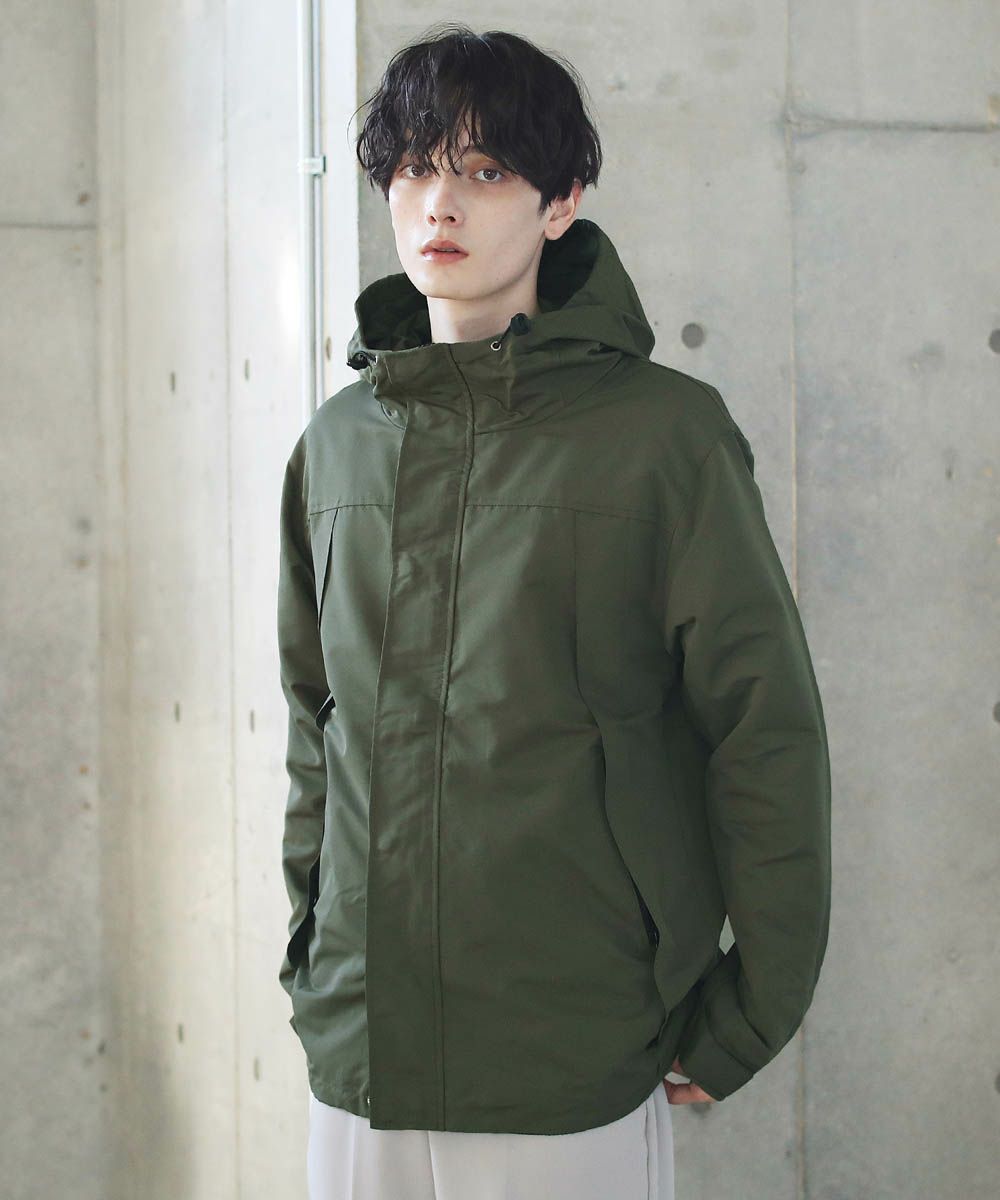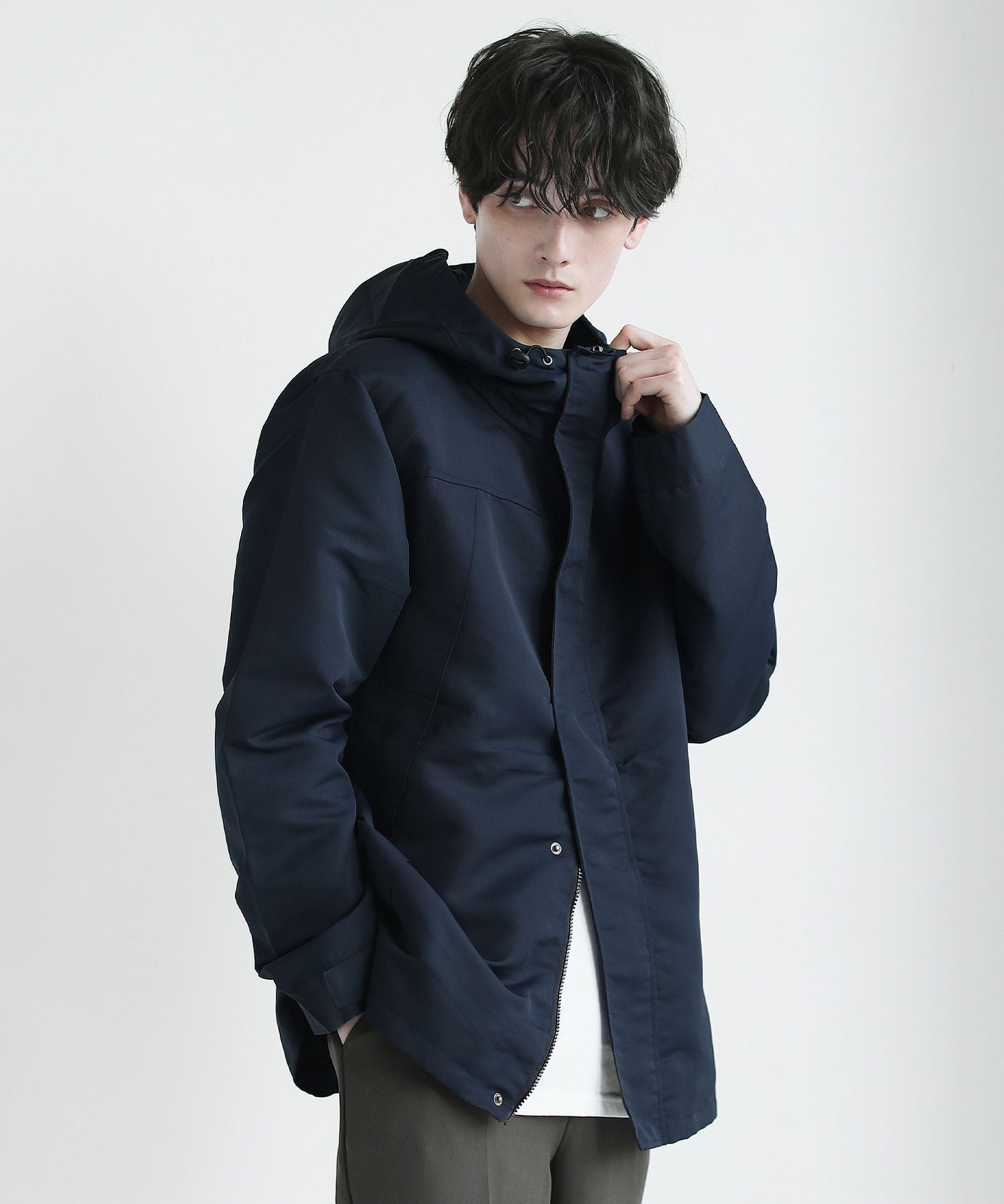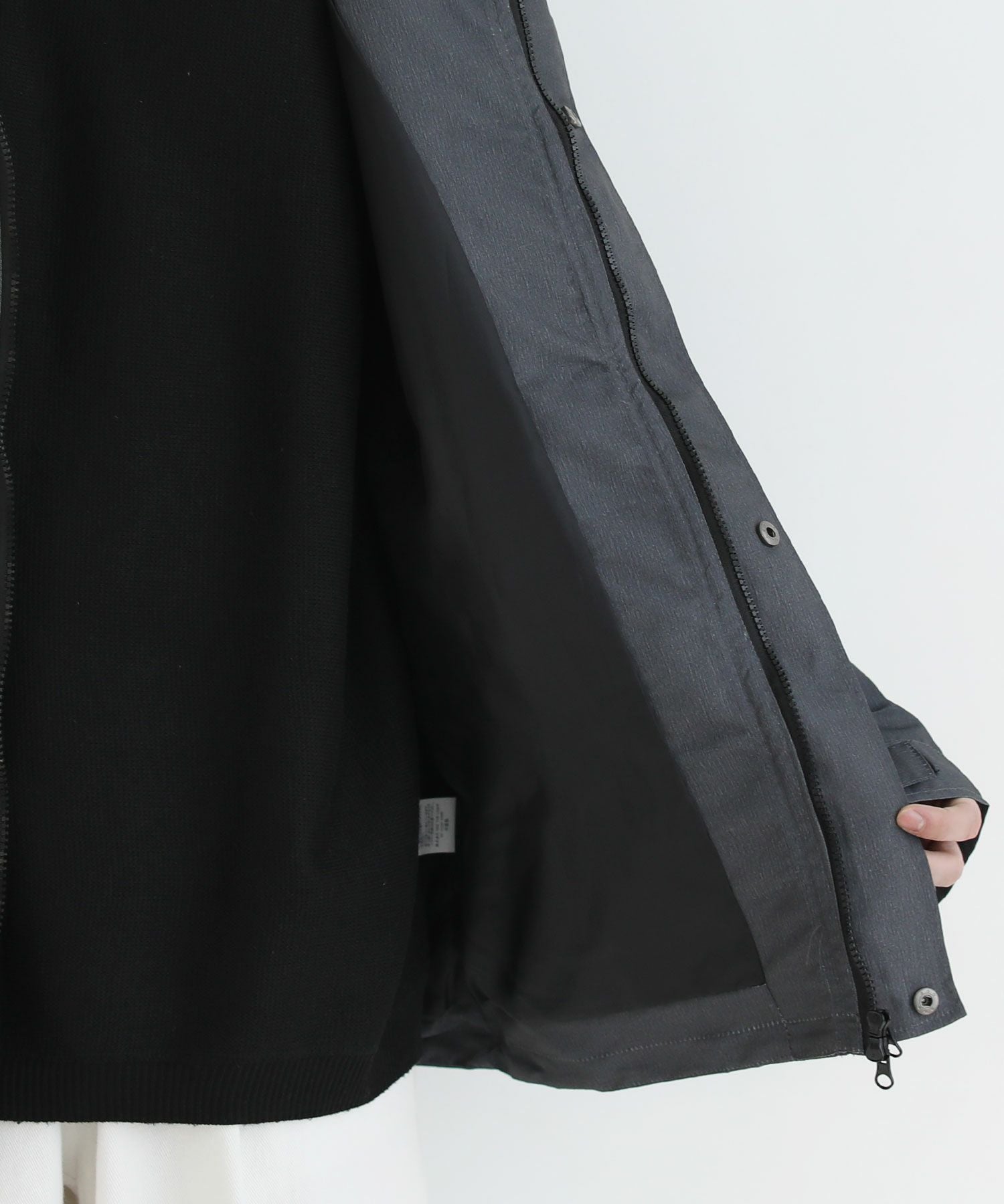 マウンテンパーカーらしい機能面は残しつつも、普段使いしやすいようにキレイめな見え感。両サイドのファスナー付きポケットは、ファスナー部分が外から見えずすっきりとした印象に。またフロントには比翼仕立てを採用。すっきりとした見た目で、スラックスなどキレイめなボトムともマッチします。