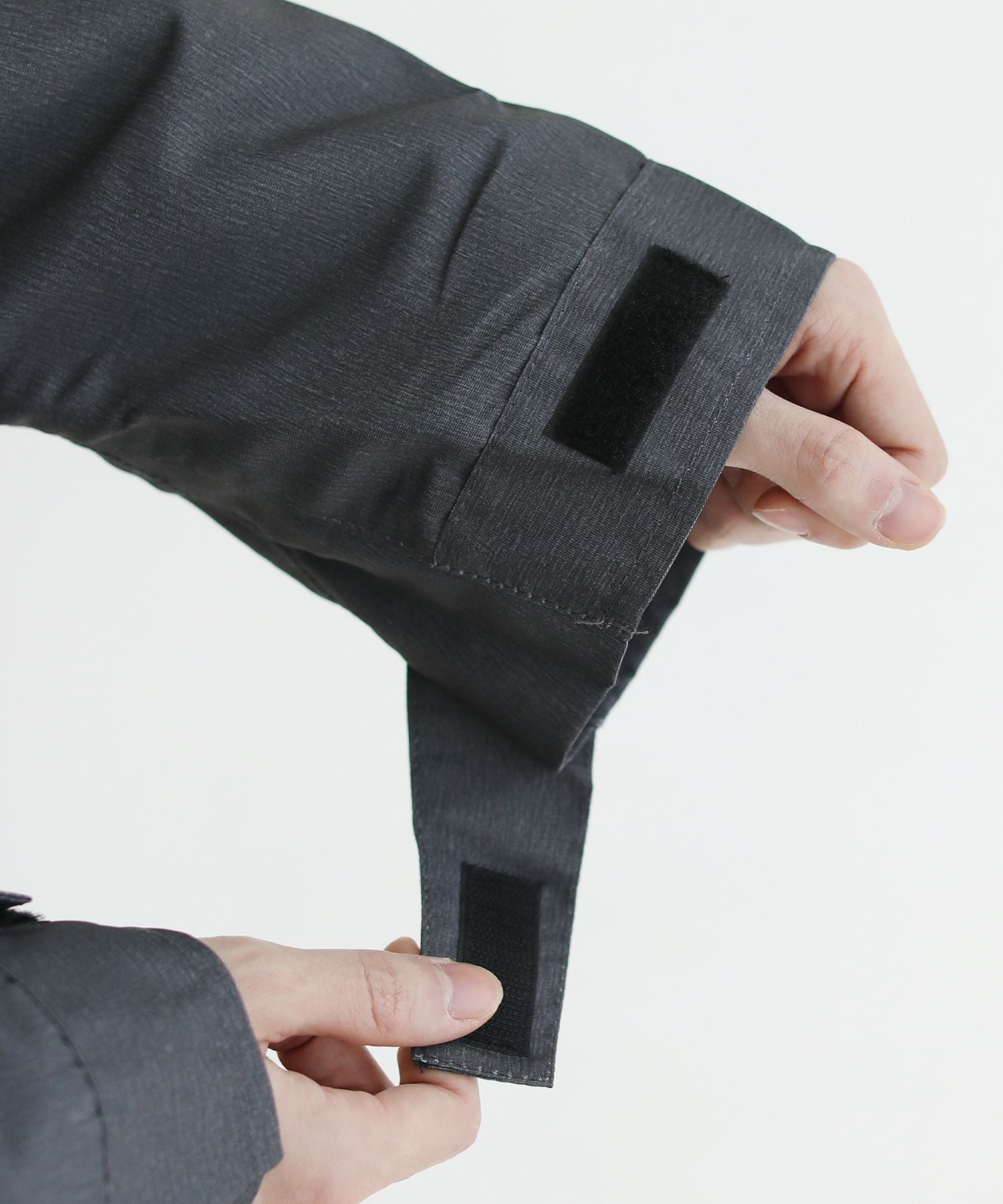 隙間風を防ぐハイネック&袖のテープや撥水加工の生地など、機能面にも優れたアイテムです。