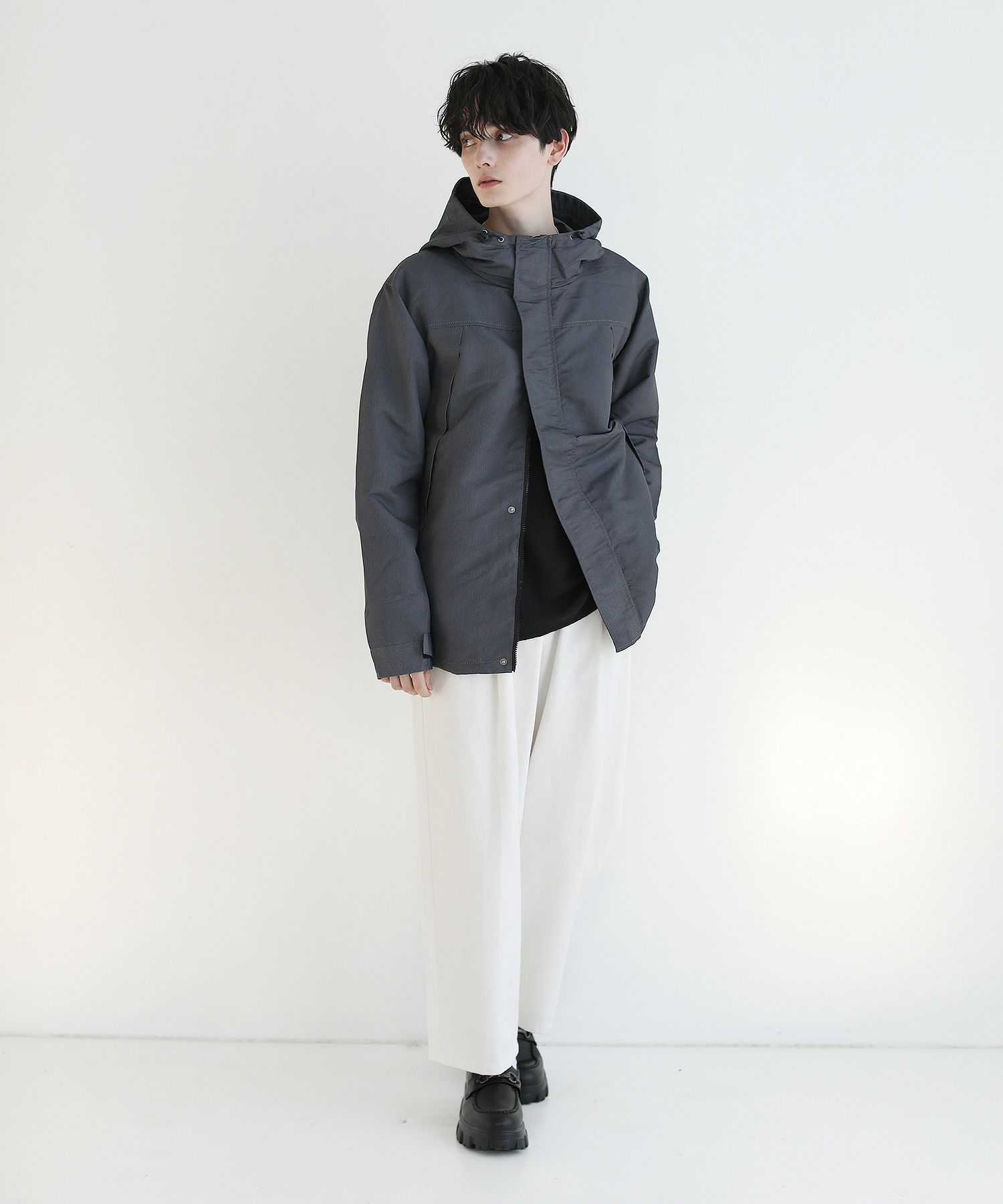 シンプルなデザインでスラックスに合わせたキレイめな雰囲気や、ワイドデニムやトラックパンツなどカジュアルなボトムと合わせたり、色々なスタイルにハマる1着。軽量のマウンテンパーカーは秋口から春先、また梅雨の肌寒い時期など幅広いシーズンで活躍するアイテムです。