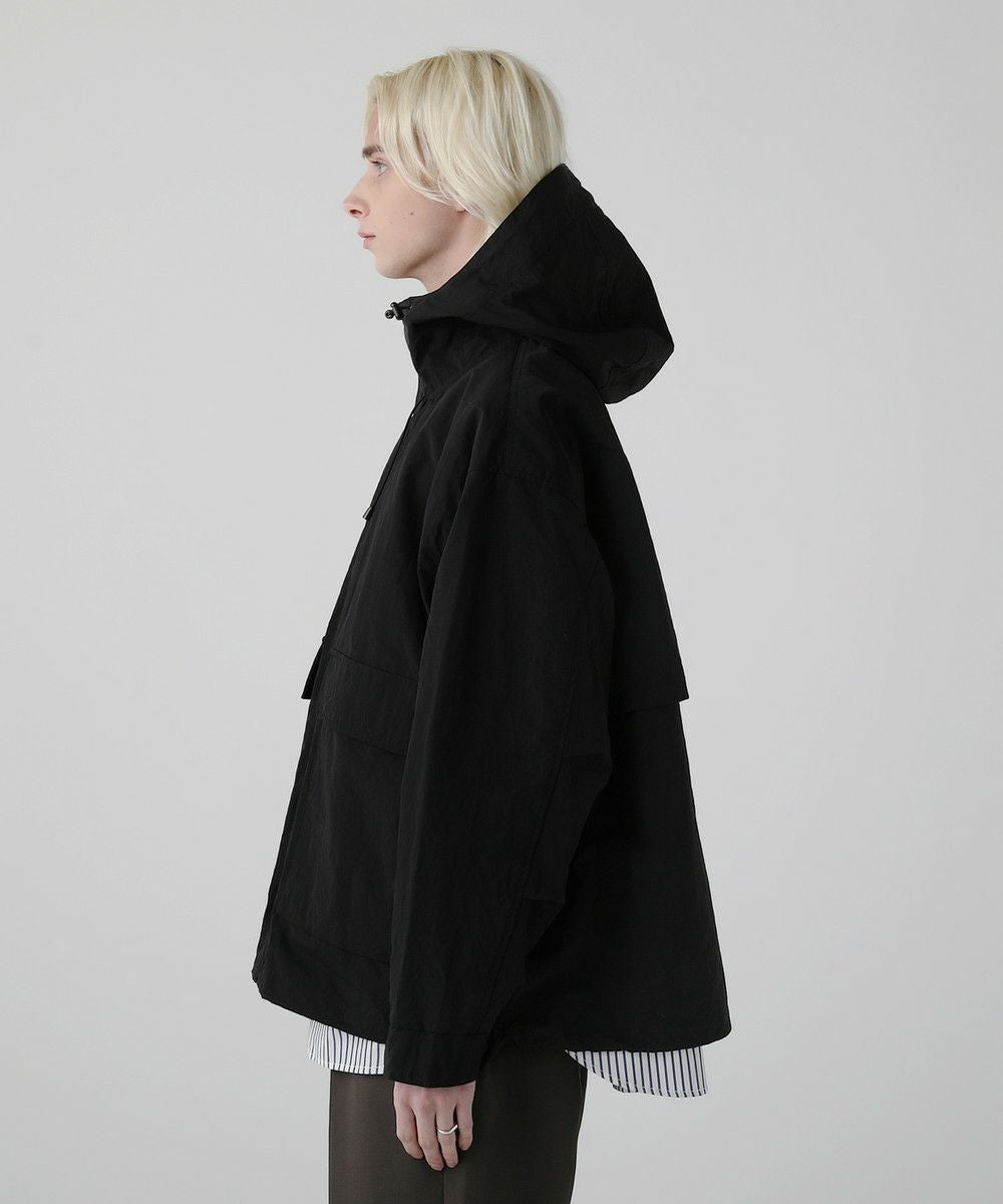 身幅にゆとりを持たせたオーバーサイズで、丈に前後差があるラフなシルエットが特徴。
