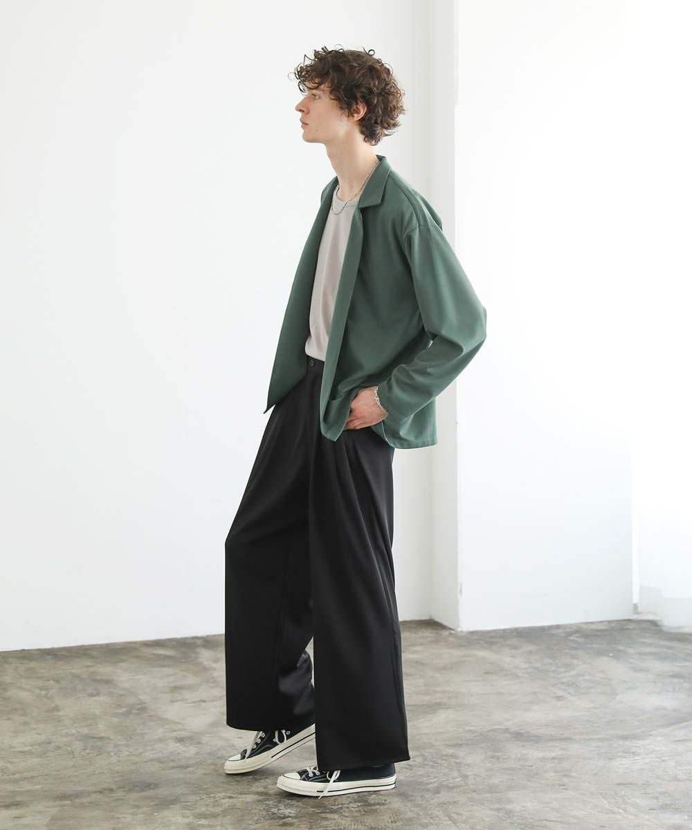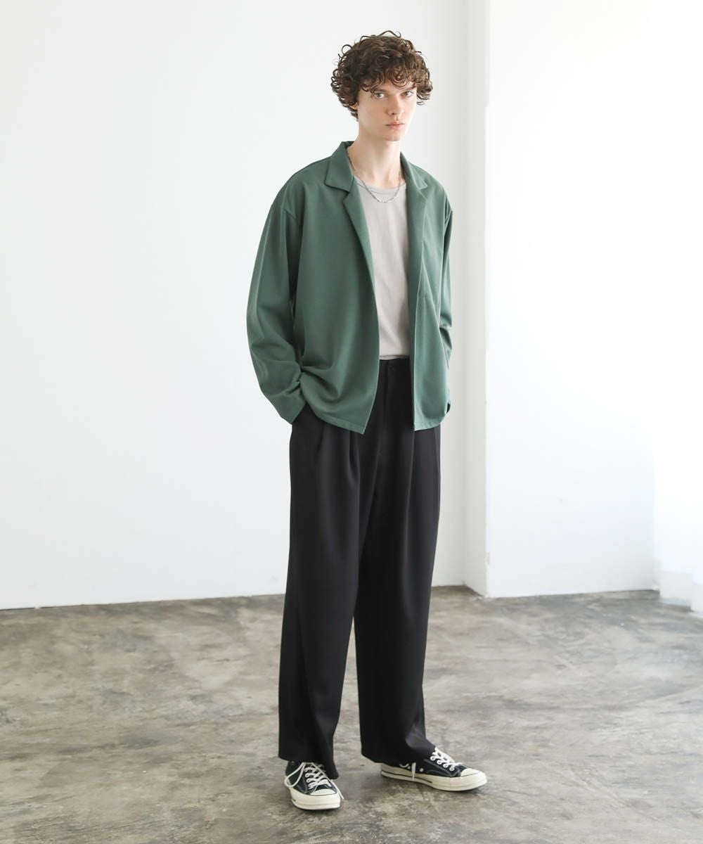 ワイドスラックスやバギーパンツ、デニムパンツなど緩めのボトムと合わせたリラックス感のある着こなしがおすすめ。上品な生地感とボタンレスデザインで、カットソーの上にさっと羽織るだけで大人カジュアルなスタイルが完成します。
