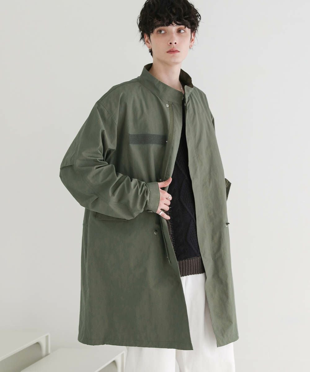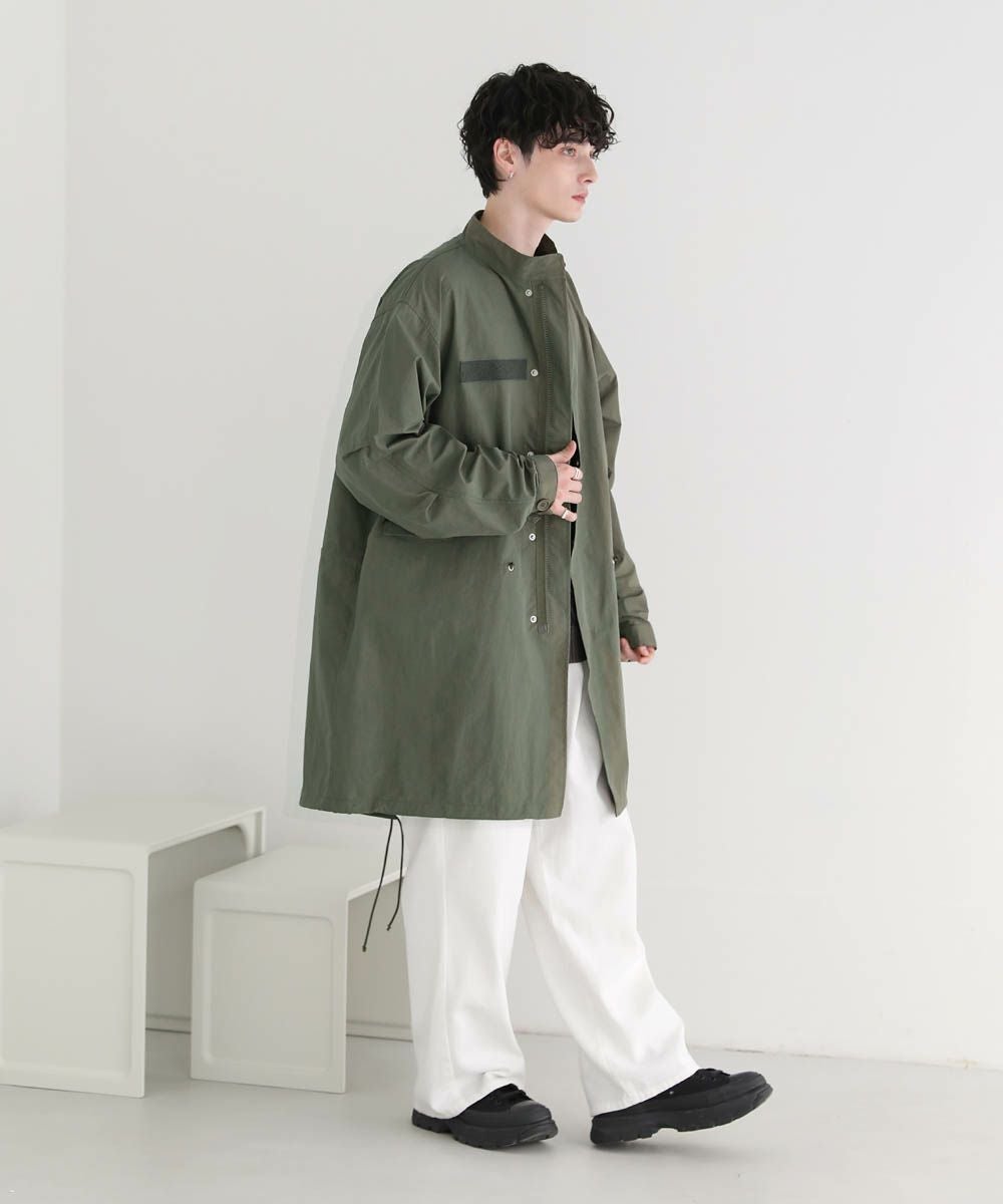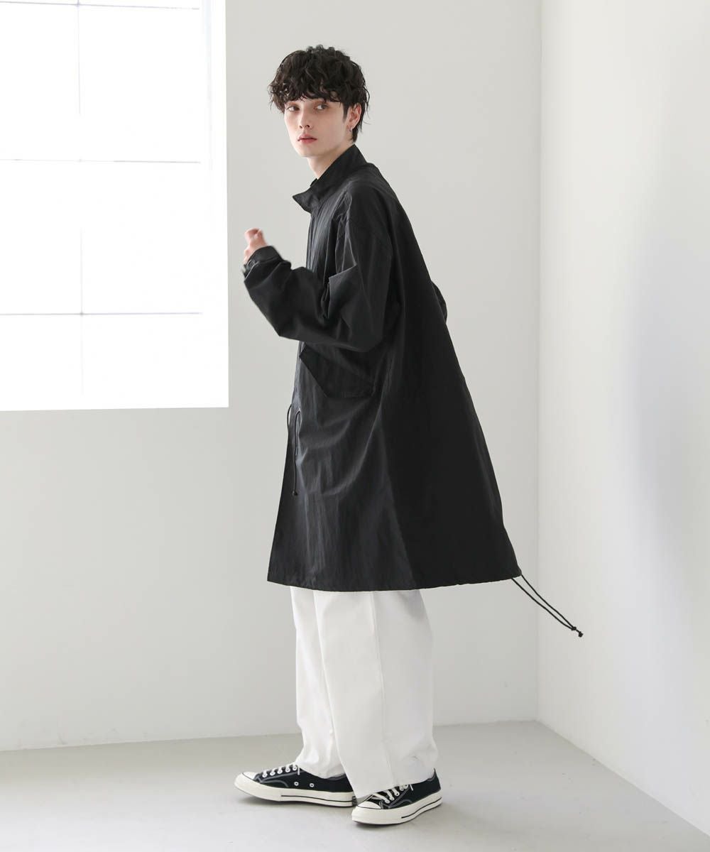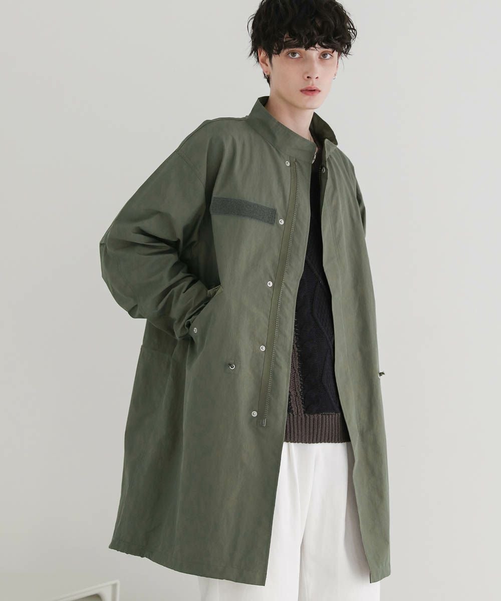 アメリカ軍のM-65をモデルにしたオーバーサイズのモッズコート。季節の変わり目にさっと羽織れる、軽やかさが魅力です。ゆったりと着こなせるオーバーサイズ&ドロップショルダーが今っぽいリラックス感のあるデザイン。裾、ウエスト部分はドローコード仕様、袖口はボタンで調整可能です。シンプルなデザインなので着回しやすく、一つあるとコーディネートの幅が広がります。