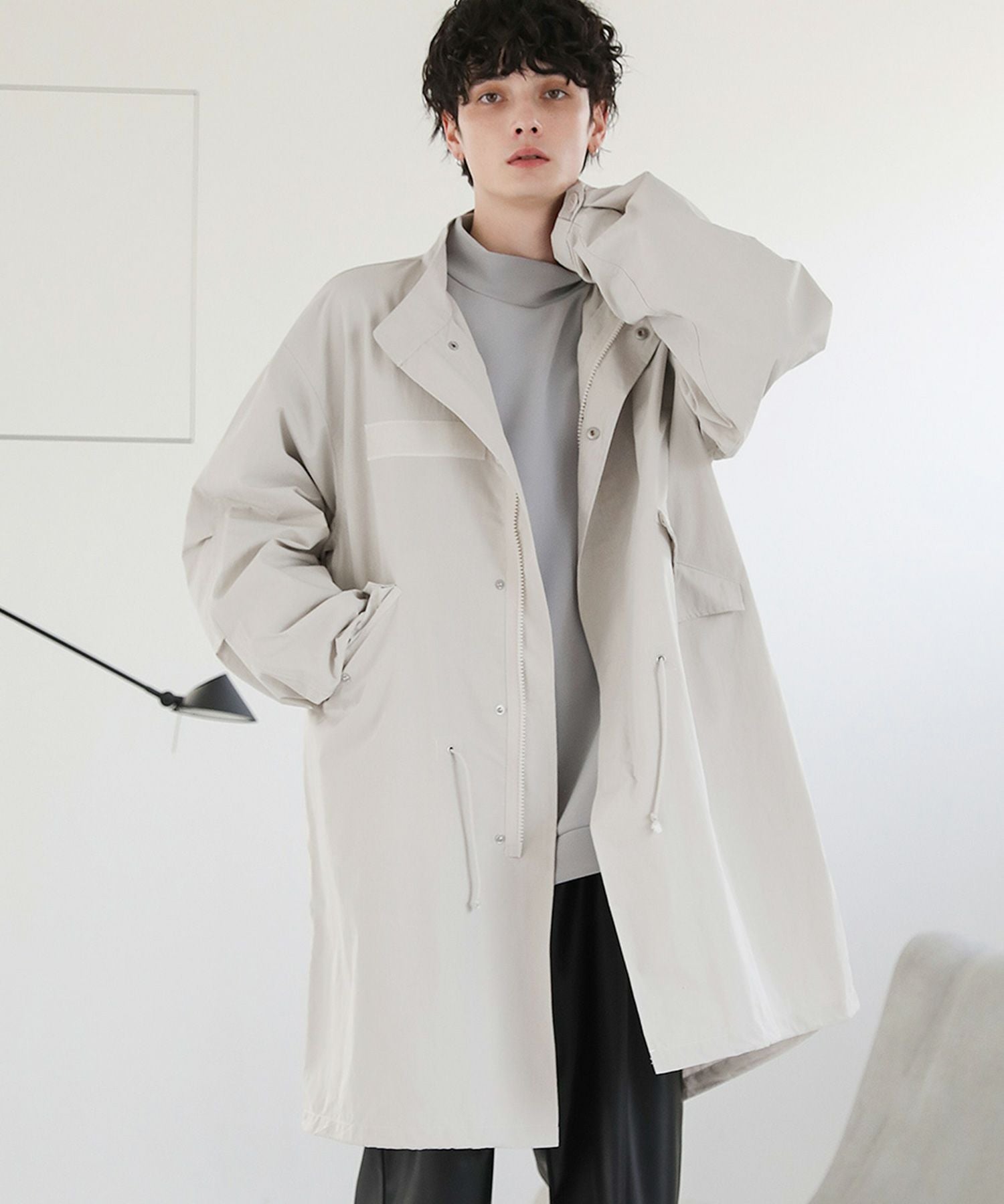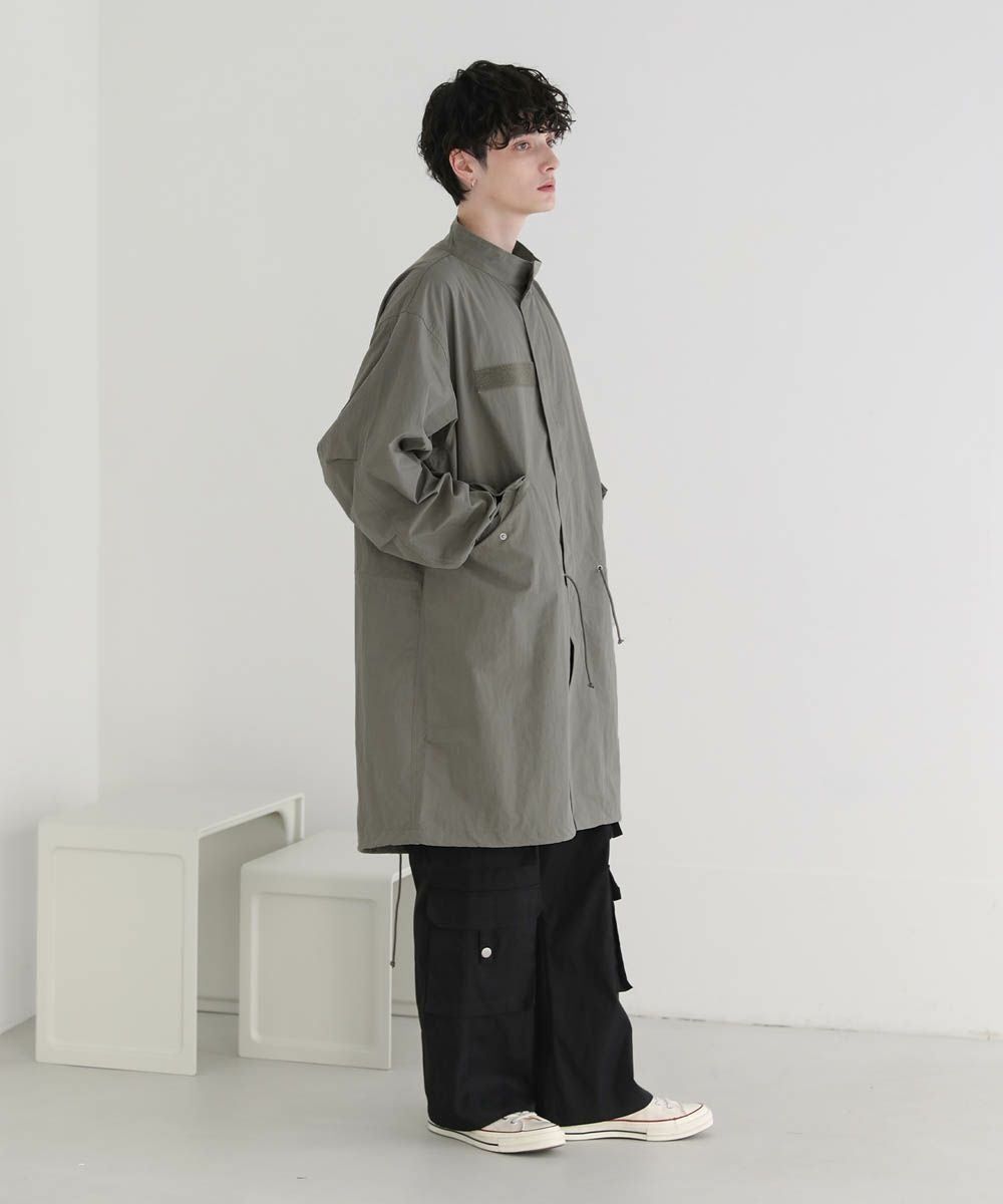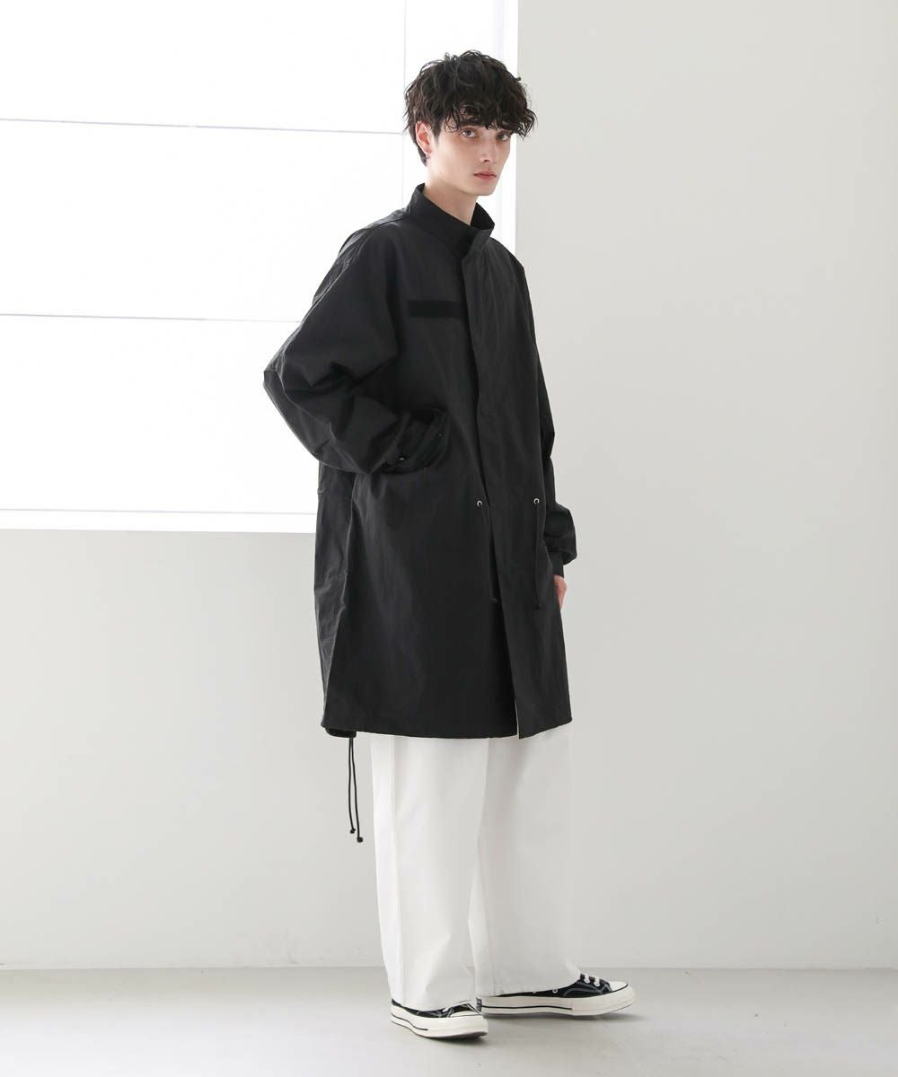 アメリカ軍のM-65をモデルにしたオーバーサイズのモッズコート。季節の変わり目にさっと羽織れる、軽やかさが魅力です。ゆったりと着こなせるオーバーサイズ&ドロップショルダーが今っぽいリラックス感のあるデザイン。裾、ウエスト部分はドローコード仕様、袖口はボタンで調整可能です。シンプルなデザインなので着回しやすく、一つあるとコーディネートの幅が広がります。