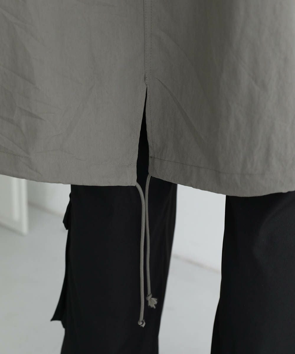 綿とナイロンを混紡した、さらっとした肌触りの生地を使用しています。とても軽量で、裏地はなく、ストレスのない軽やかな着心地が魅力。ハリがある生地なので、着用時に立体的なシルエットに見せてくれます。