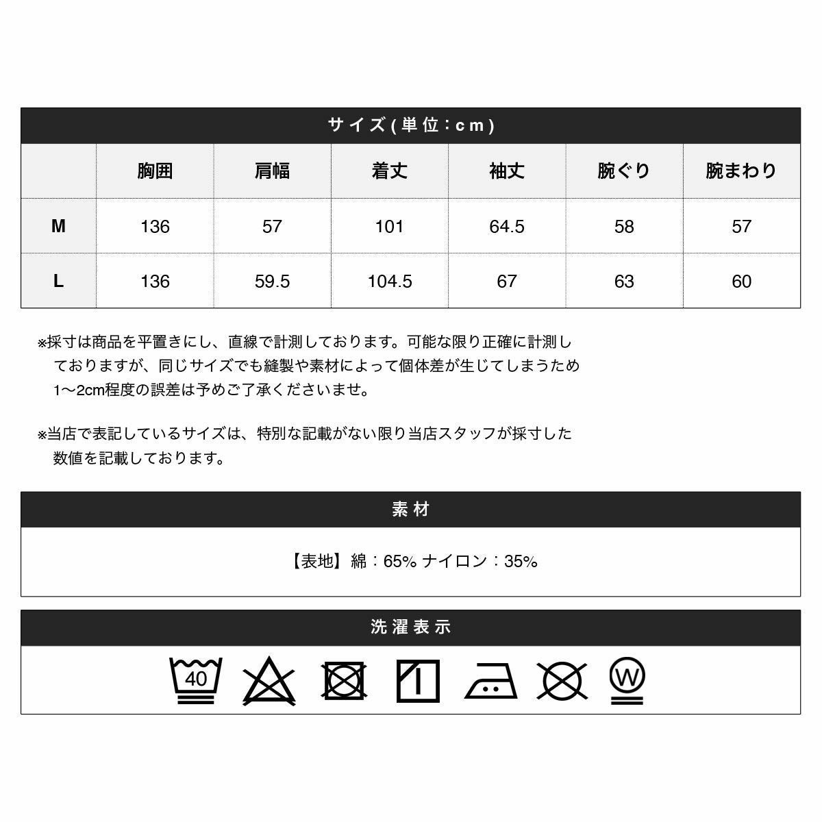 ※商品特性、縫製や素材により同サイズでも、若干の誤差が生じてしまうことを予めご了承ください。
