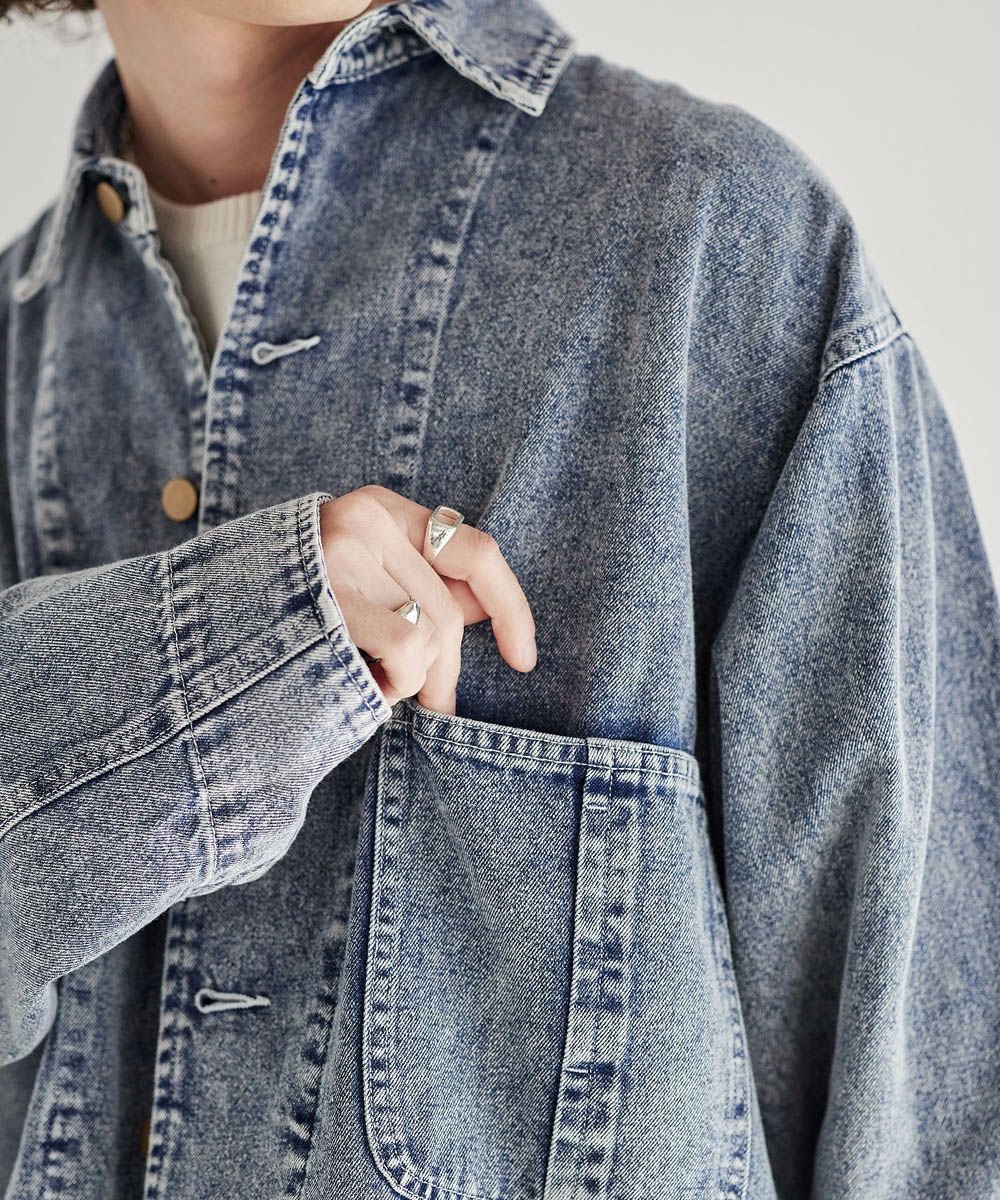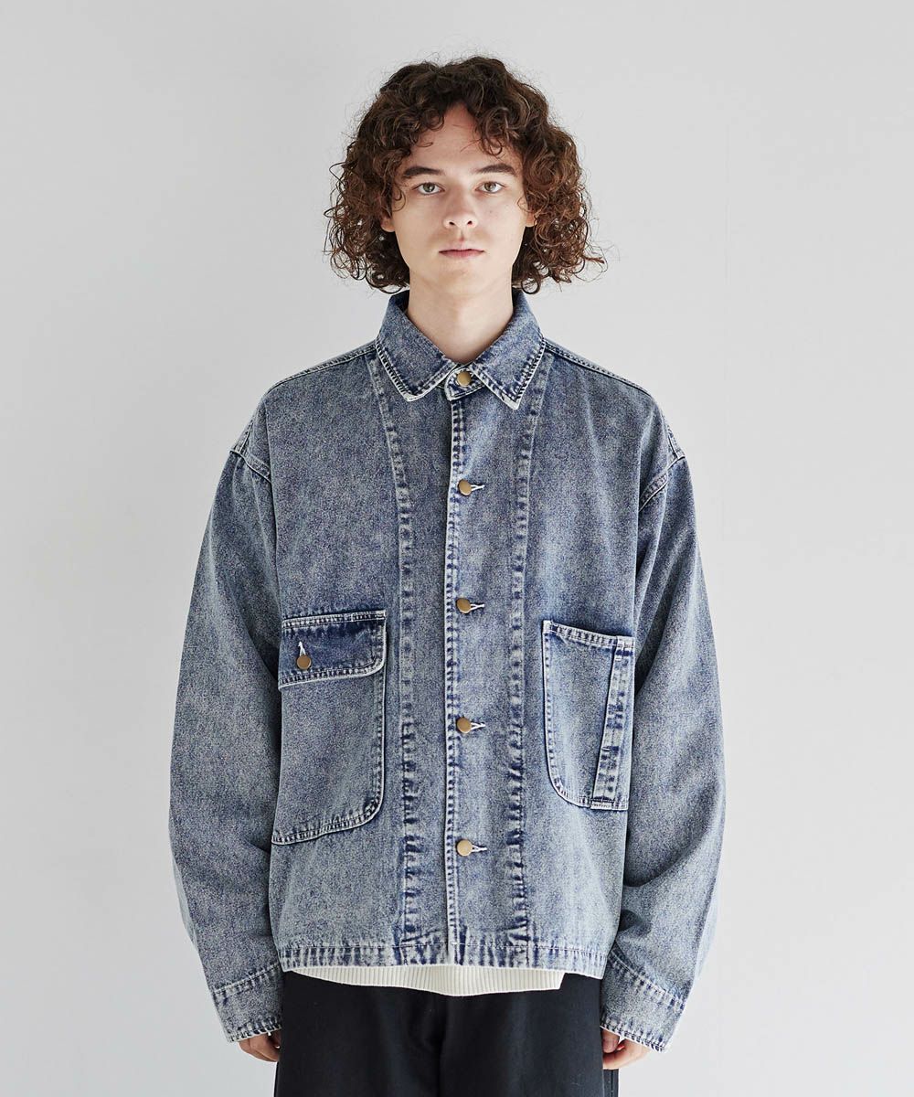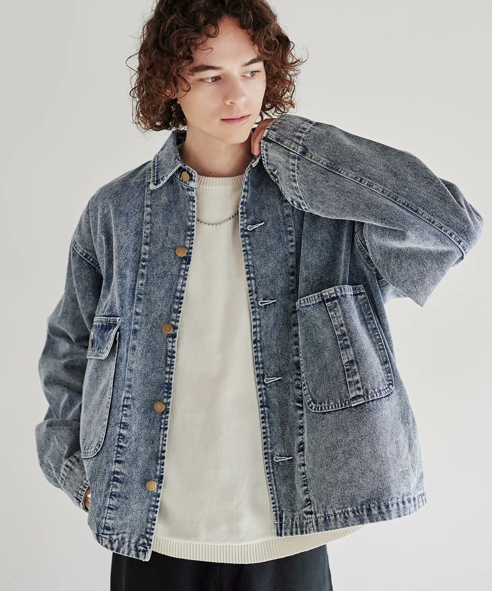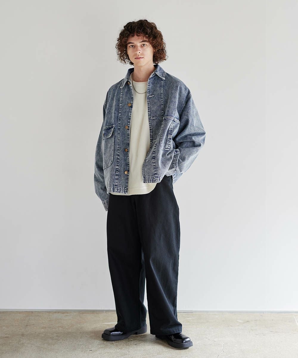 ソフトデニムで仕上げた軽やかな着心地のデニムジャケット。素材はベーシックなハリとコシを持つ10.5ozのデニム生地を採用しました。ケミカル加工を施しビンテージライクな雰囲気のある印象に。使いこむほどに馴染んでいく経年変化も楽しめます。ワイドな身幅にドロップショルダー、着丈はショート丈にすることで、着回しやすくスタイルアップが叶う1着です。