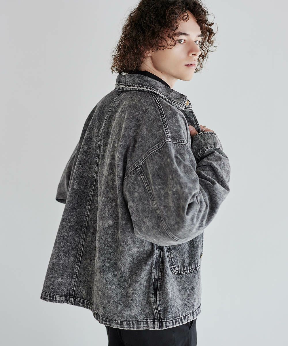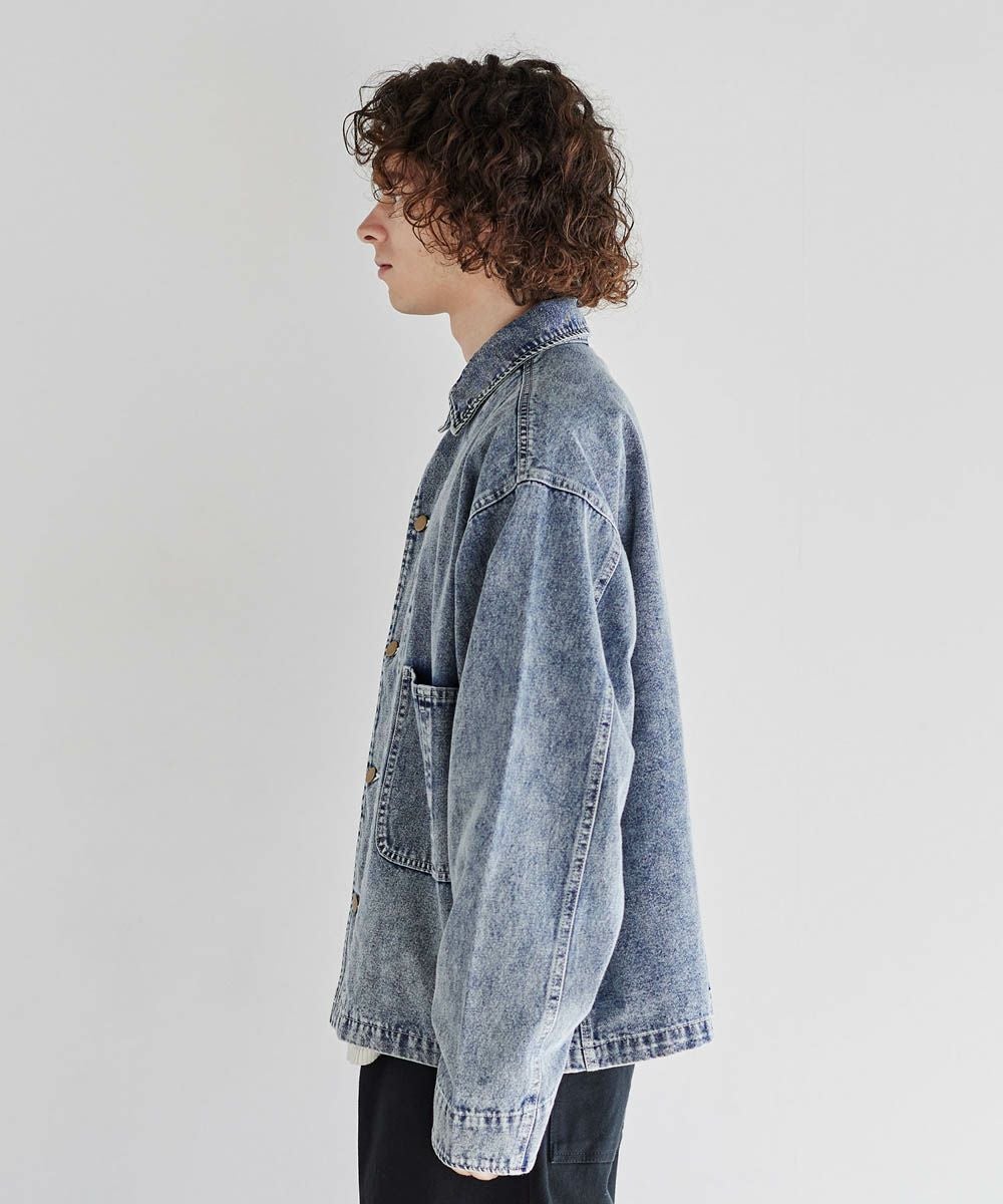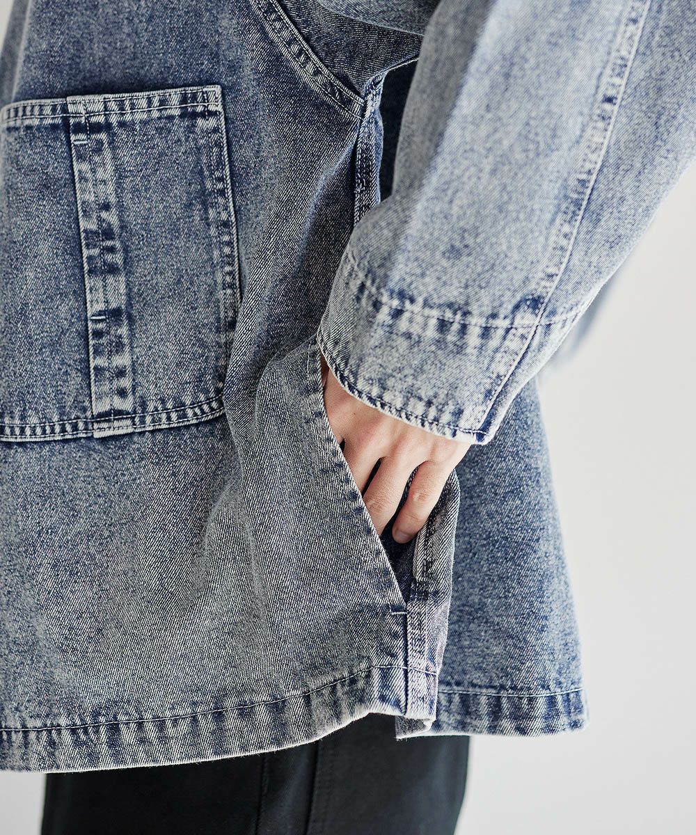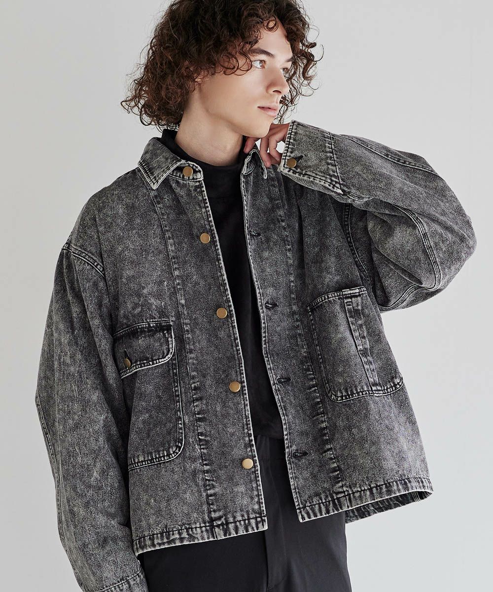 ソフトデニムで仕上げた軽やかな着心地のデニムジャケット。素材はベーシックなハリとコシを持つ10.5ozのデニム生地を採用しました。ケミカル加工を施しビンテージライクな雰囲気のある印象に。使いこむほどに馴染んでいく経年変化も楽しめます。ワイドな身幅にドロップショルダー、着丈はショート丈にすることで、着回しやすくスタイルアップが叶う1着です。