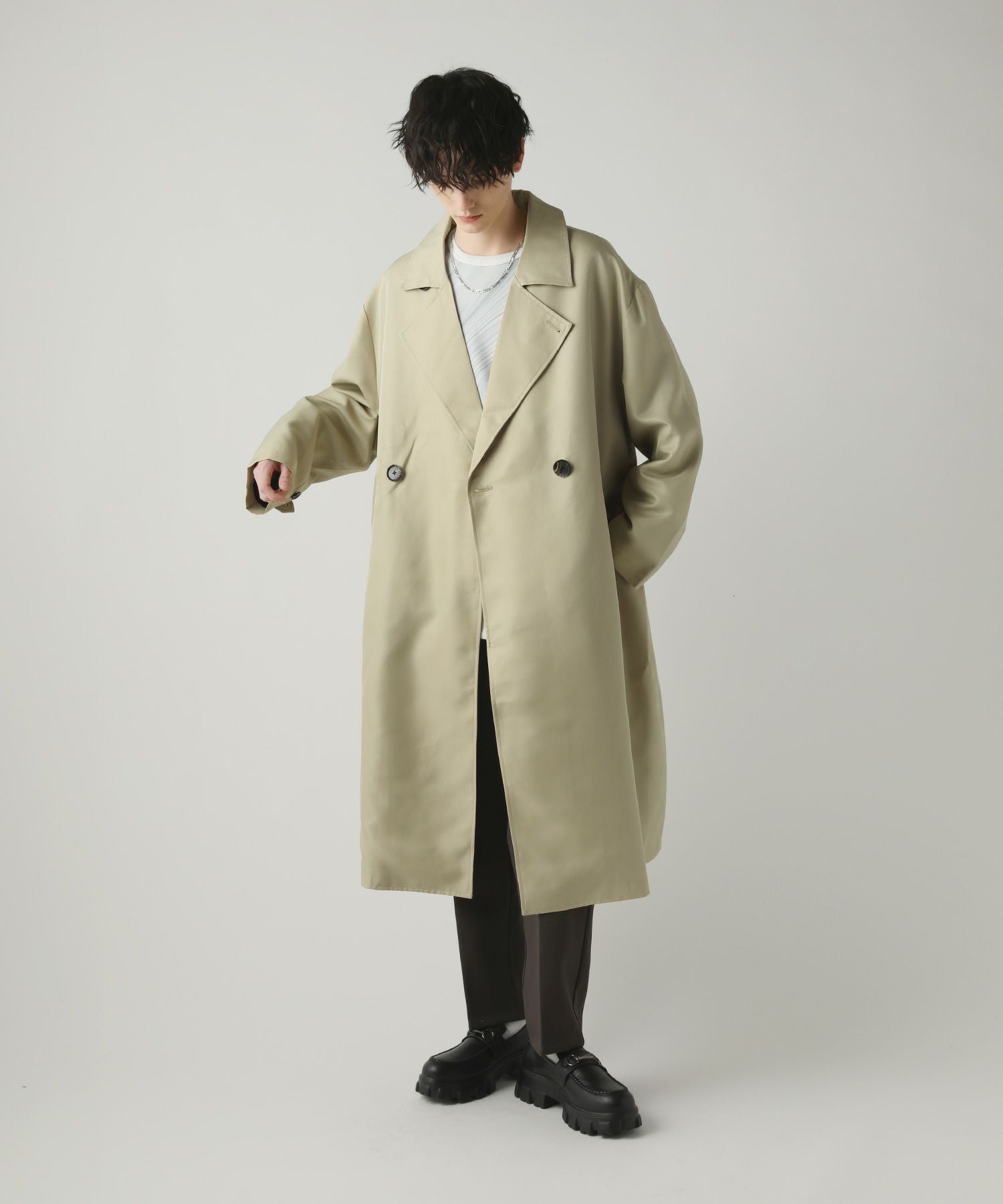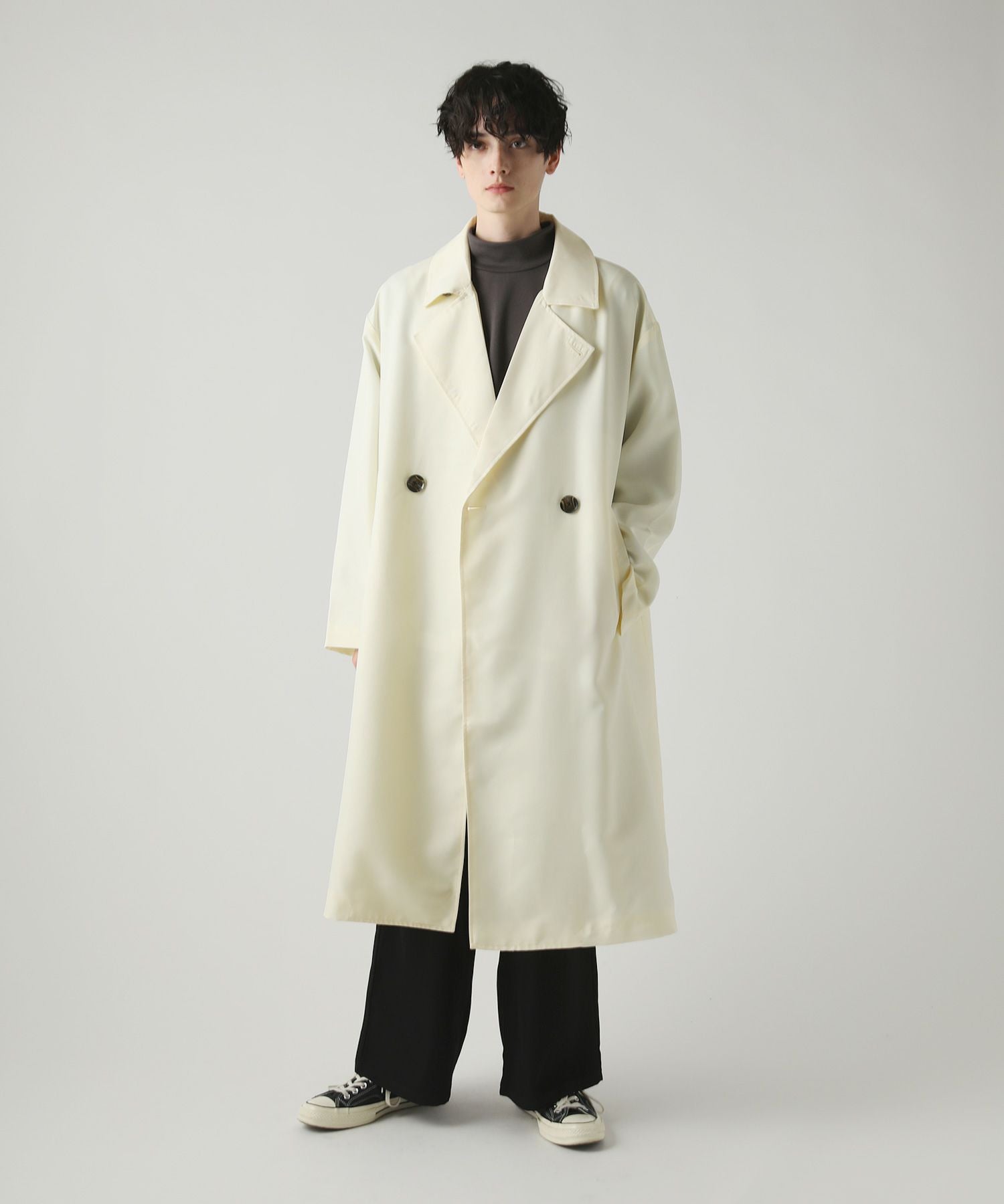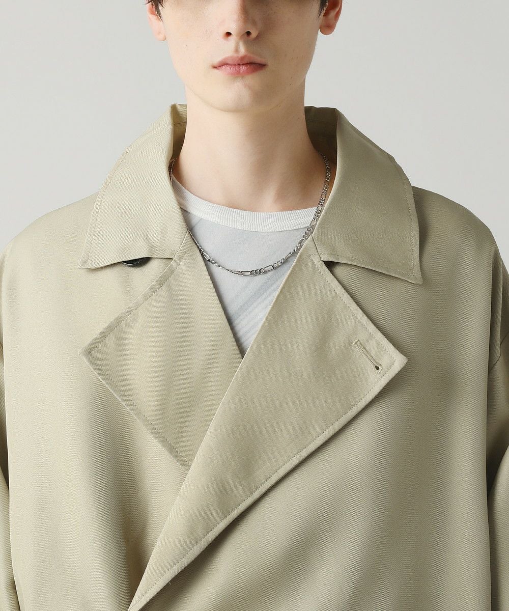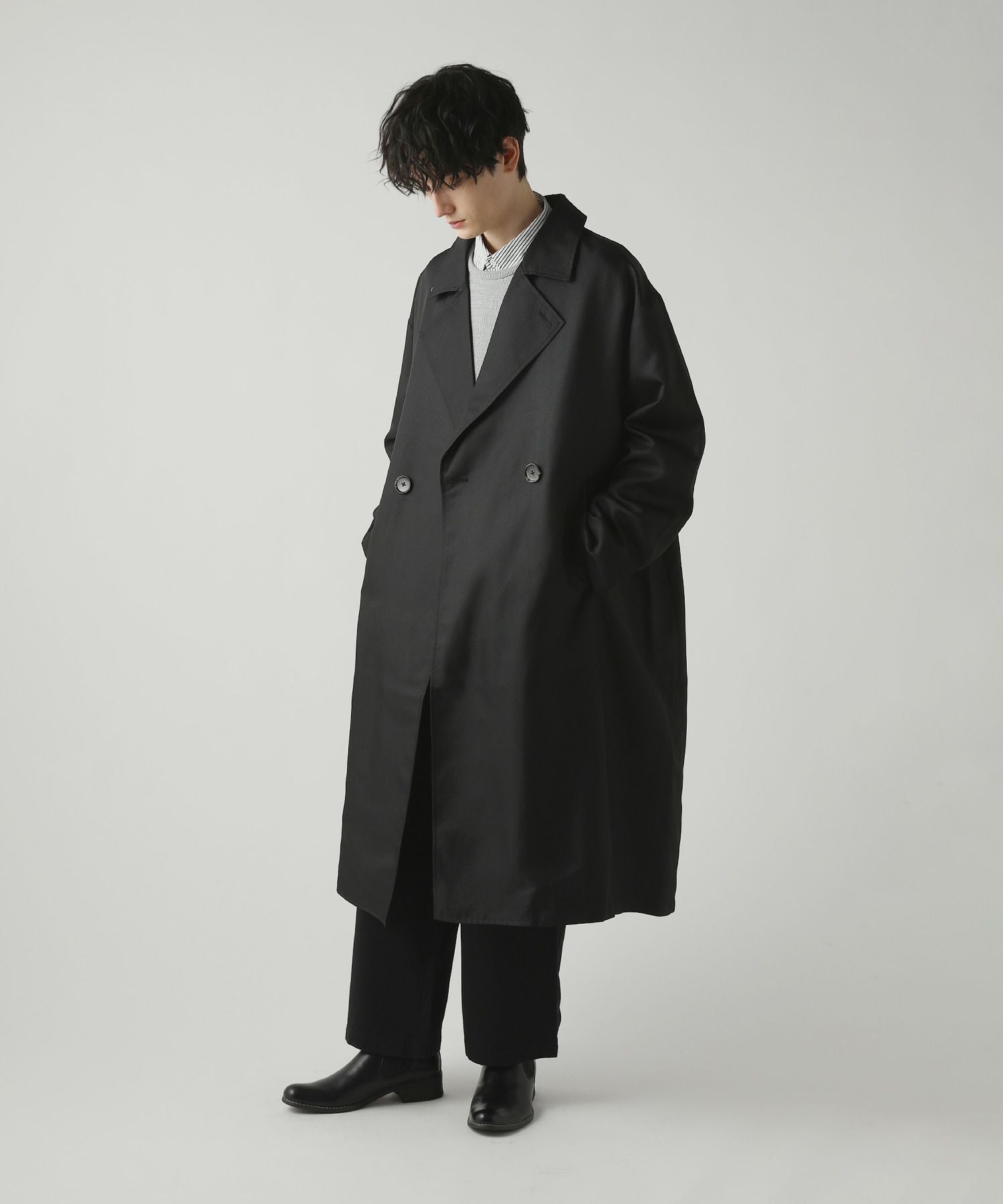 トレンドのオーバーサイズシルエットを落とし込んだラップコート。長めの裾が動く度に生地を揺らし、滑らかなドレープ感と美しいAラインを生み出します。ボタンが少ないシンプルなデザインで、ゆとりを持たせつつもラフになりすぎないサイジングがコーディネートの幅を広げる一着です。