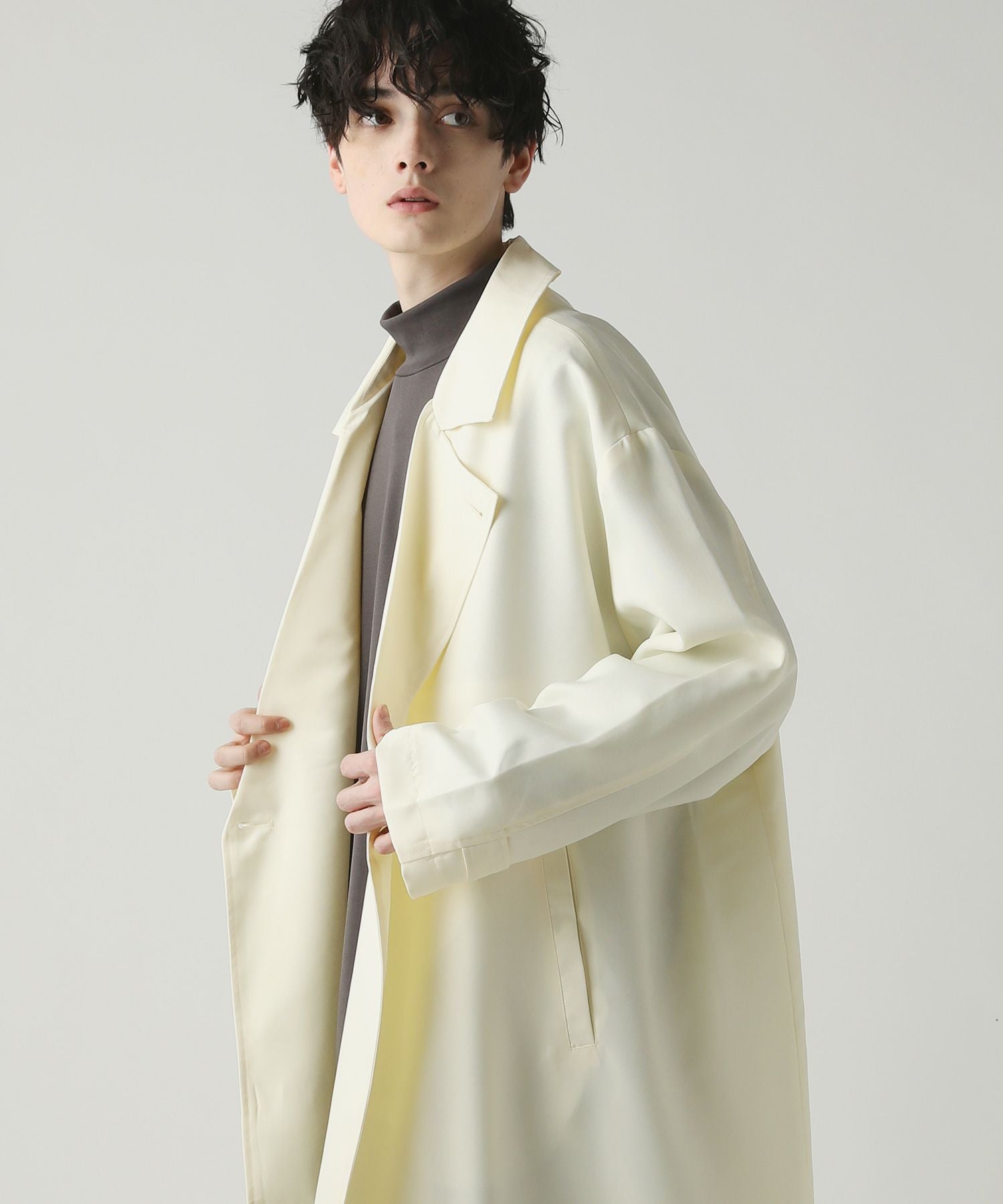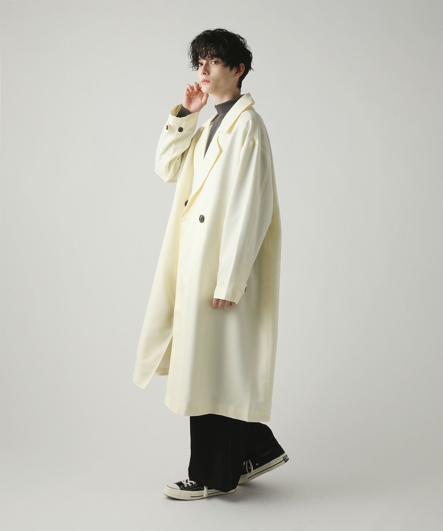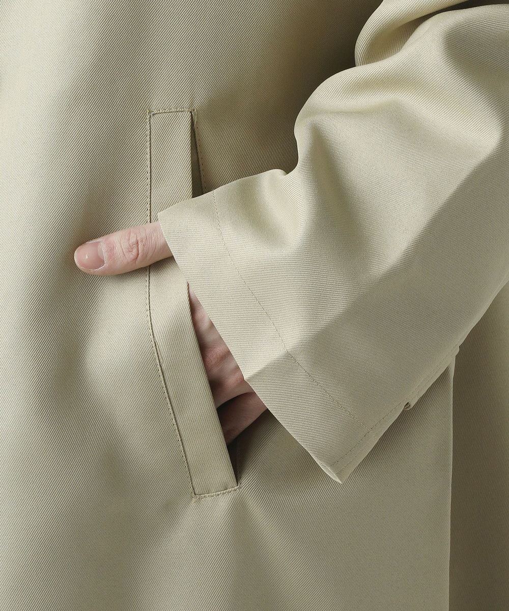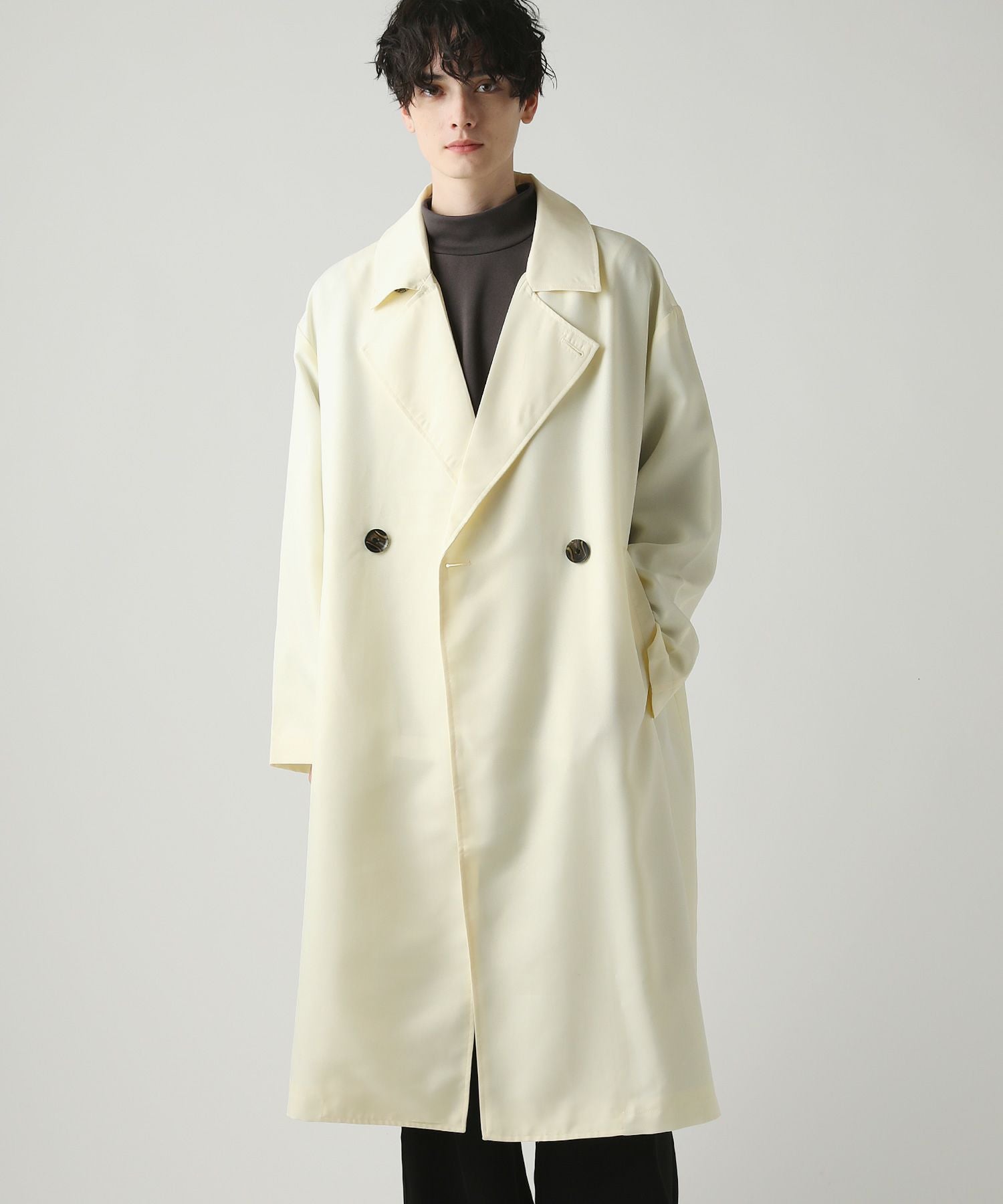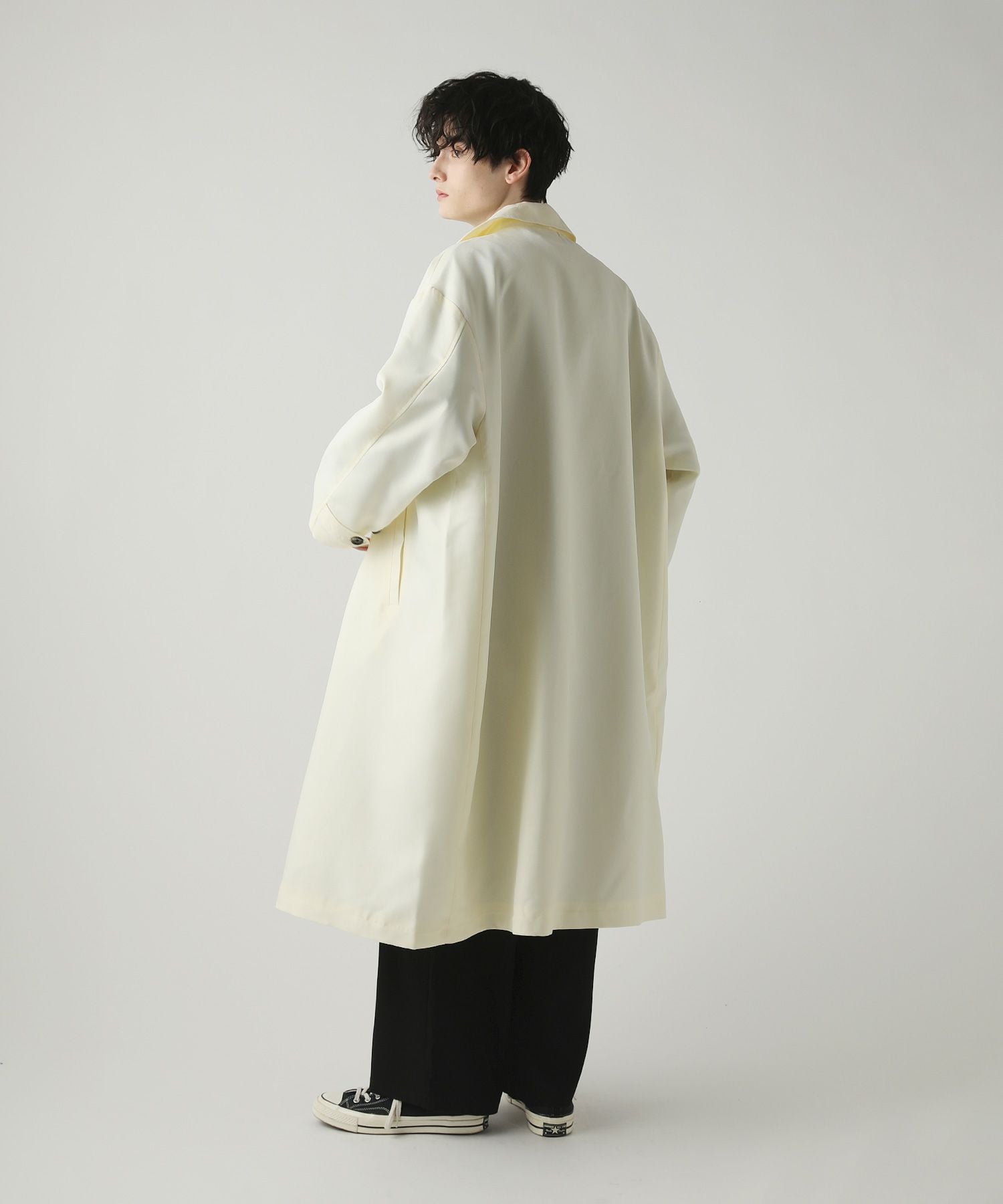 トレンドのオーバーサイズシルエットを落とし込んだラップコート。長めの裾が動く度に生地を揺らし、滑らかなドレープ感と美しいAラインを生み出します。ボタンが少ないシンプルなデザインで、ゆとりを持たせつつもラフになりすぎないサイジングがコーディネートの幅を広げる一着です。