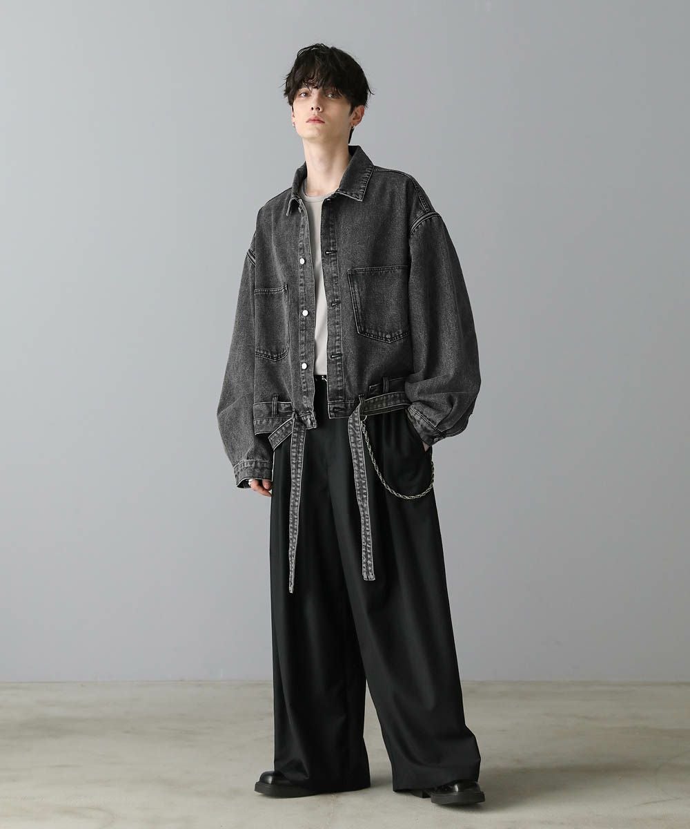同生地のデニムカーゴパンツと合わせた、セットアップの着こなしが可能。セットで着用することで雰囲気抜群のスタイルに。また短丈のアイテムなので、ワイド、バギーパンツなどボリュームのあるボトムともバランスが取りやすい1着。お手持ちのボトムと合わせてトレンドのコーディネートを楽しめます。