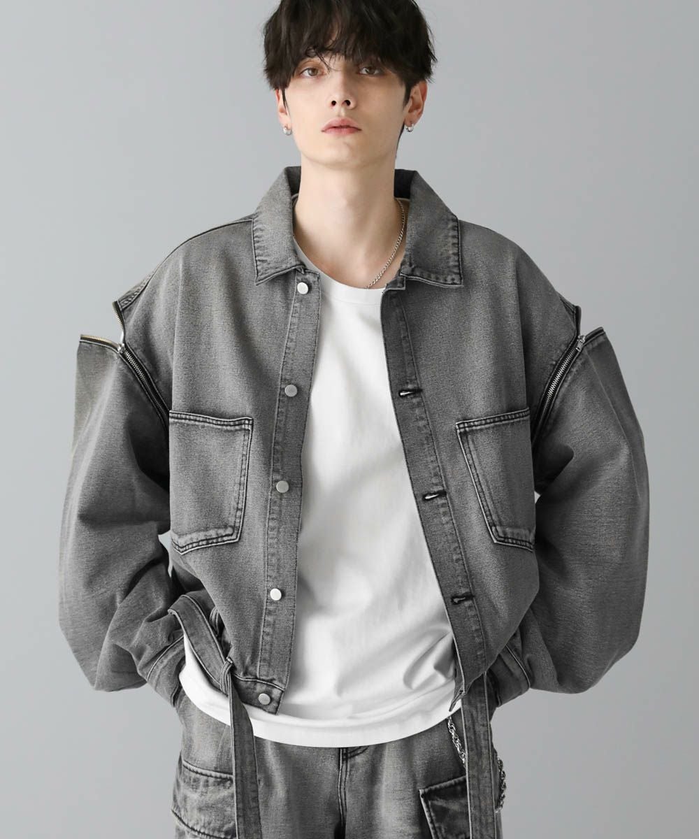 【セットアップ可】サイドコード2wayZIPデニムブルゾン