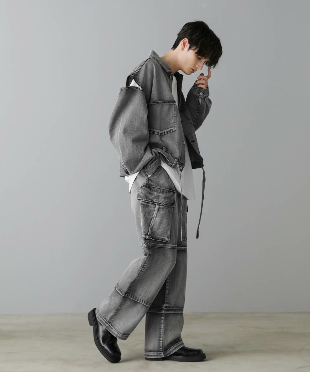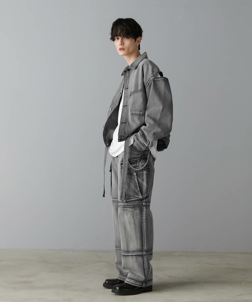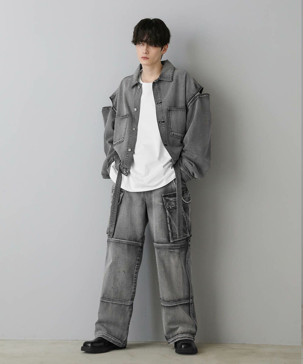 【セットアップ可能】ウォッシュ加工カーゴデニムパンツ