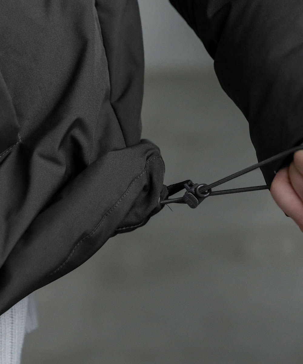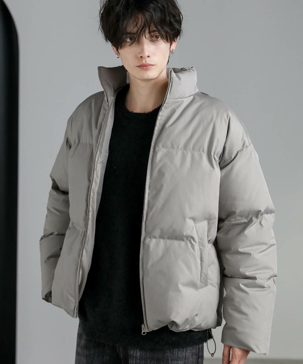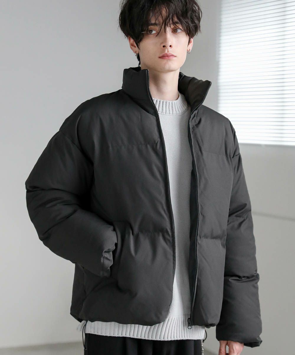 シルエットは、ボリューム感と短めの丈がトレンドを押さえたデザイン。光沢を抑えたマットな質感で、キレイめな印象でお使いいただけます。また、袖口は表から見えないゴム仕様、裾にはドローコードを付けることで着用時のシルエット変化を楽しんだり、裾から冷たい外気が入り込むのを防いでくれます。ショート丈でインナーとのレイヤードコーデが楽しめ、ワイドパンツやバギーパンツなど太めのボトムとバランスがとりやすいのが魅力。シンプルなデザインで大人っぽく着こなせ、シティユースにはまるダウンジャケットです。