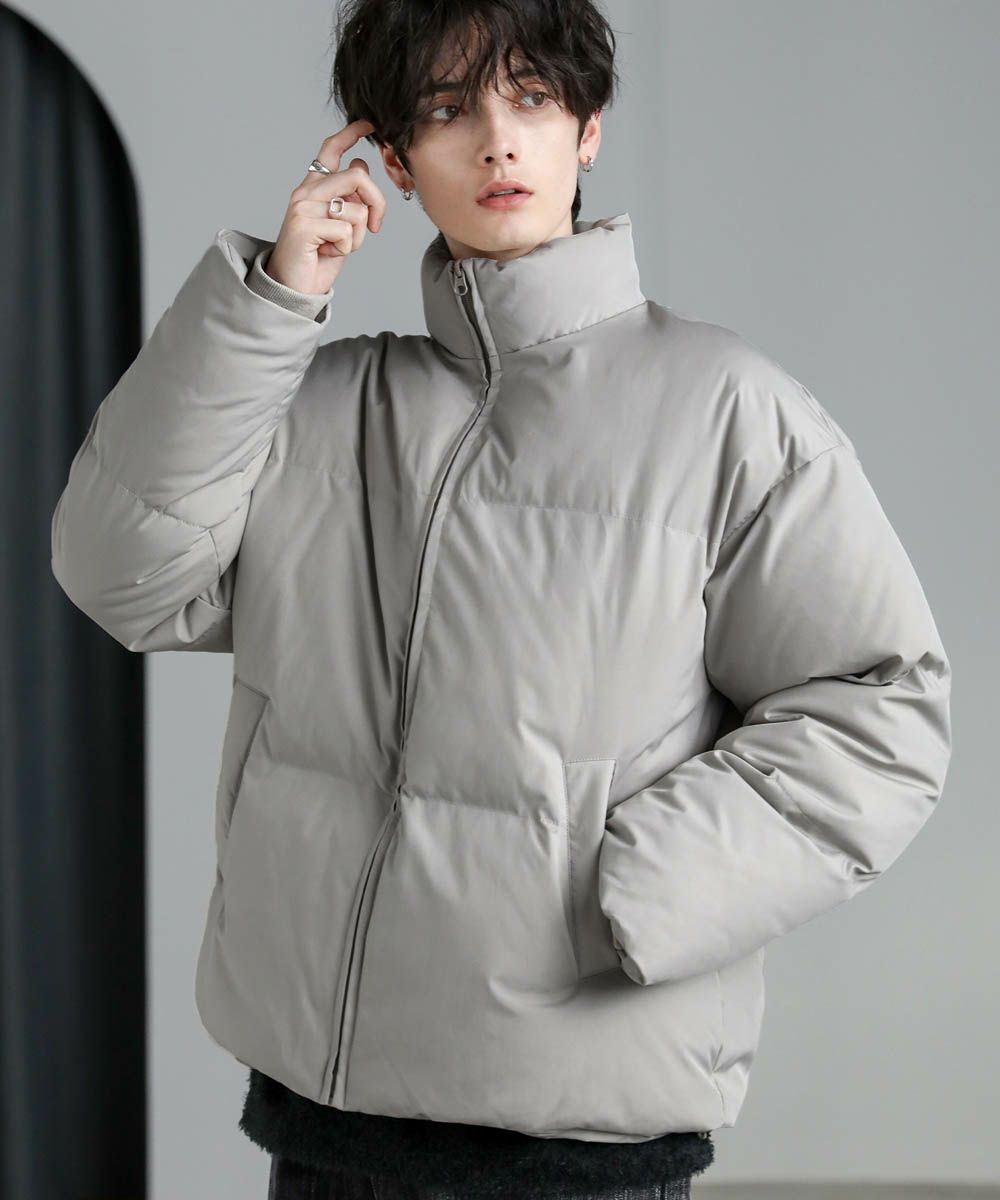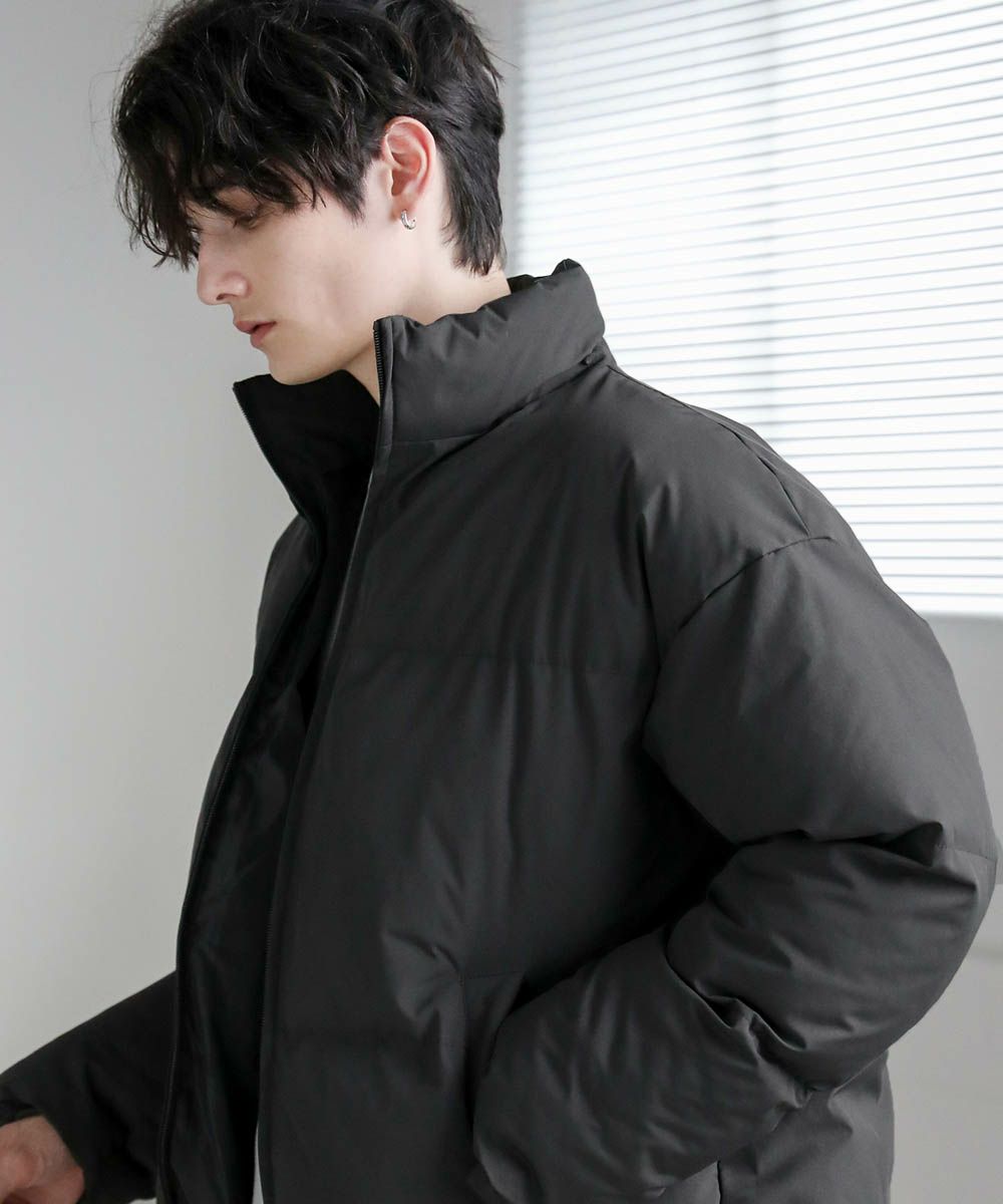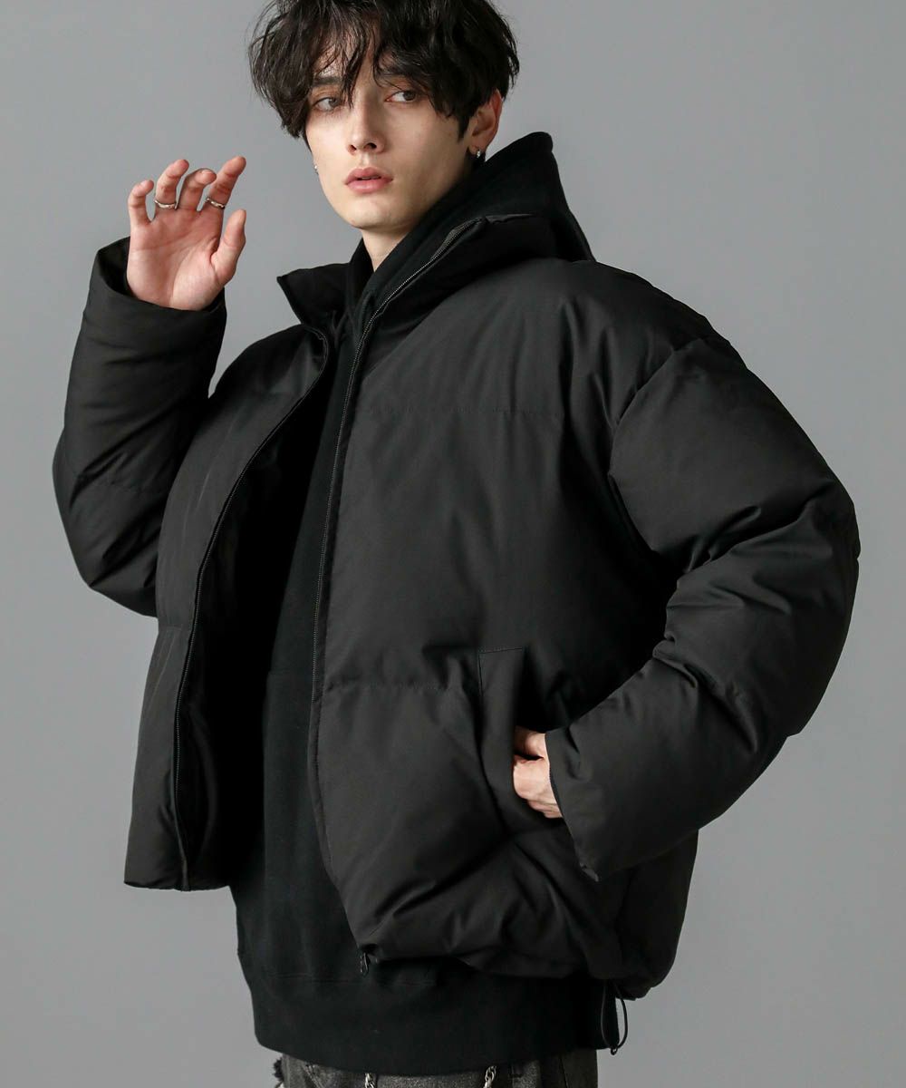 シルエットは、ボリューム感と短めの丈がトレンドを押さえたデザイン。光沢を抑えたマットな質感で、キレイめな印象でお使いいただけます。また、袖口は表から見えないゴム仕様、裾にはドローコードを付けることで着用時のシルエット変化を楽しんだり、裾から冷たい外気が入り込むのを防いでくれます。ショート丈でインナーとのレイヤードコーデが楽しめ、ワイドパンツやバギーパンツなど太めのボトムとバランスがとりやすいのが魅力。シンプルなデザインで大人っぽく着こなせ、シティユースにはまるダウンジャケットです。