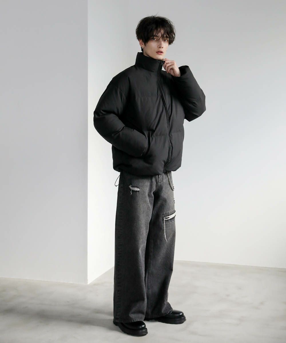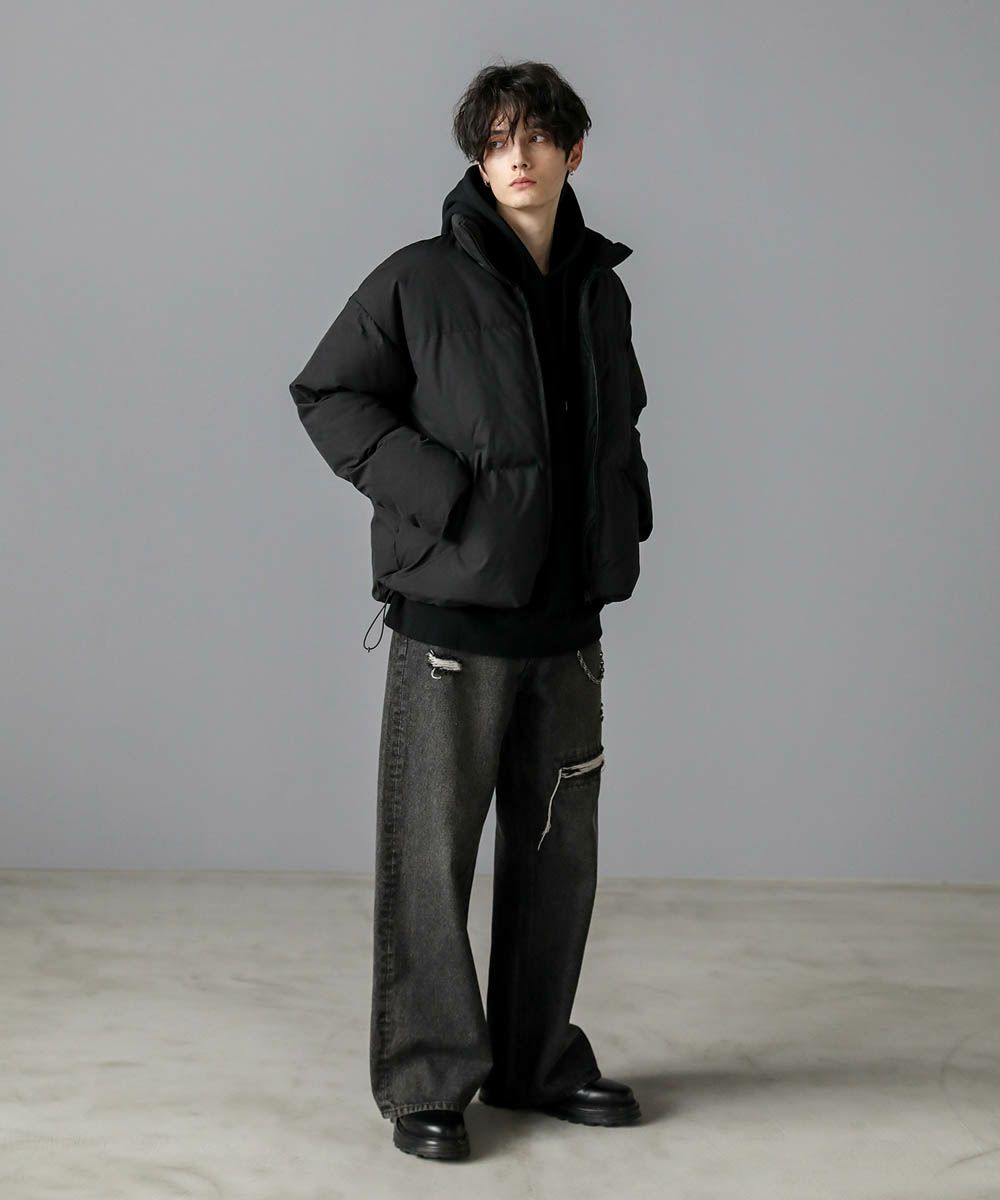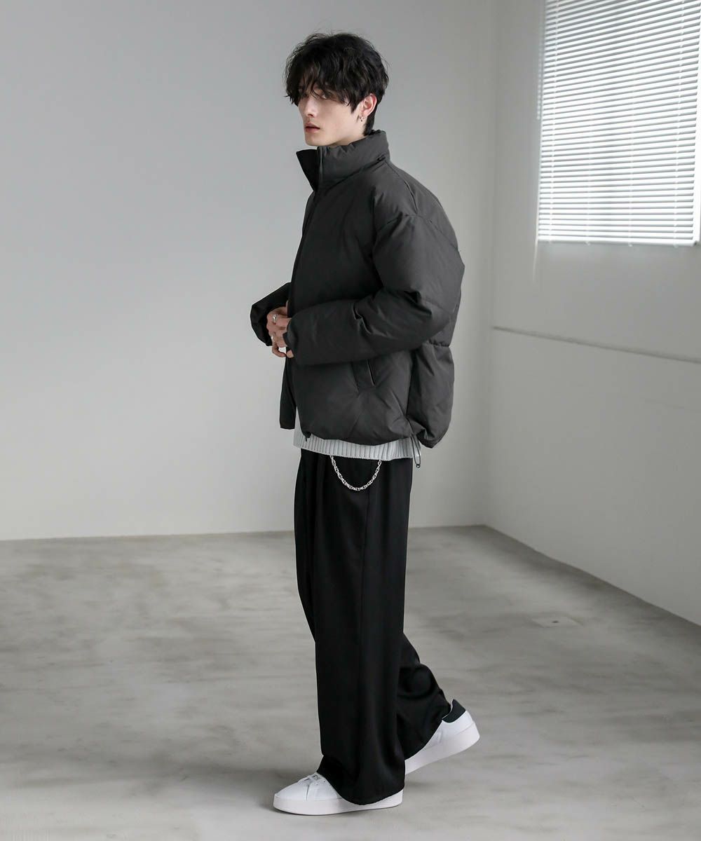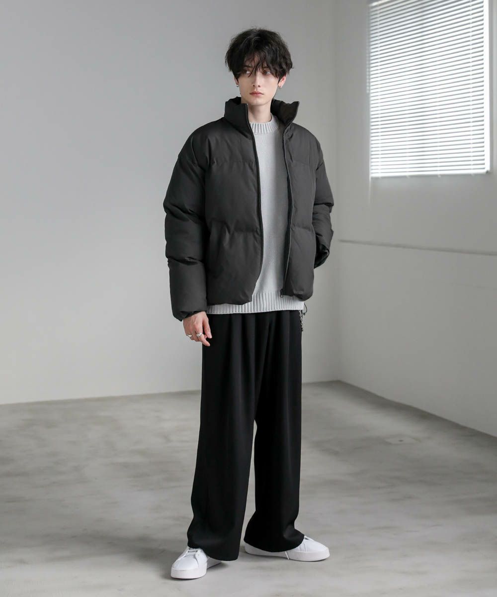 ショート丈なのでバランスが取りやすくデイリーに活躍します。ワイドスラックスやデニムパンツ、カーゴパンツなどキレイめからカジュアルまで対応可能。程よくいオーバーサイズで、厚手のスウェットやニットも楽に着込めます。