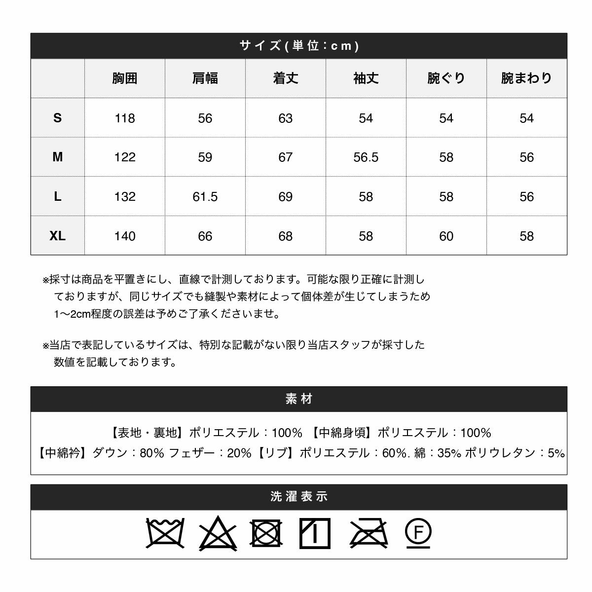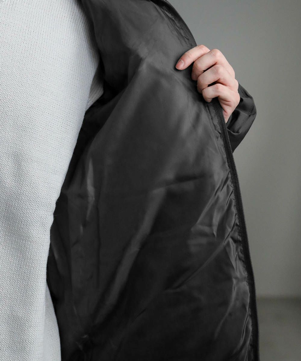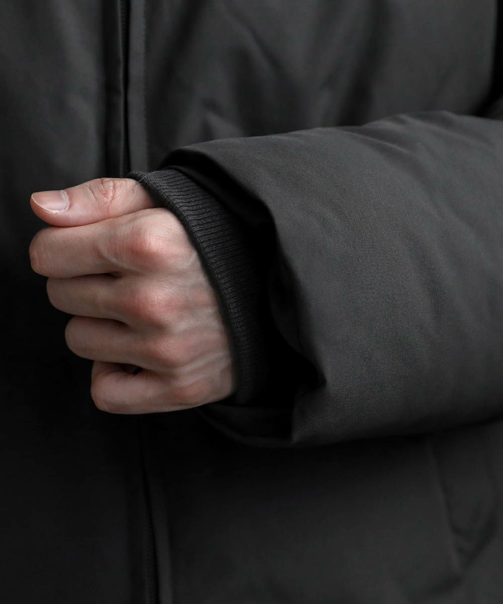表地にはマットな質感のポリエステル生地を採用。ほのかな光沢感もあり上品で高見えする質感です。裏地には滑りの良い生地を使用し、摩擦がなくスムーズに脱ぎ着が可能です。中綿は軽量でもしっかりと弾力がありボリューム感を感じられる600フィルパワー中綿を採用。首元はダウン80%、フェザー20%の混率にすることでさらに防寒性を高めています。