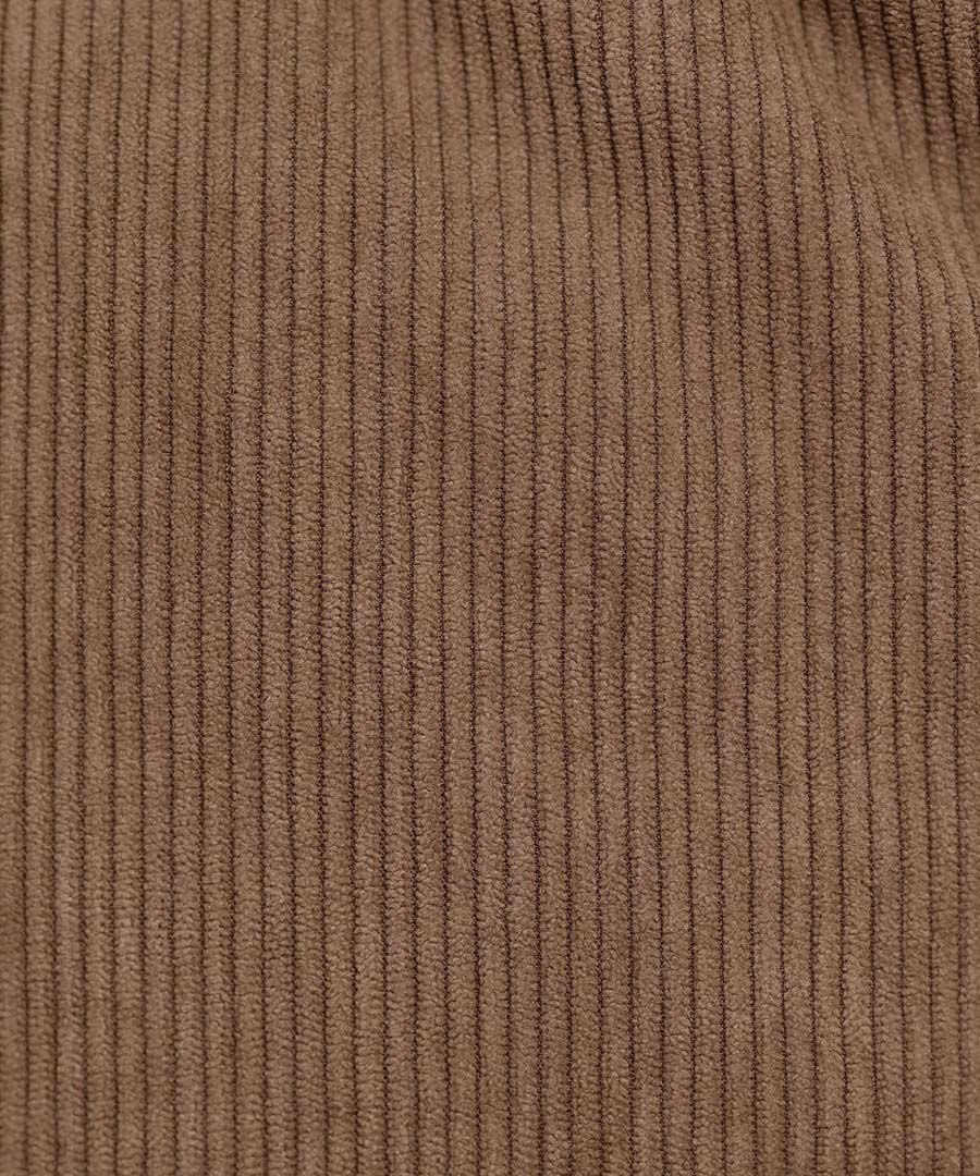 温かみと柔らかさを兼ね備えたポリエステルコーデュロイ素材。 ほどよい畝感があり、秋冬らしい深みのある表情を生み出します。 落ち着いた光沢としなやかな質感で、カジュアルにも上品にも馴染む素材です。