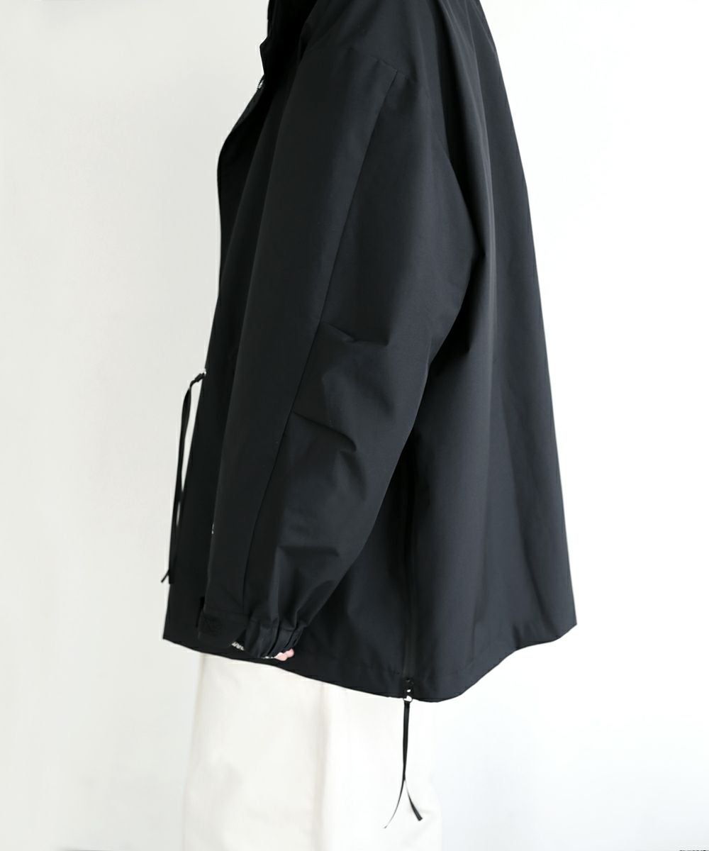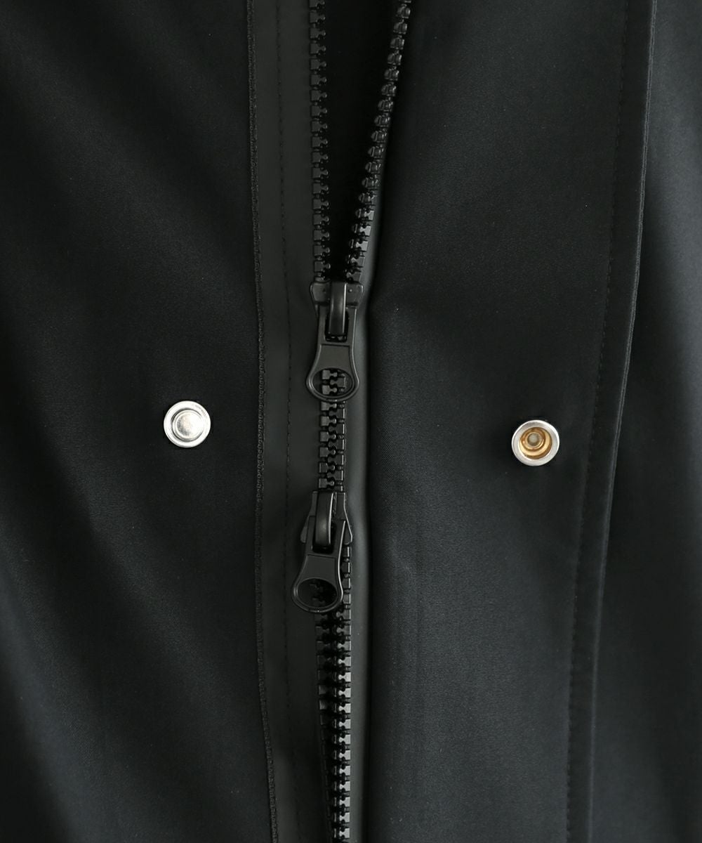 脇下の両サイドには止水ジップを配しており、ベンチレーションとしての活用やインナーとのレイヤードスタイルをお楽しみいただける仕様となっています。