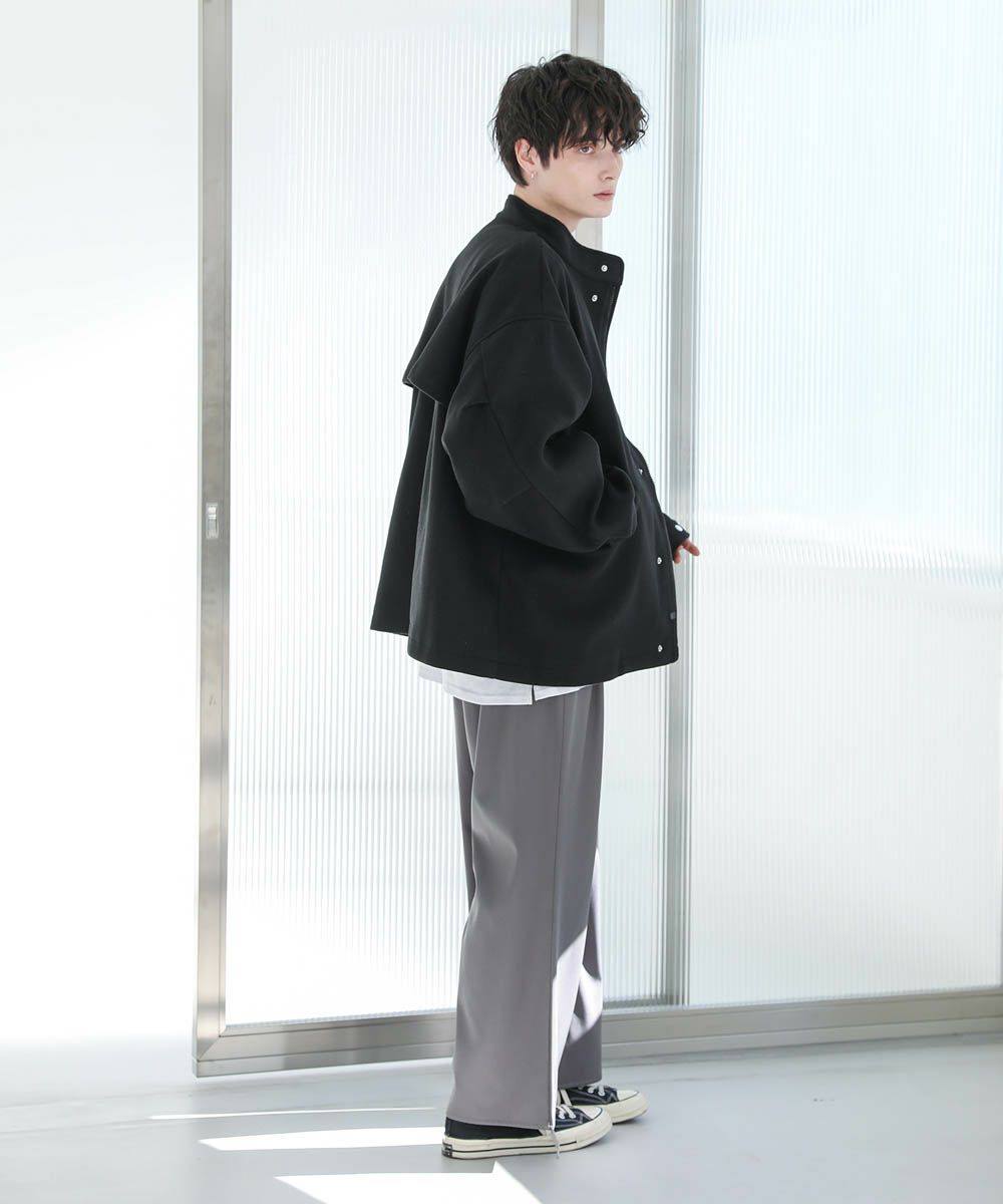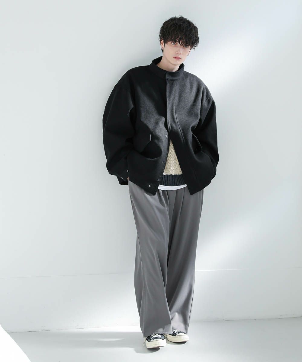 ショート丈のブルゾンなので、ボトムを選ばずデイリーに活躍します。ワイドパンツやバギーパンツなど太めボトムともバランスの取りやすい丈感。また身幅と袖にゆとりがあり、オーバーサイズのスウェットやニットも着込めます。インナーを調節することで晩秋から春先にかけて着回しの効くアイテムです。