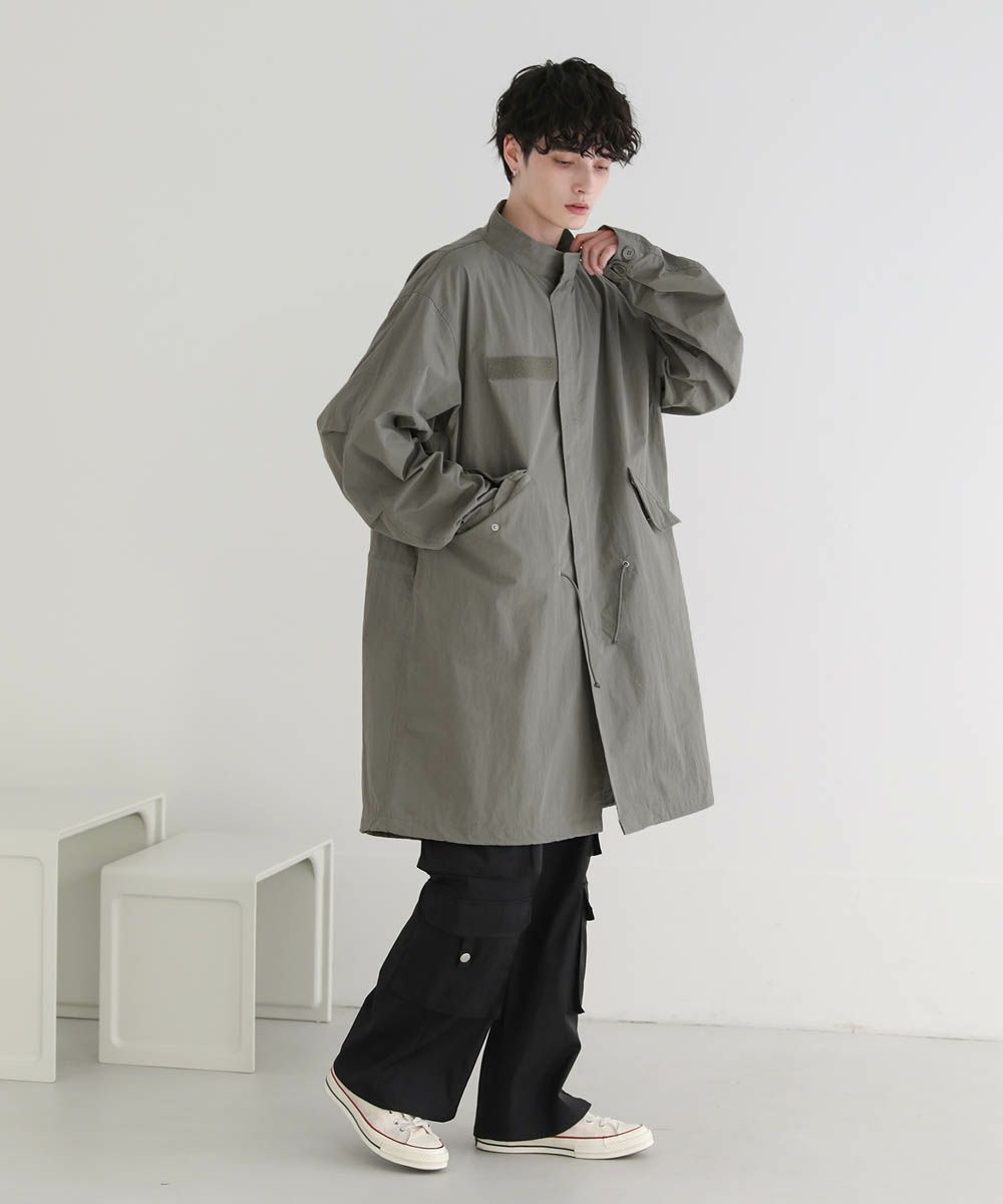 アメリカ軍のM-65をモデルにしたオーバーサイズのモッズコート。季節の変わり目にさっと羽織れる、軽やかさが魅力です。ゆったりと着こなせるオーバーサイズ&ドロップショルダーが今っぽいリラックス感のあるデザイン。裾、ウエスト部分はドローコード仕様、袖口はボタンで調整可能です。シンプルなデザインなので着回しやすく、一つあるとコーディネートの幅が広がります。