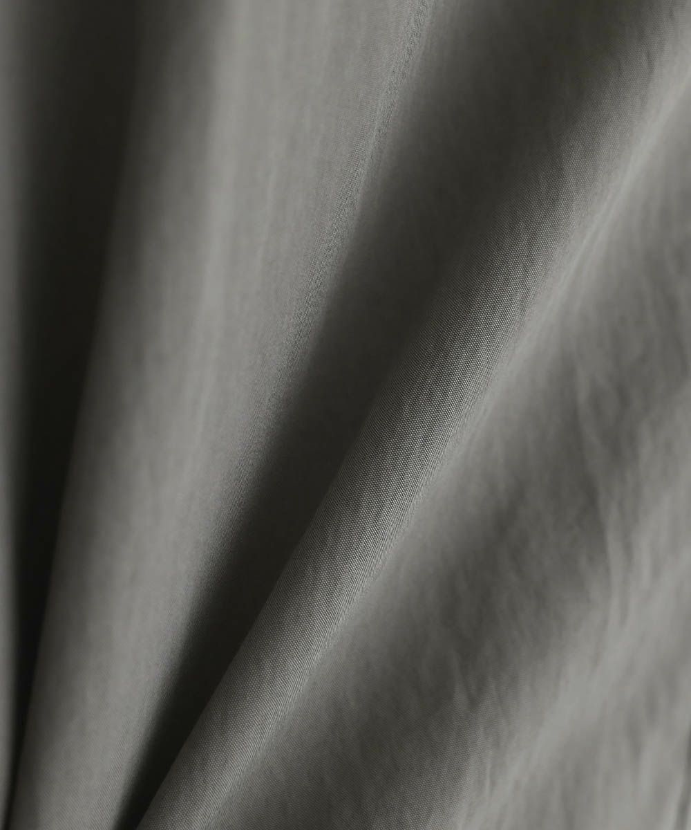 綿とナイロンを混紡した、さらっとした肌触りの生地を使用しています。とても軽量で、裏地はなく、ストレスのない軽やかな着心地が魅力。ハリがある生地なので、着用時に立体的なシルエットに見せてくれます。