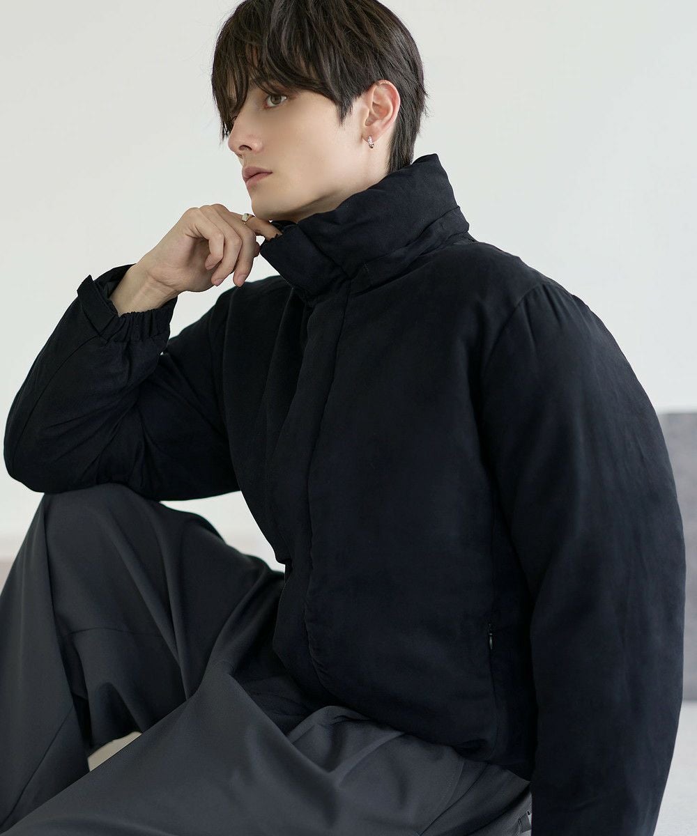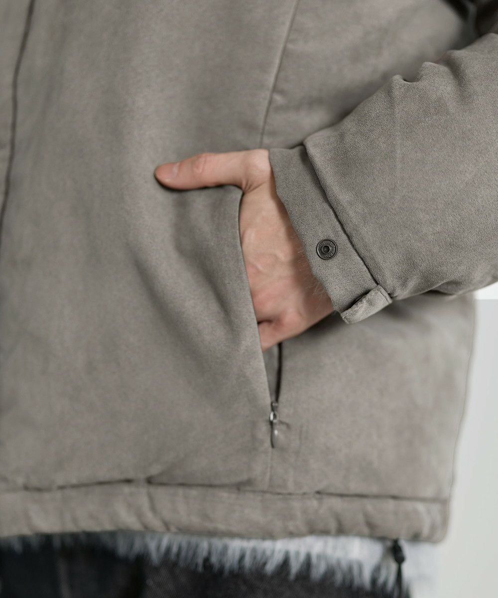 機能性とデザイン性を兼ね備えた、ポリスウェード中綿ジャケット。