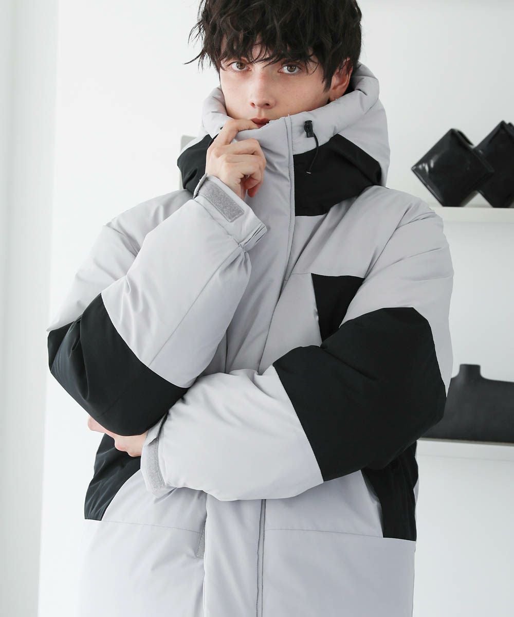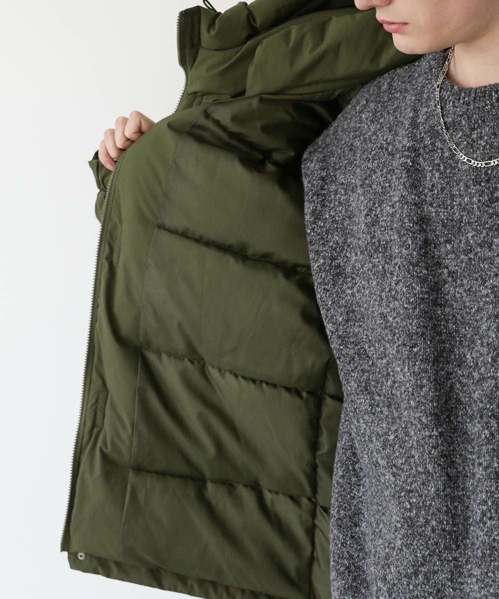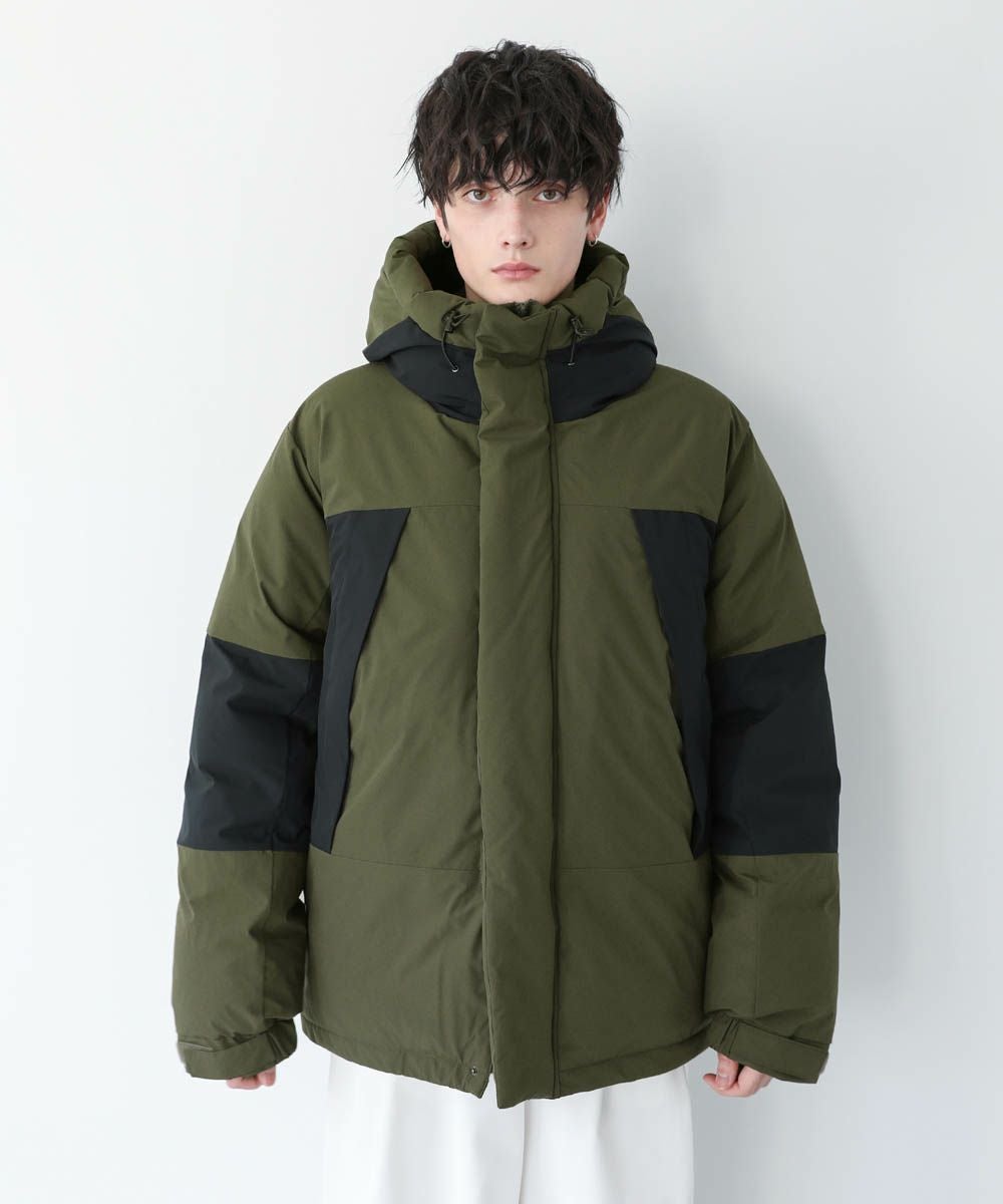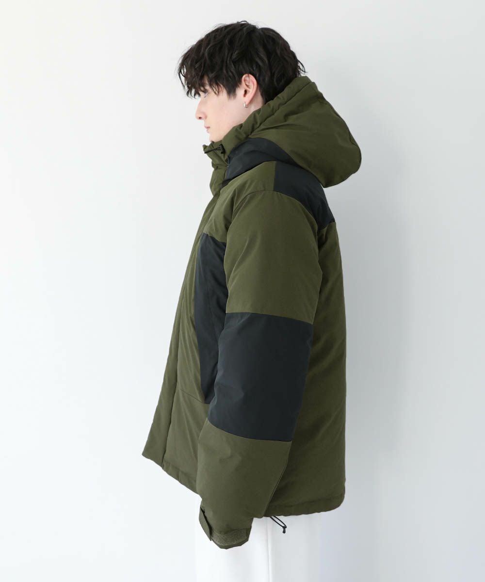 ボリュームのあるスタンドネックフードが防寒性を高める中綿ブルゾン。身幅を広く取ったビッグシルエットが今っぽく、存在感のある1着。風の侵入を防ぐスタンドネック仕様のフードや、比翼仕立てのフロントジップ、袖口のストラップなど、寒さを防ぐためのディティールにも拘って作られています。また、裾にはドローコードを施しているため風の侵入を防ぐ他、シルエットに変化をつけることも可能。フードまでしっかりと詰まった中綿がボリューム感を出しつつも、シームレスデザインですっきりとした印象で着こなせます。