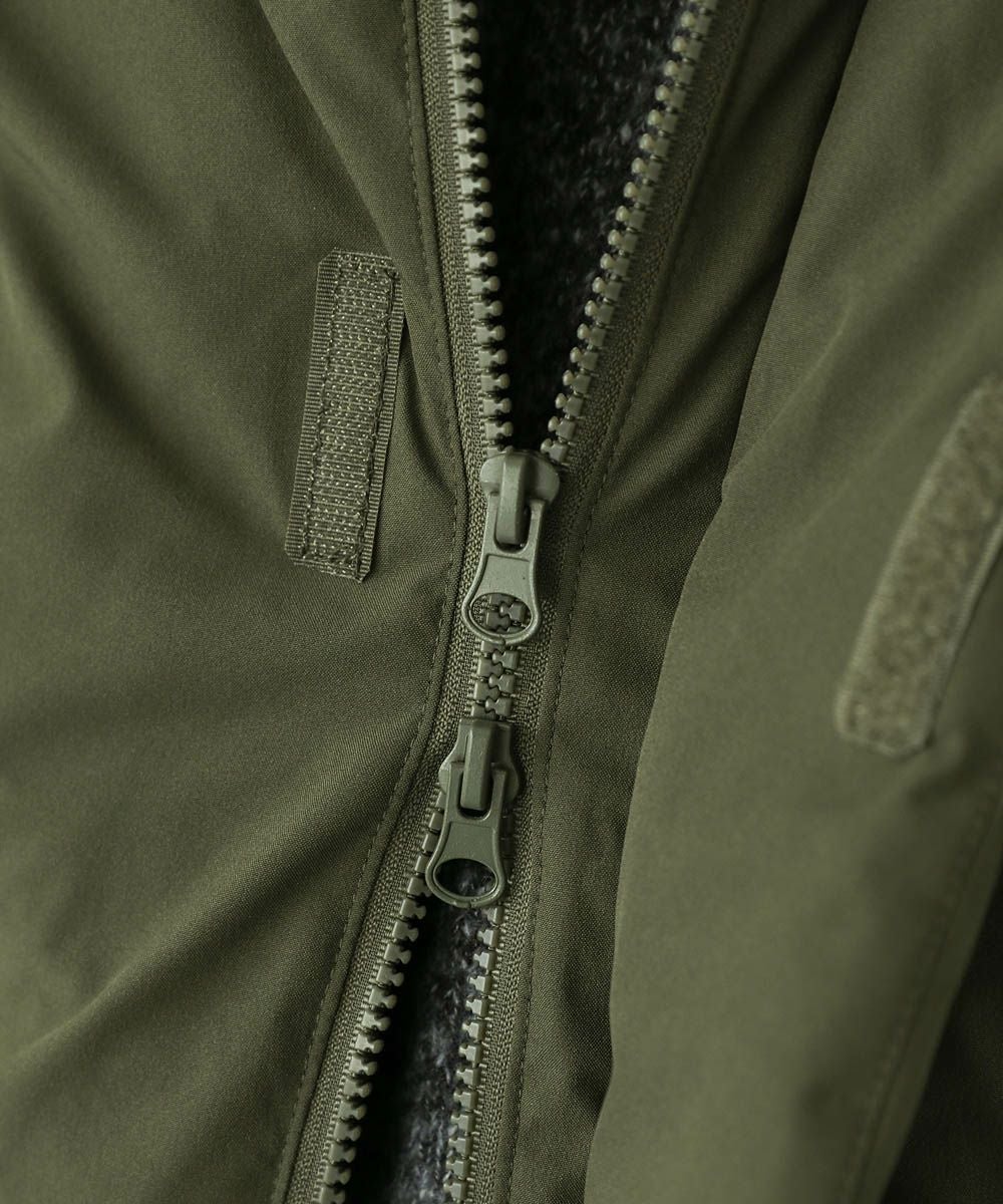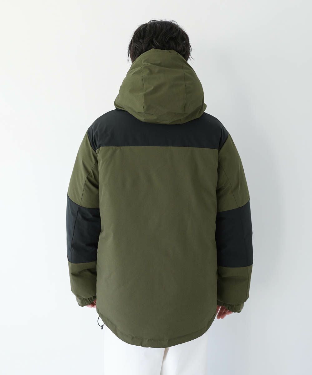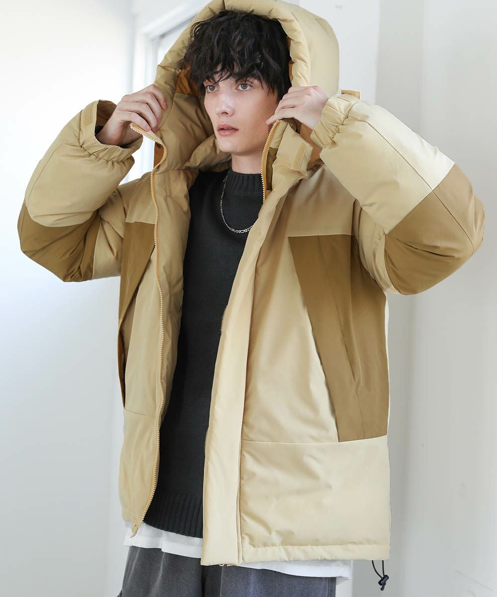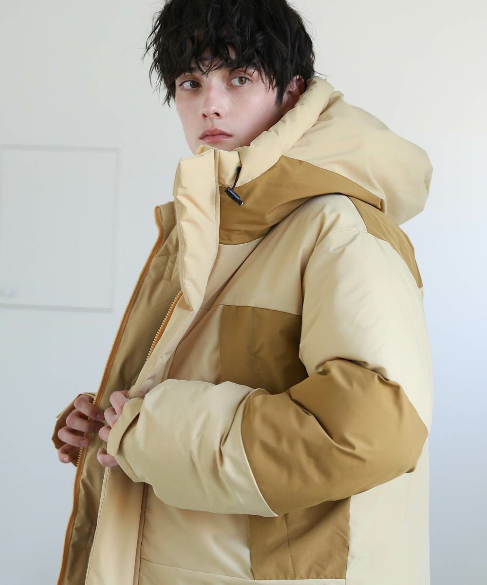 ボリュームのあるスタンドネックフードが防寒性を高める中綿ブルゾン。身幅を広く取ったビッグシルエットが今っぽく、存在感のある1着。風の侵入を防ぐスタンドネック仕様のフードや、比翼仕立てのフロントジップ、袖口のストラップなど、寒さを防ぐためのディティールにも拘って作られています。また、裾にはドローコードを施しているため風の侵入を防ぐ他、シルエットに変化をつけることも可能。フードまでしっかりと詰まった中綿がボリューム感を出しつつも、シームレスデザインですっきりとした印象で着こなせます。