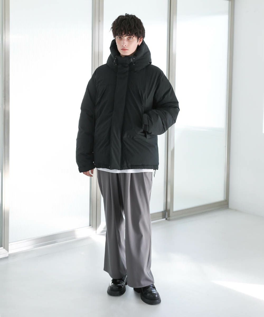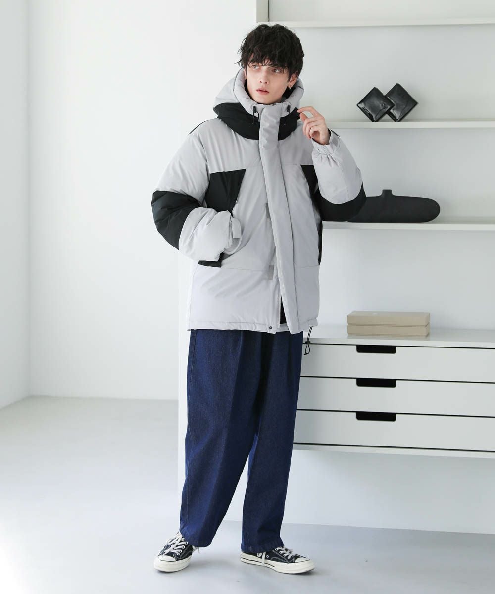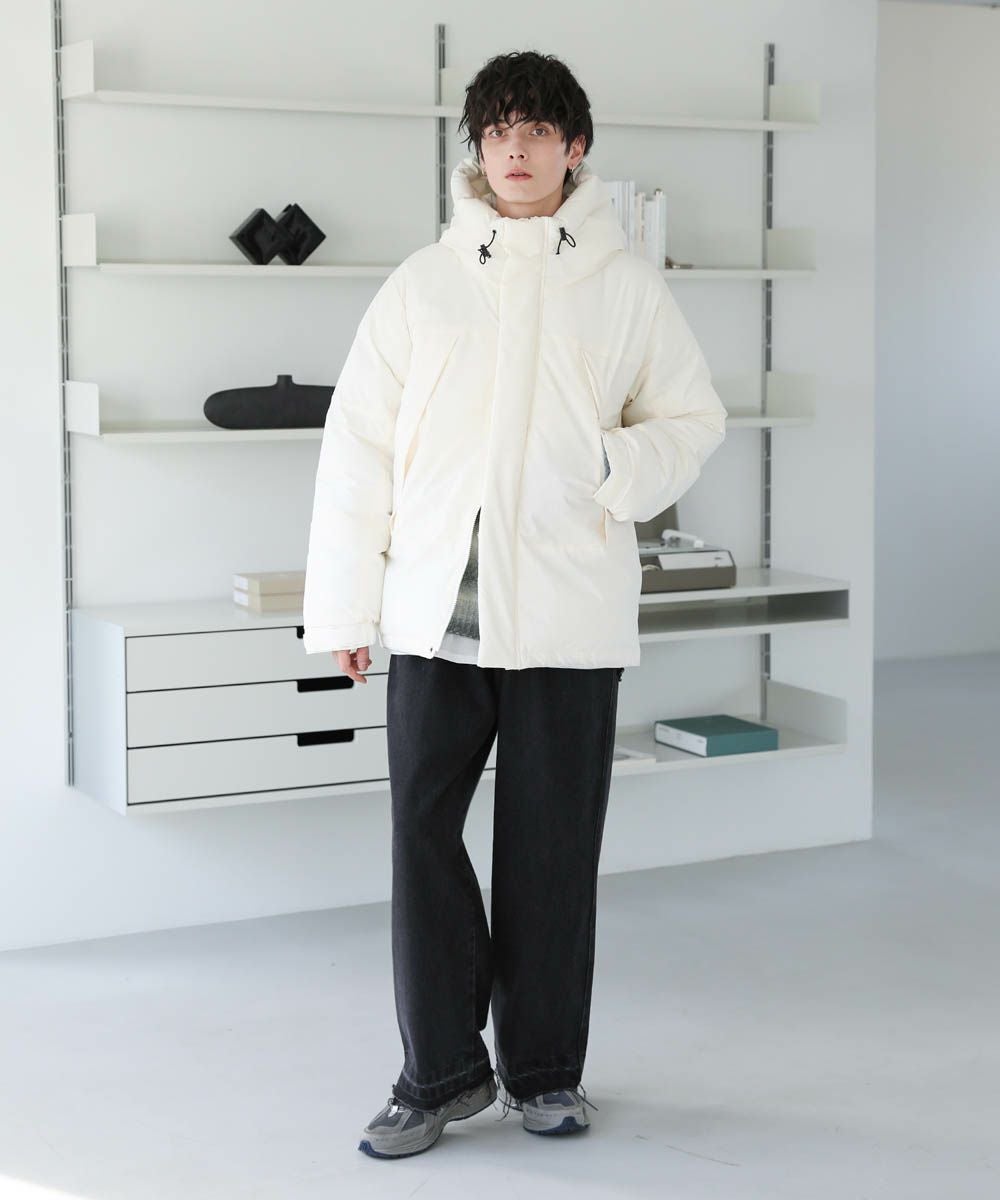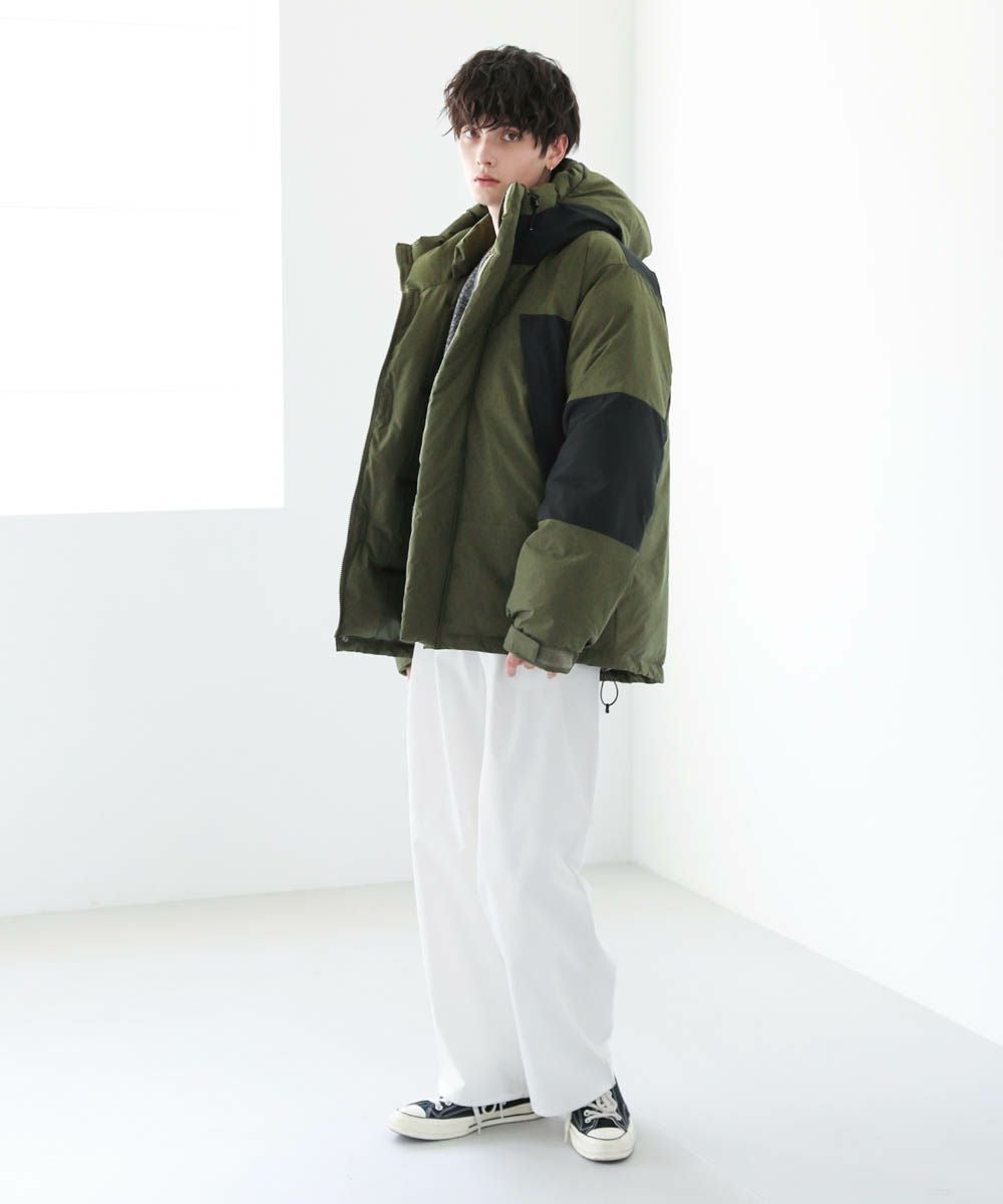 インパクトのあるビッグシルエットなので、ワイドデニムやバギーパンツなど太めのボトムと相性抜群。ゆったりとした着用感で、インナーに厚手のニットやスウェットも楽に着込むことができます。裾のドローコードの絞り具合でシルエットのアレンジが効くため、着こなしの幅も広がります。