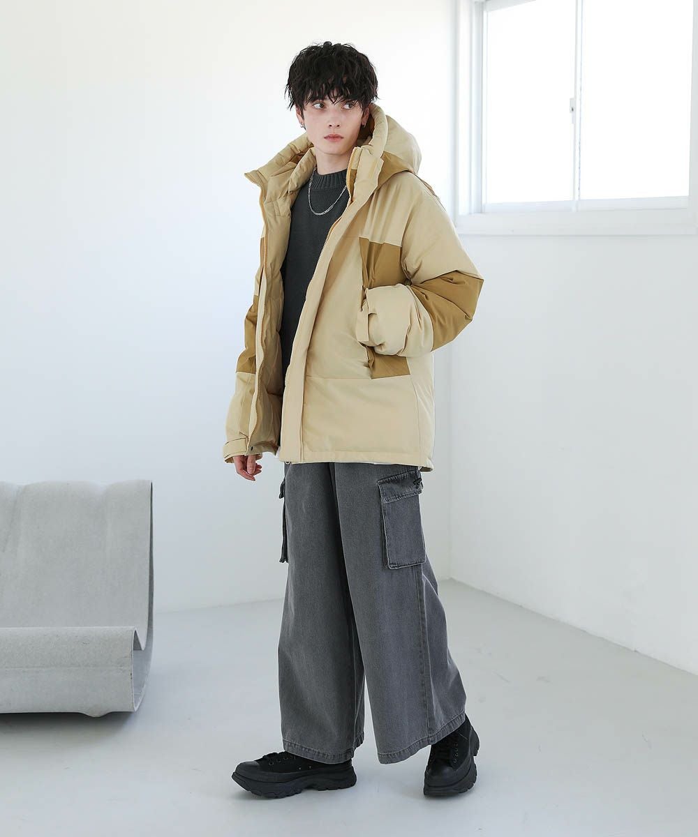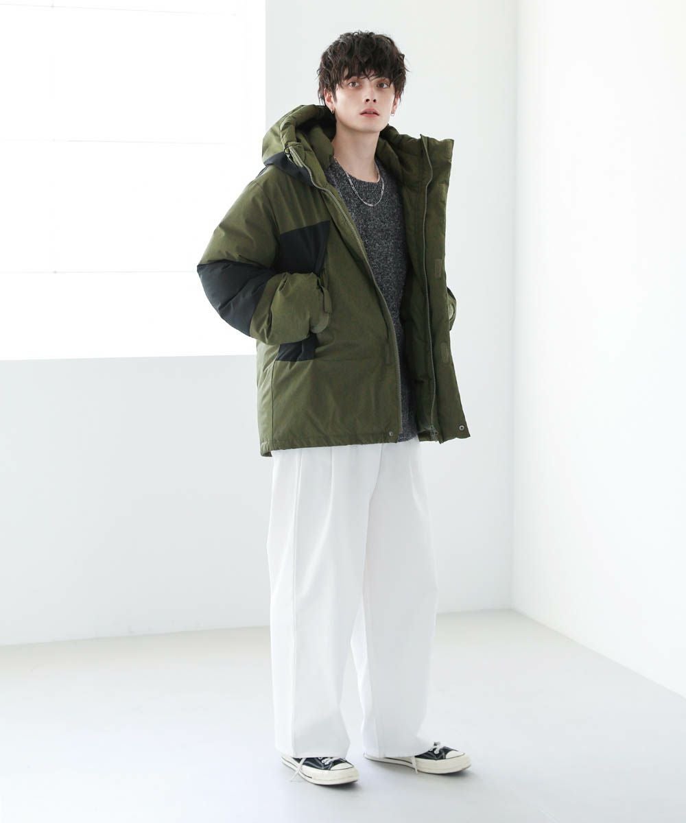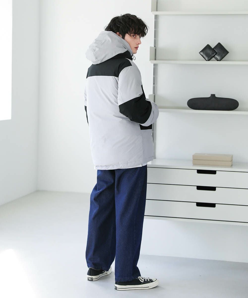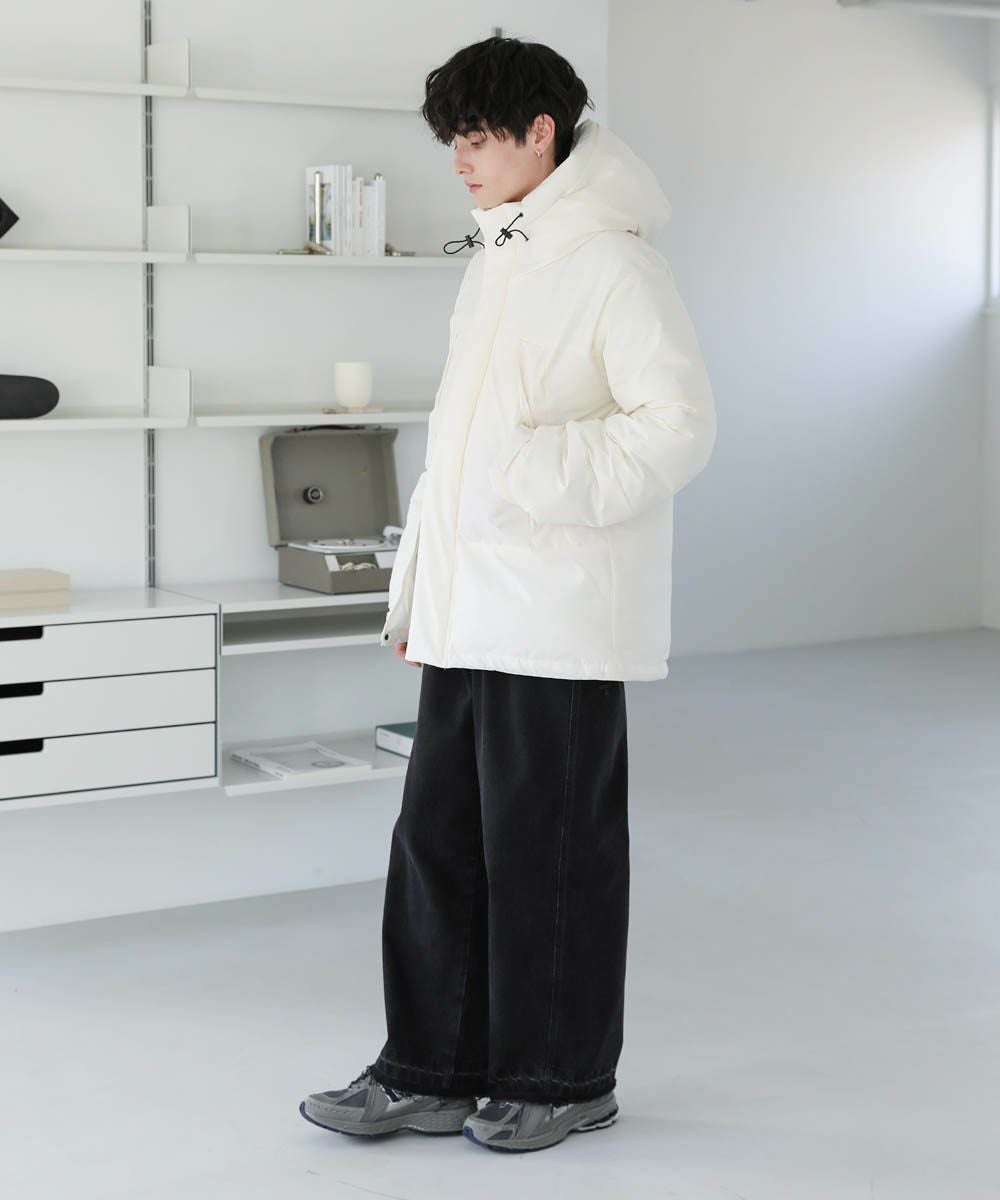 インパクトのあるビッグシルエットなので、ワイドデニムやバギーパンツなど太めのボトムと相性抜群。ゆったりとした着用感で、インナーに厚手のニットやスウェットも楽に着込むことができます。裾のドローコードの絞り具合でシルエットのアレンジが効くため、着こなしの幅も広がります。