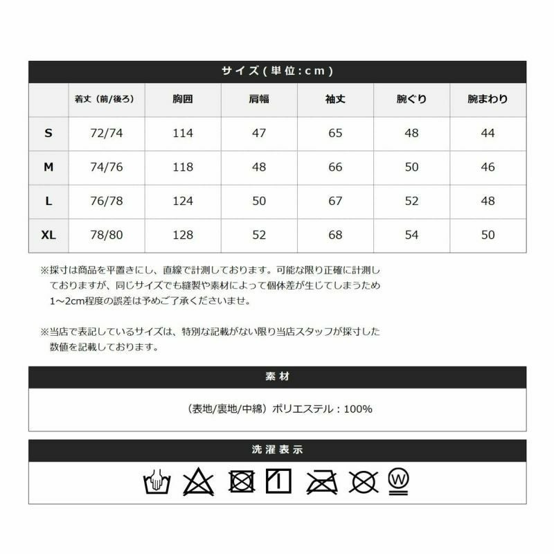 さらっとしたタッチのポリエステル100%素材を使用しています。ふんわりとした中綿は、温かみがありつつも軽量で普段使いに最適。