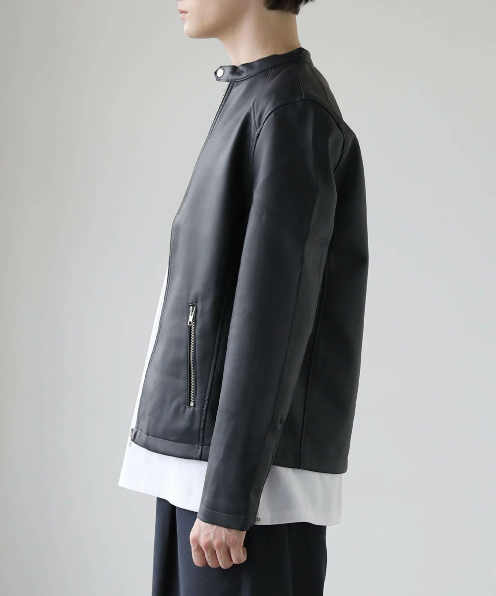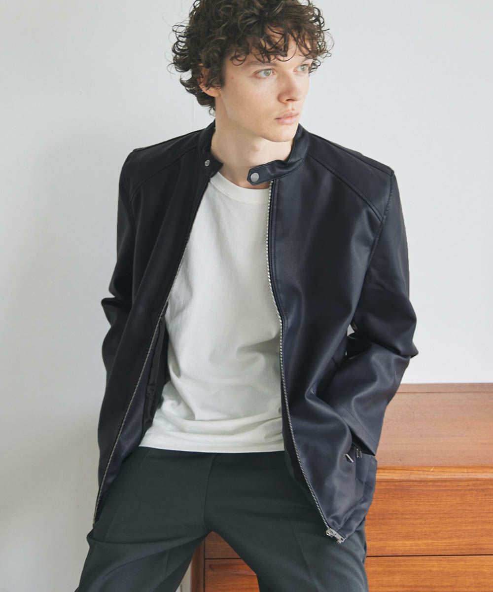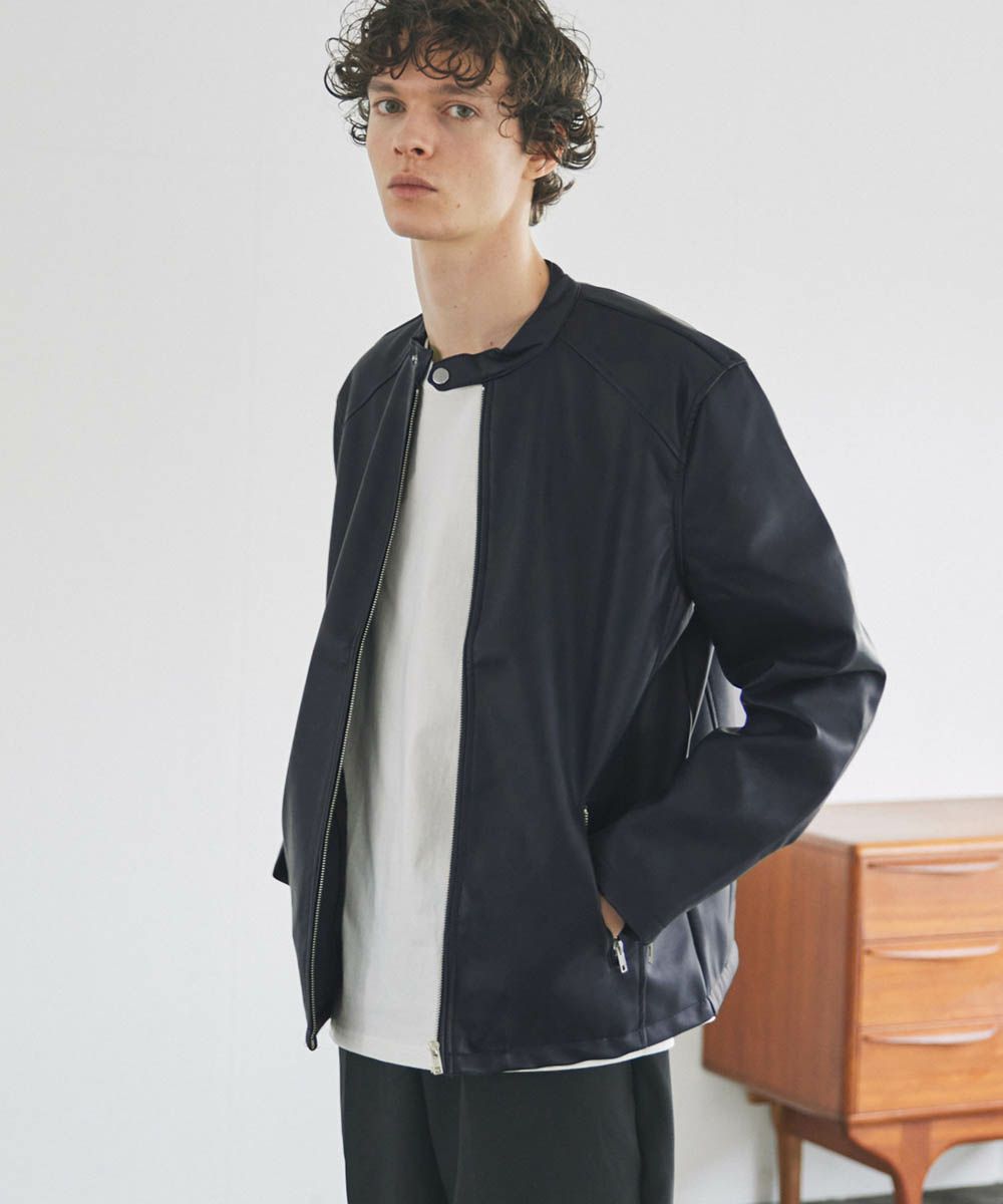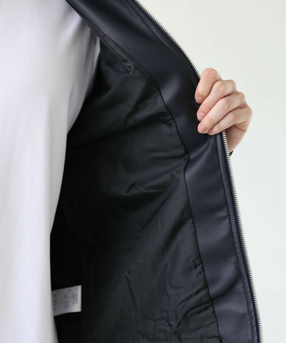 フィット感がありつつも動きやすいサイジングで、日々のコーディネートに活躍するアイテムです。光沢を抑えた細かなシボ感のあるPUレザーを使用し、上品な印象で着こなせます。裏地付きで引っ掛かりがなくスムーズに着脱可能。秋から春にかけて1着あると着こなしをグッと引き締めてくれる一着です。