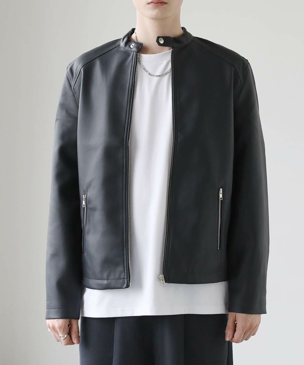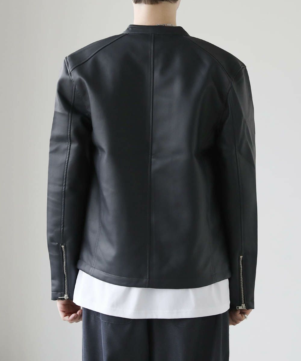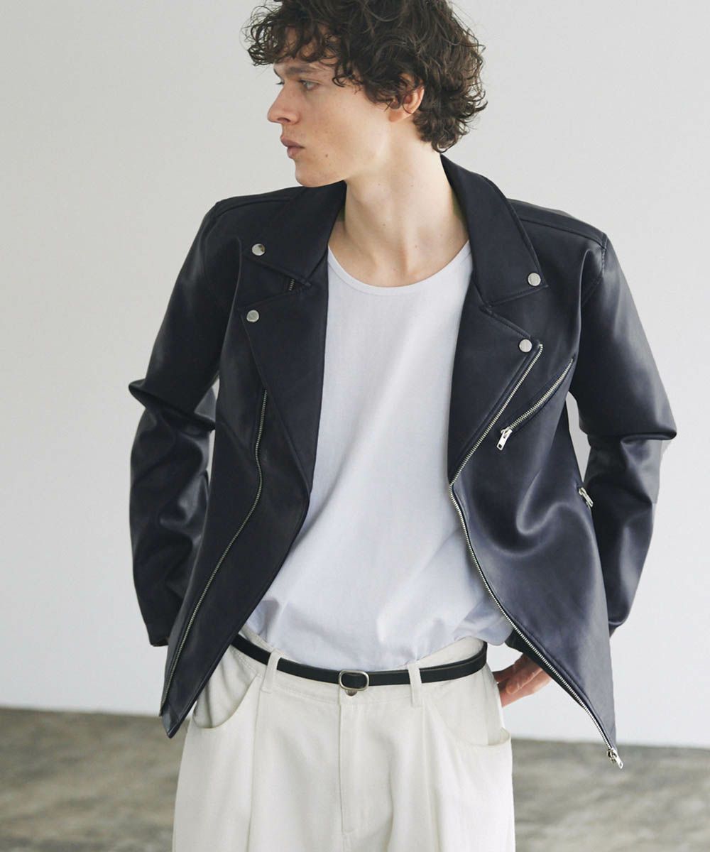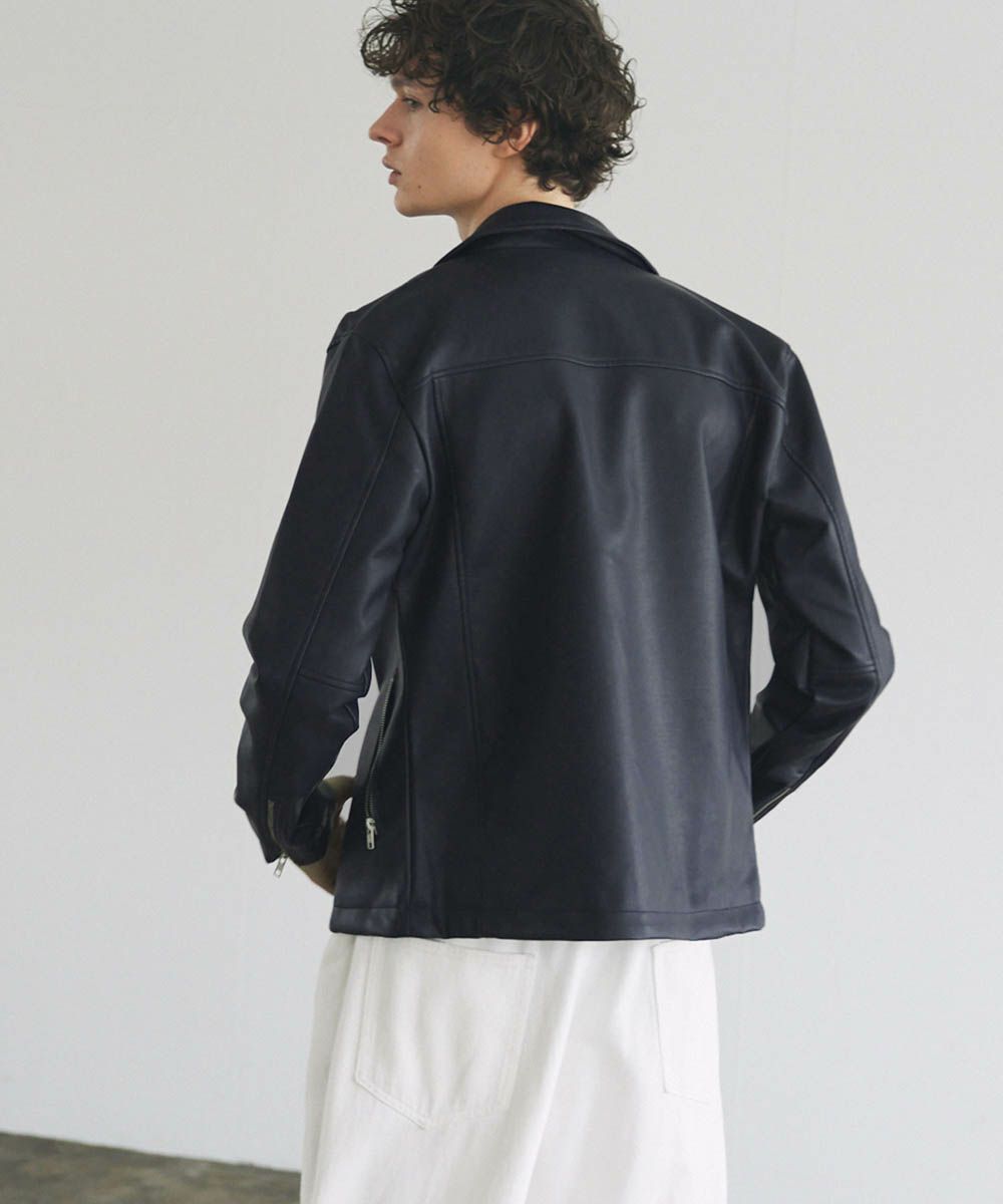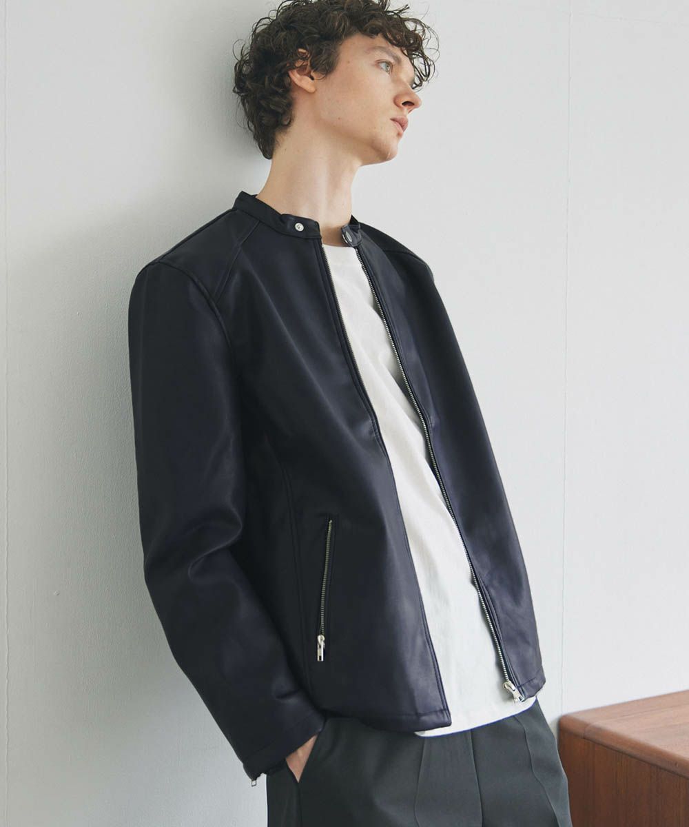 フィット感がありつつも動きやすいサイジングで、日々のコーディネートに活躍するアイテムです。光沢を抑えた細かなシボ感のあるPUレザーを使用し、上品な印象で着こなせます。裏地付きで引っ掛かりがなくスムーズに着脱可能。秋から春にかけて1着あると着こなしをグッと引き締めてくれる一着です。