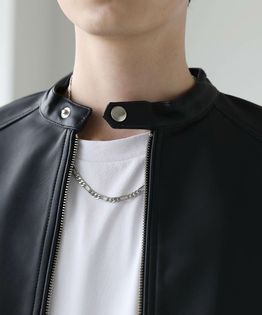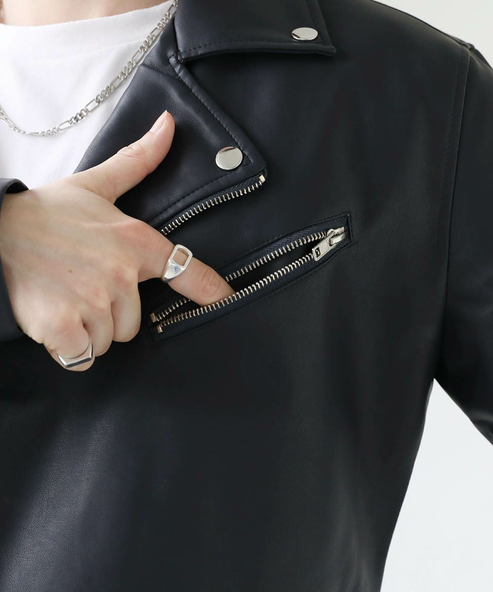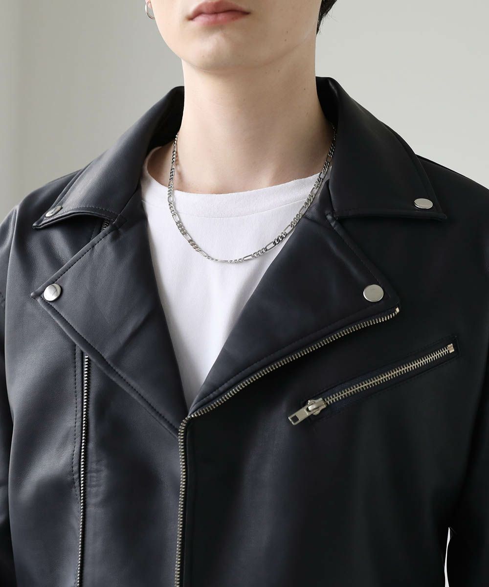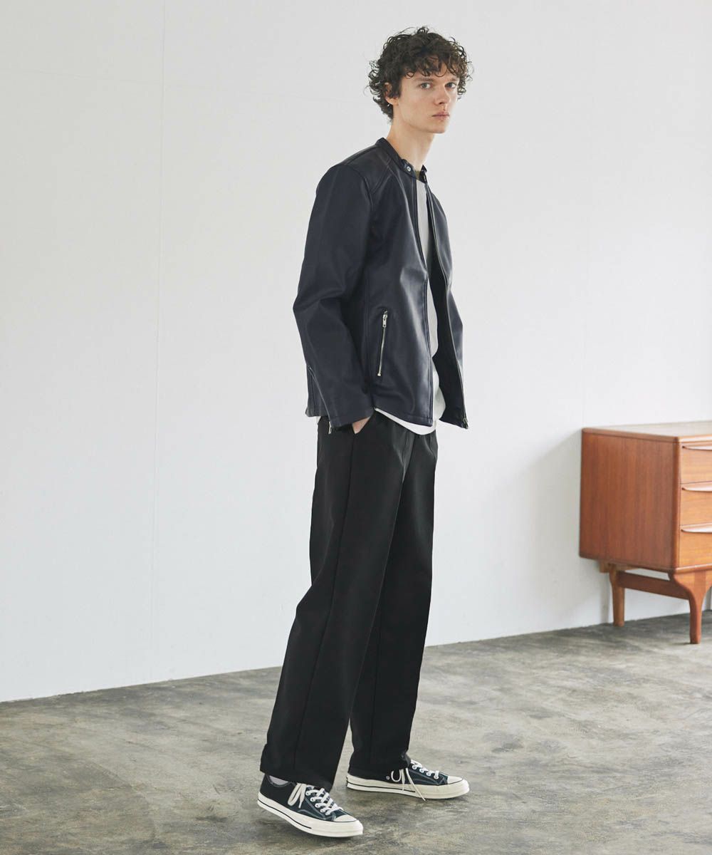 フィット感がありつつも動きやすいサイジングで、日々のコーディネートに活躍するアイテムです。光沢を抑えた細かなシボ感のあるPUレザーを使用し、上品な印象で着こなせます。裏地付きで引っ掛かりがなくスムーズに着脱可能。秋から春にかけて1着あると着こなしをグッと引き締めてくれる一着です。