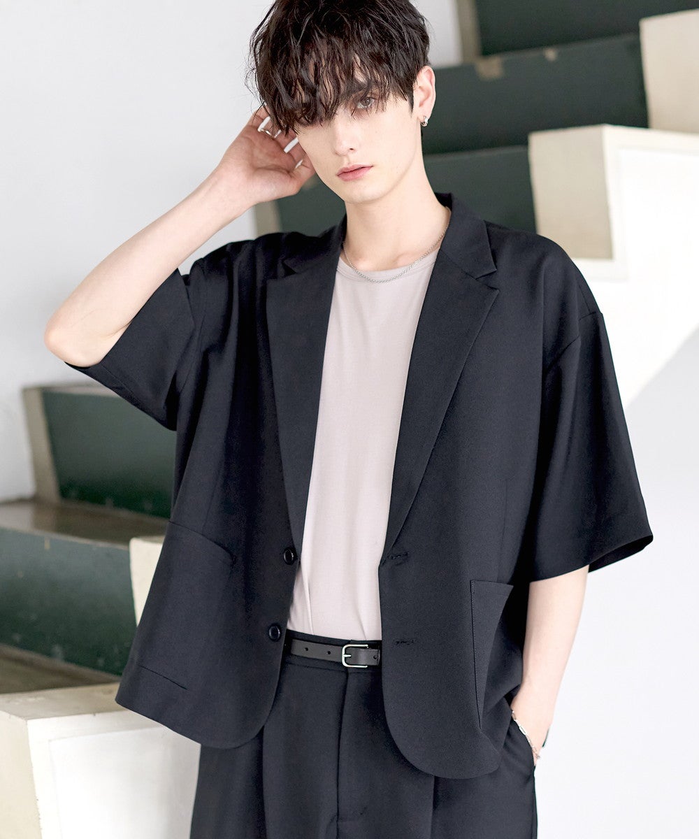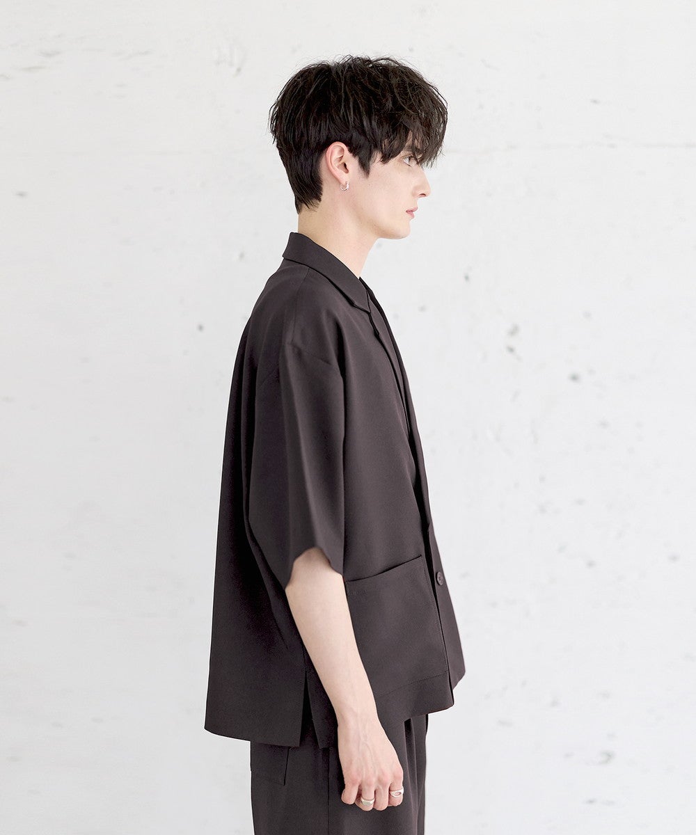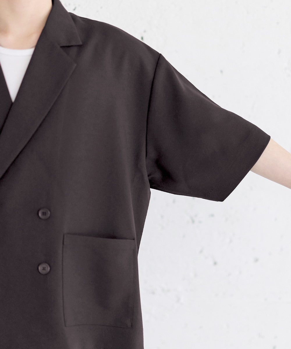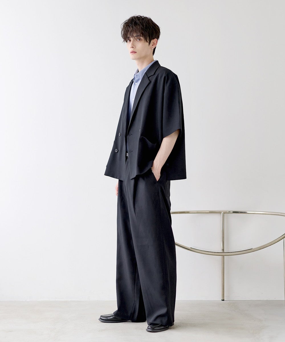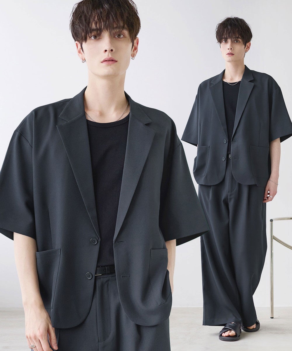 【セットアップ 2点セット】ダブルテーラード半袖シャツ+ワイドバギーイージーパンツ