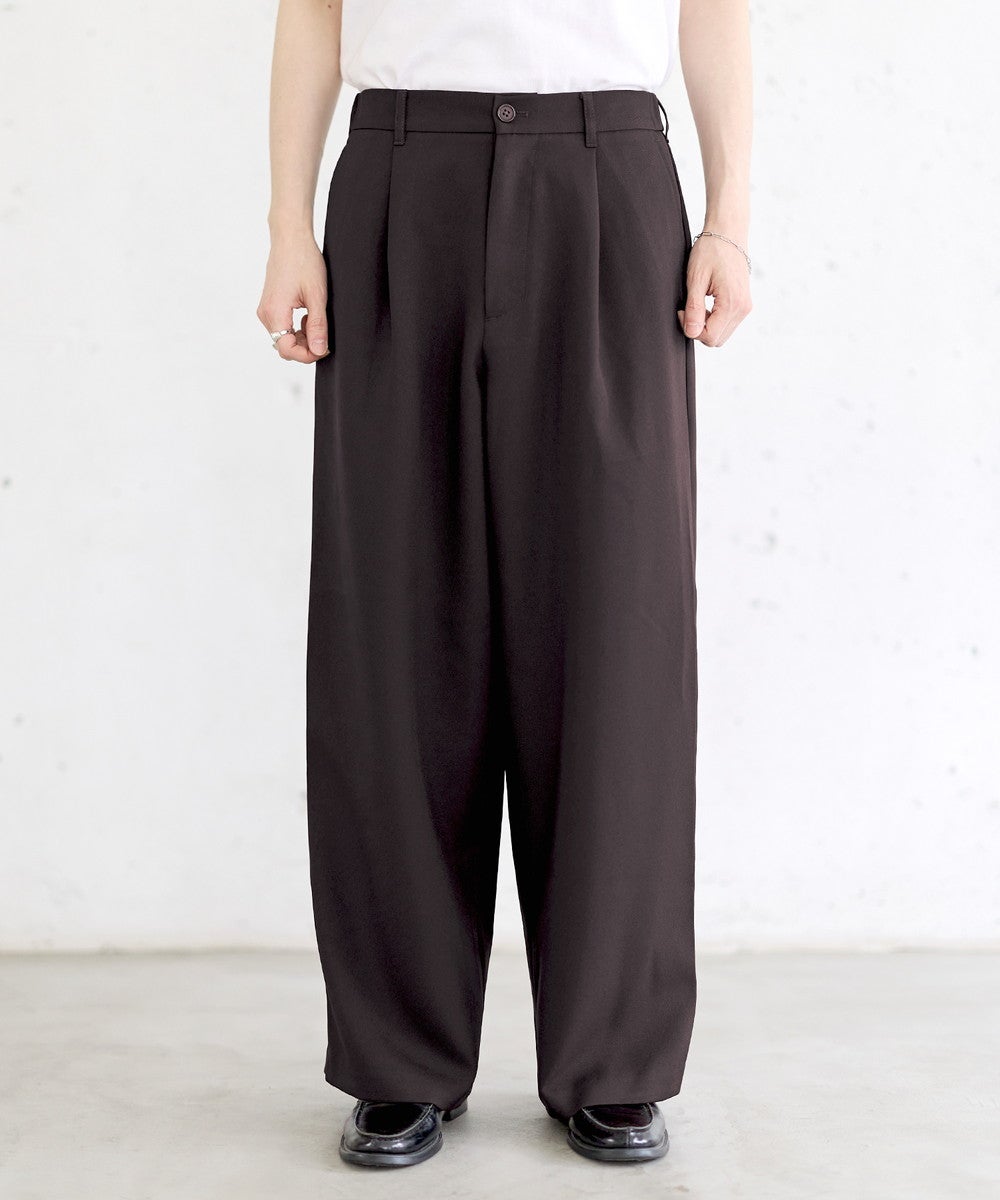 【セットアップ2点セット】 ドルマン長袖シャツ&バギータックワイドスラックス