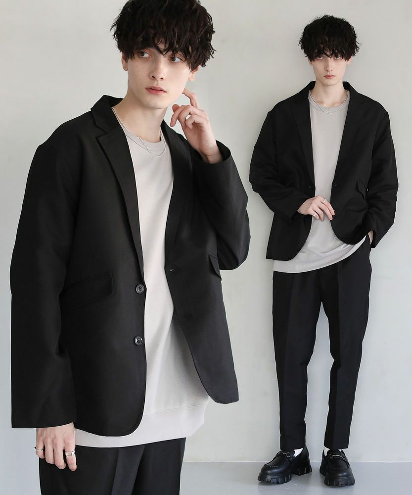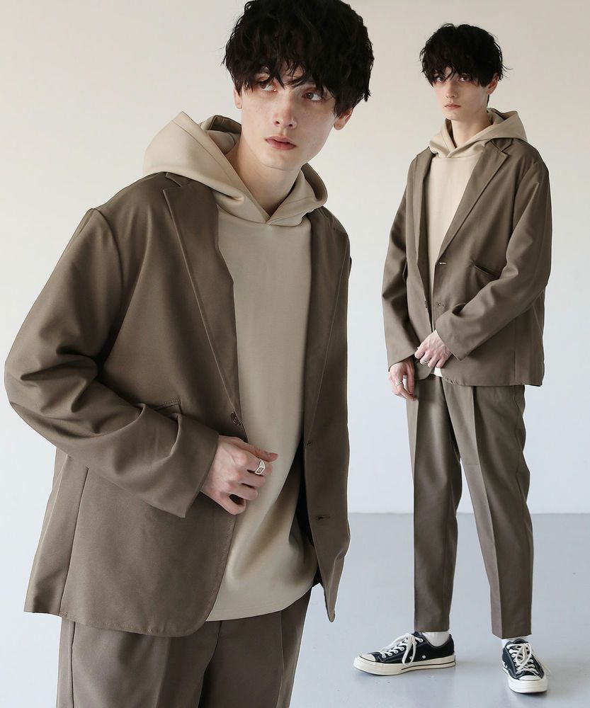 ルーズシルエットでリラックス感のあるテーラードジャケットとテーパードスラックスのセットアイテムです。定番のブラックやネイビーに加え、今着たいくすみ系のニュアンスカラーを厳選。