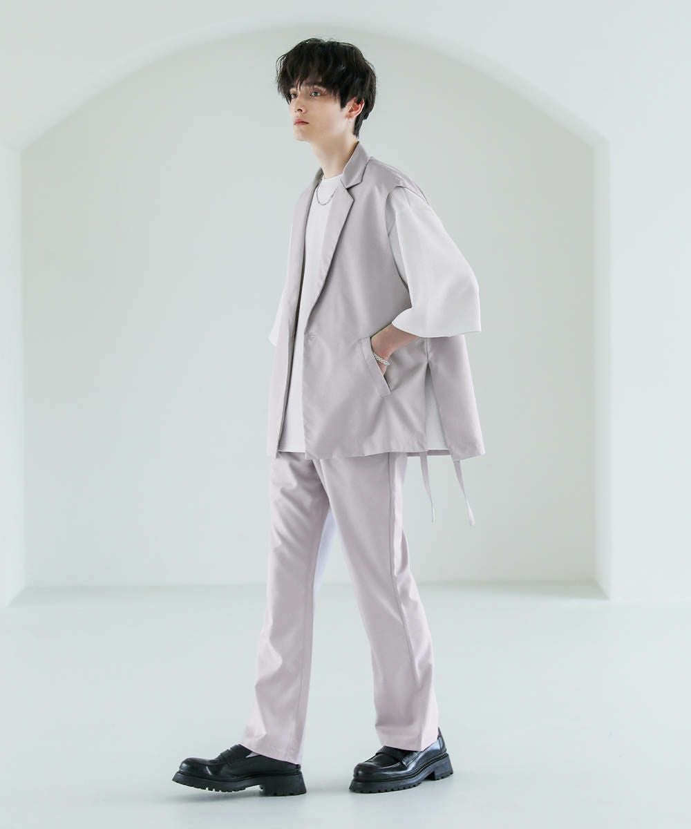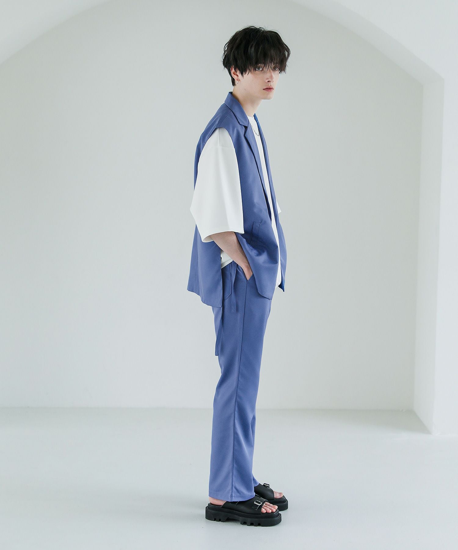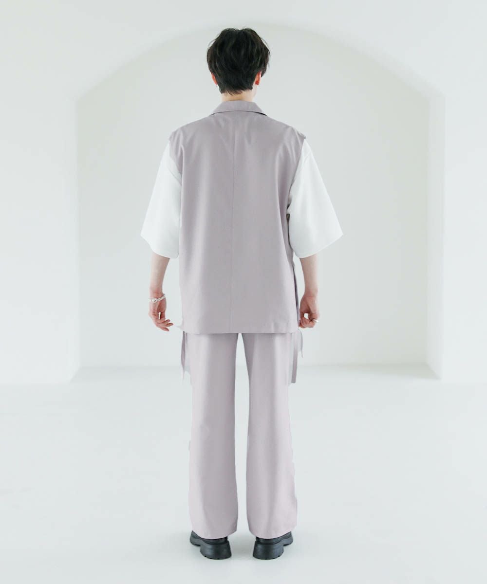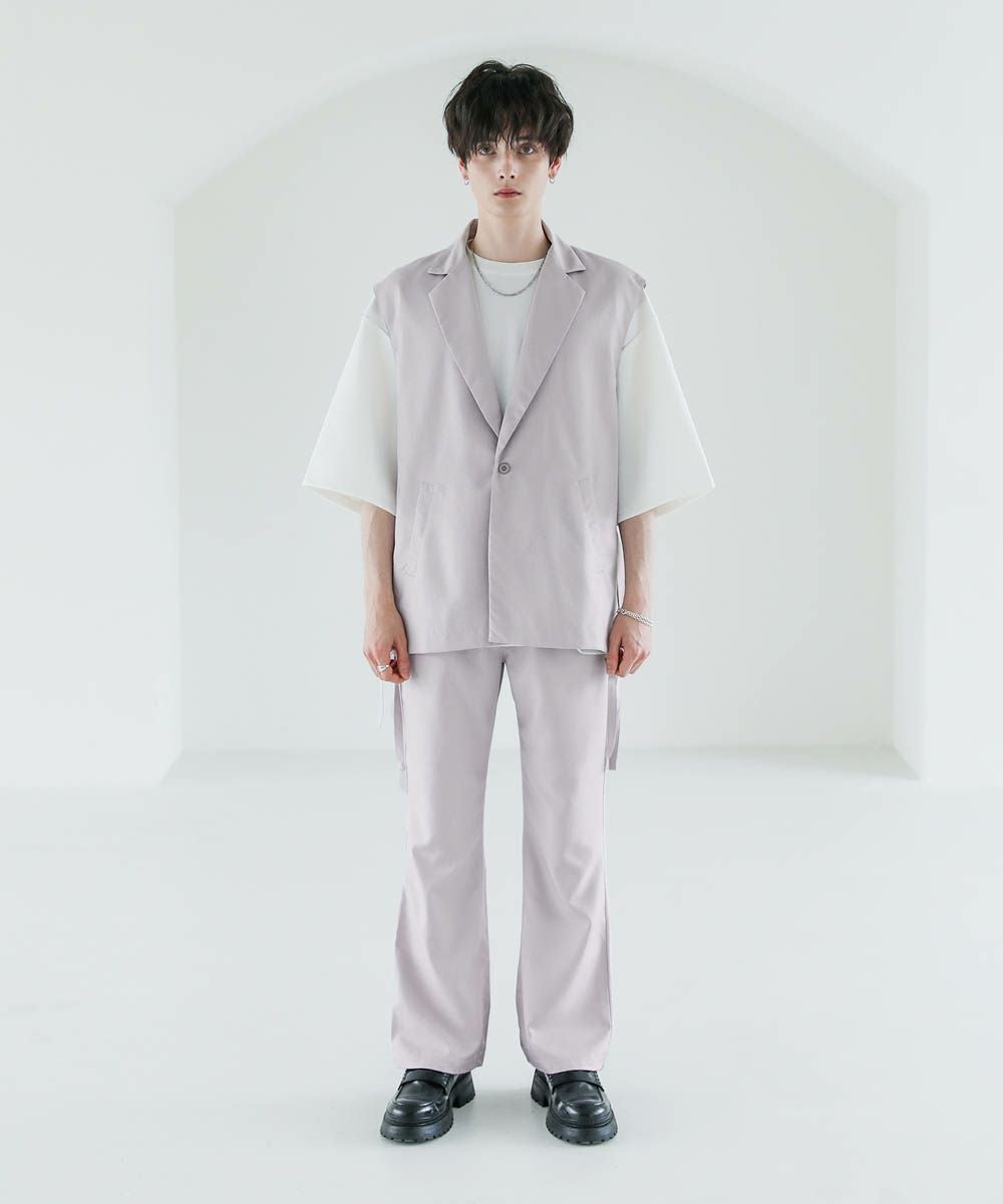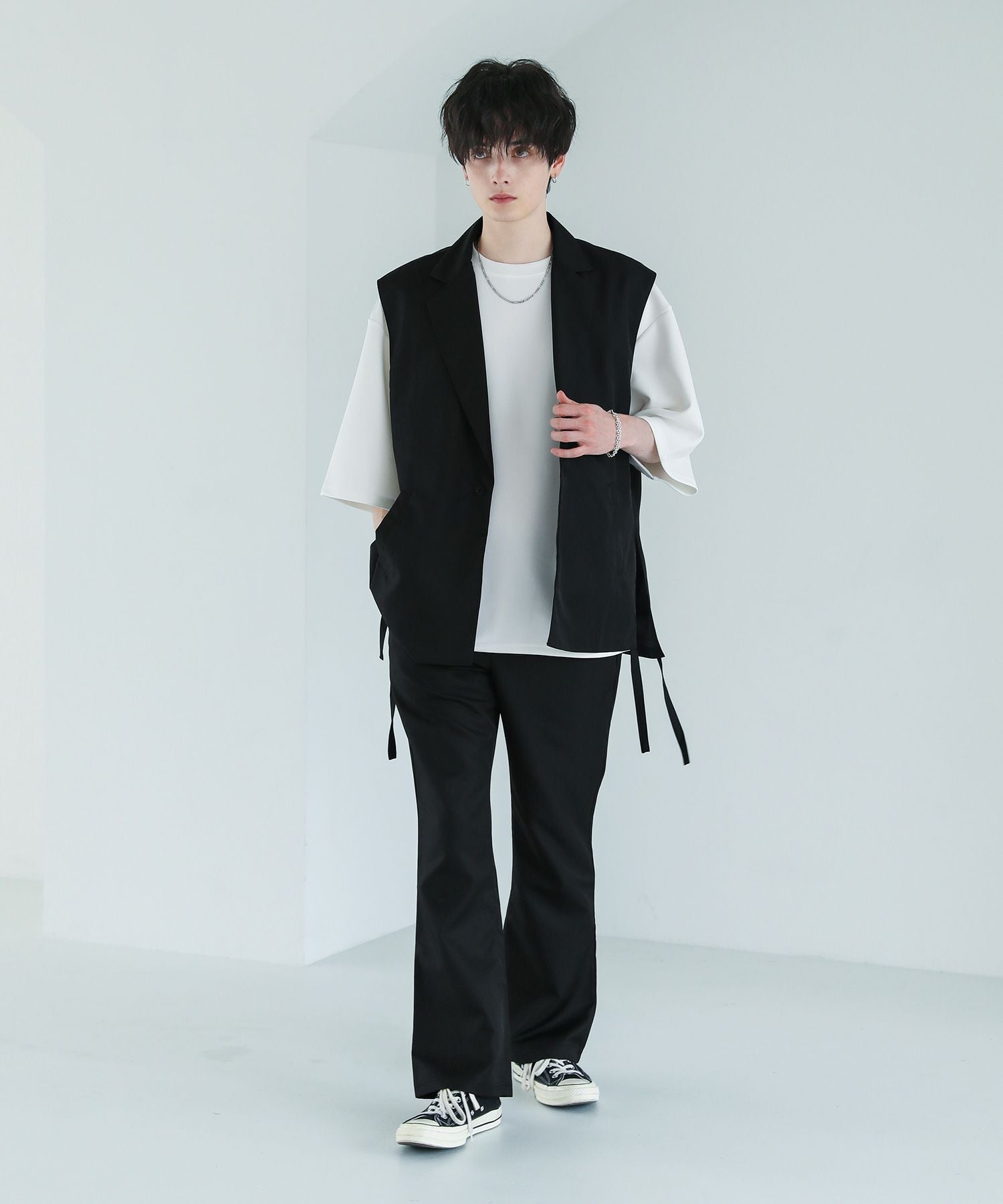 【セットアップ 3点セット】サイドコードジレベスト&ポンチ5分袖カットソー&イージーフレアパンツ