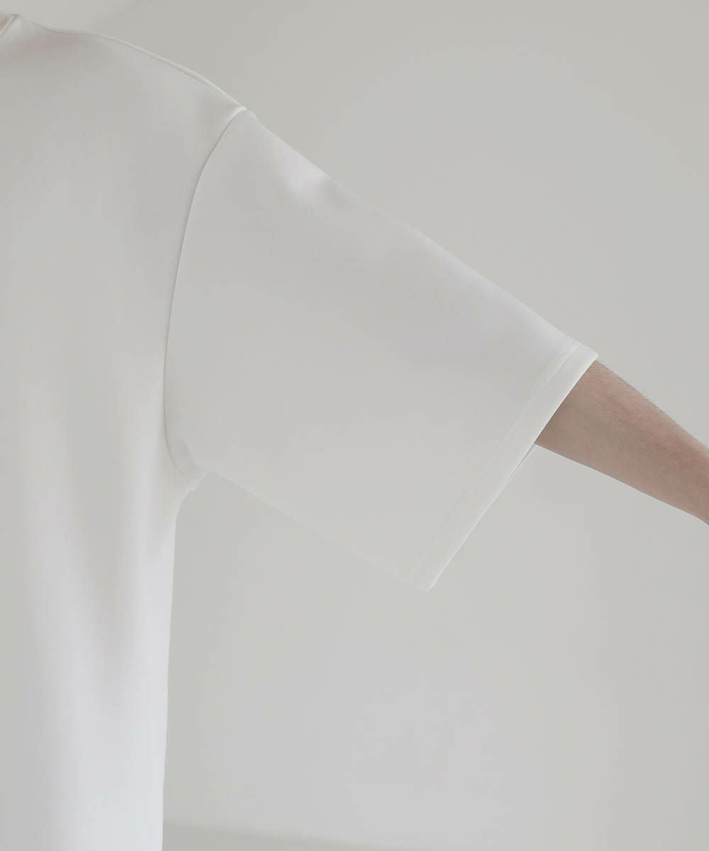 半袖カットソーは伸縮性に優れたポンチ素材を使用。ハリのある膨らみやもっちりとした弾力のある肉感が肌に優しい柔らかな生地です。ほんのりと上品な艶感も備えているので、一枚着としても活躍します。
