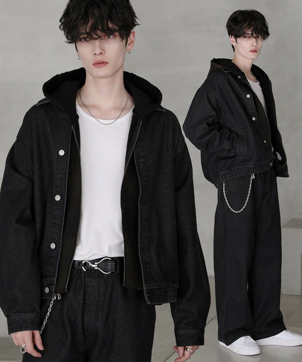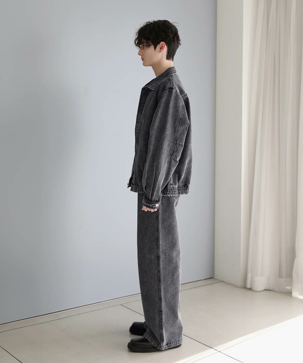 【セットアップ 2点セット】ショートデニムブルゾン+ワイドバギーオーバーパンツ