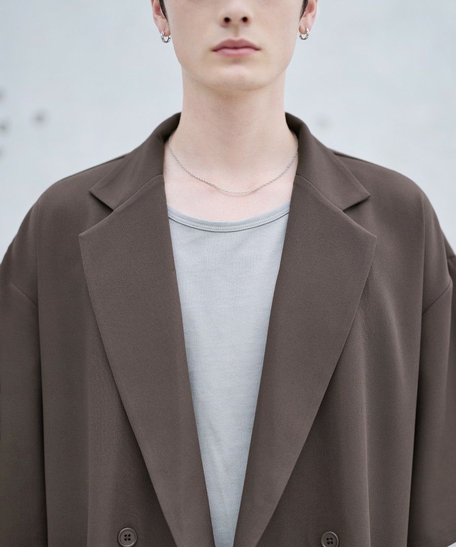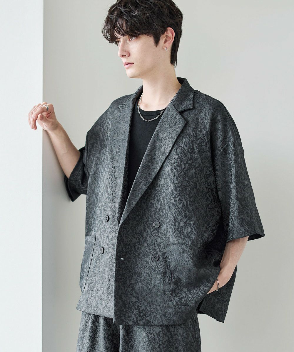 ビッグシルエットとドロップショルダーがリラックス感たっぷりの半袖シャツ。ダブル仕様の前立やダブルボタンなどテーラードジャケットの要素を取り入れつつ、さっと気軽に羽織れるシャツアイテムです。肘までかかる長めの5分袖や、サイドに施したスリットでこなれ感のあるコーディネートに。程よいドレープ感のある素材で堅苦しい印象にならず、今っぽい印象で着こなせます。