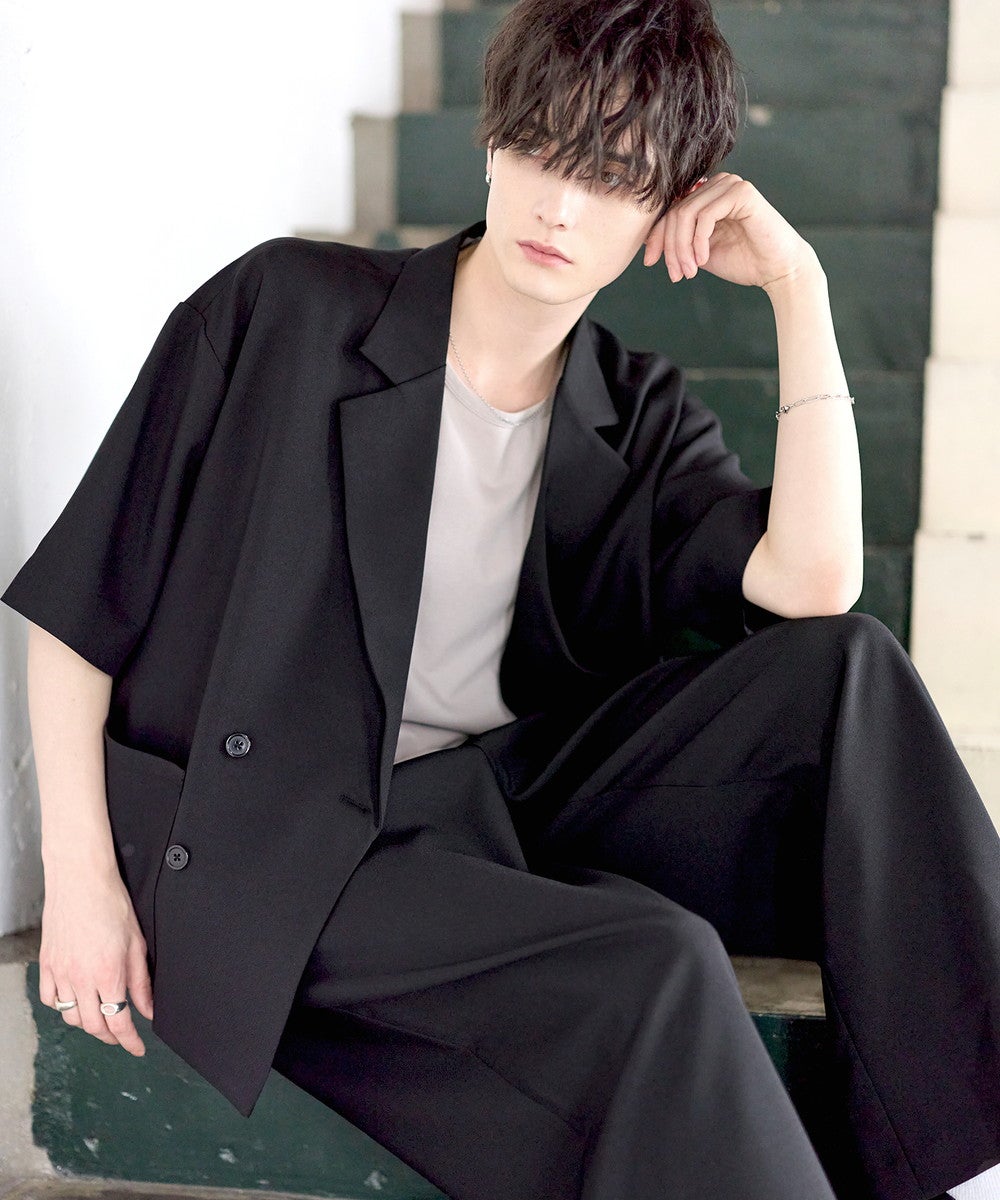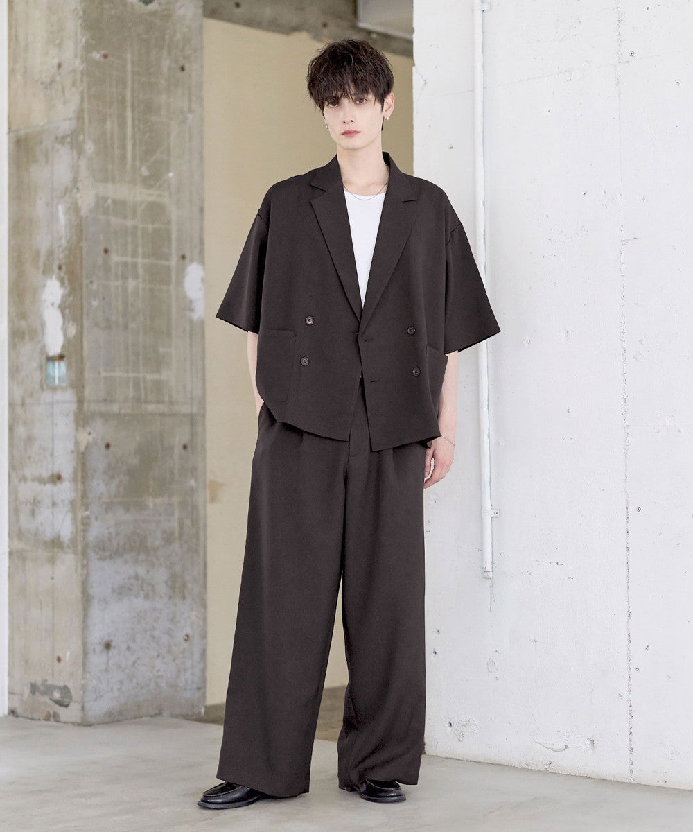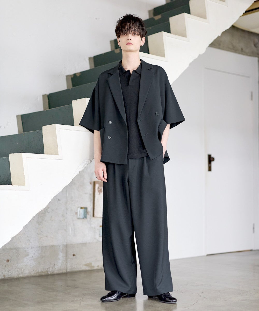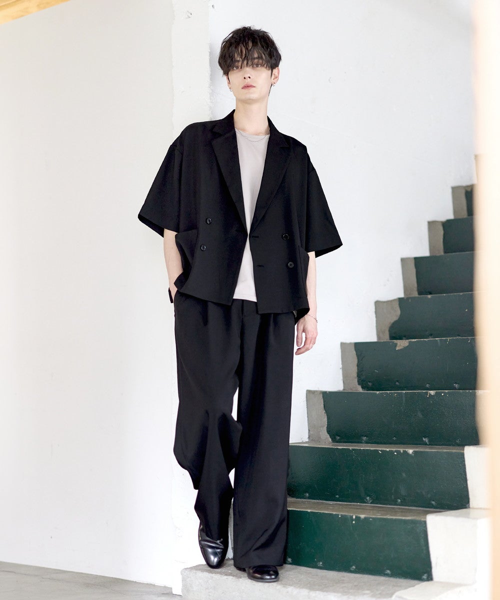 【セットアップ 2点セット】防シワシングル/ダブルテーラード半袖シャツ+タックワイドストレートパンツ