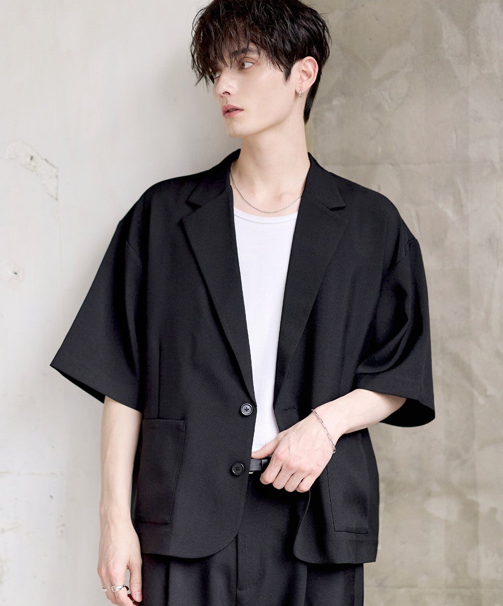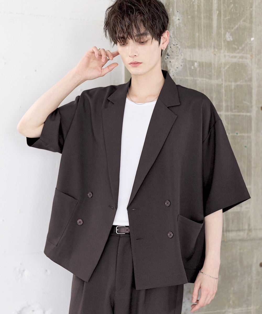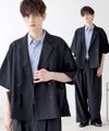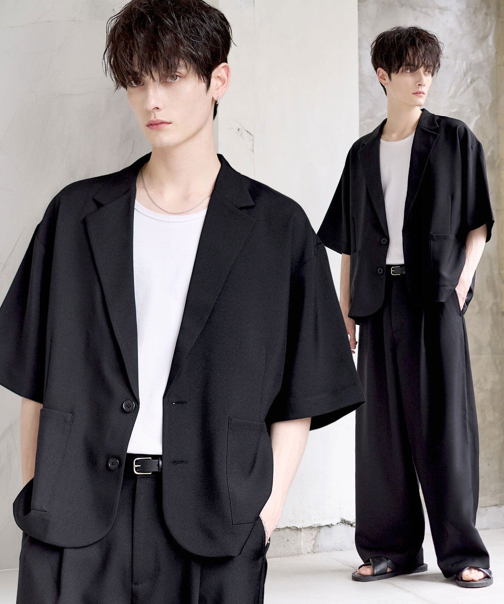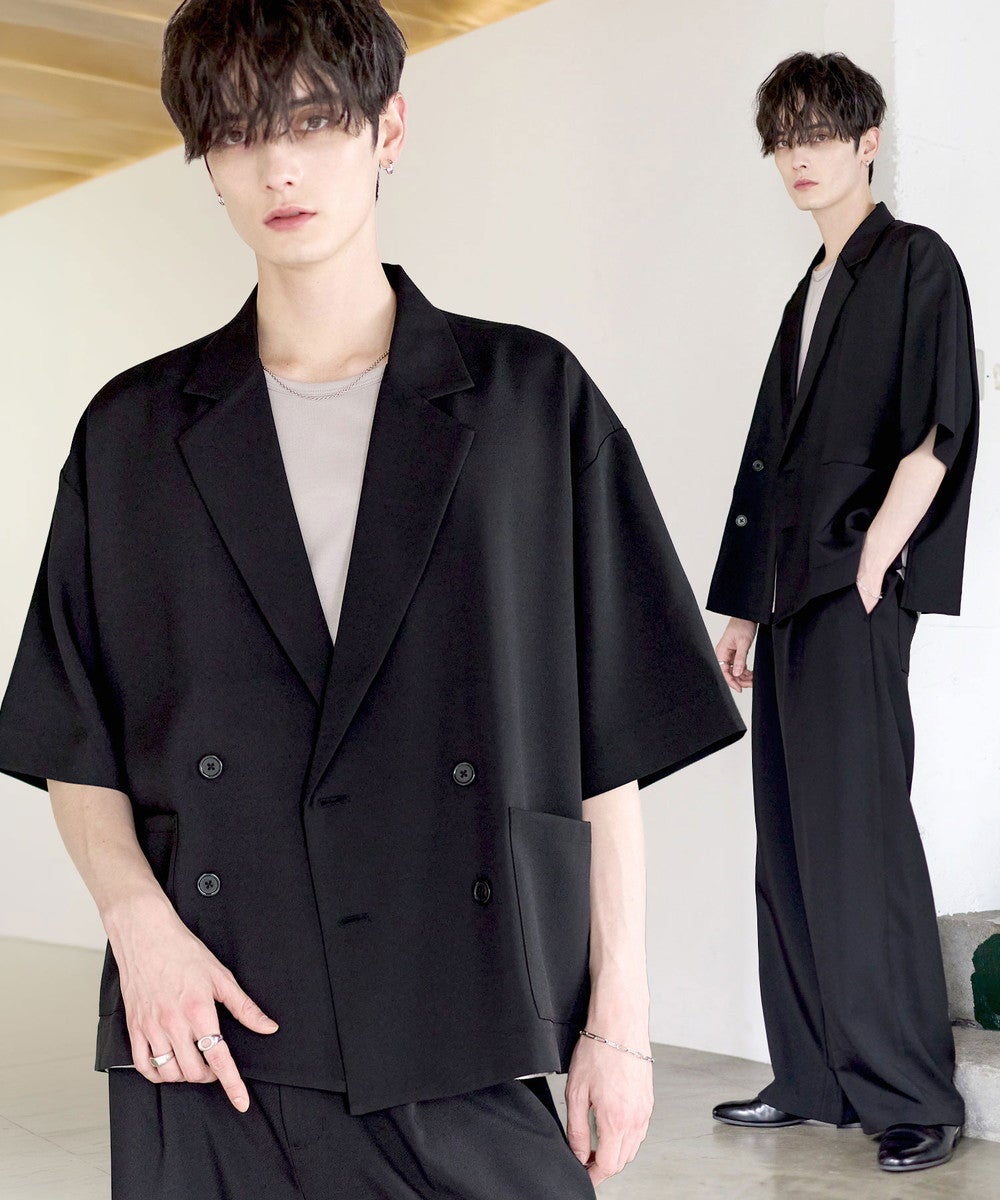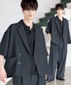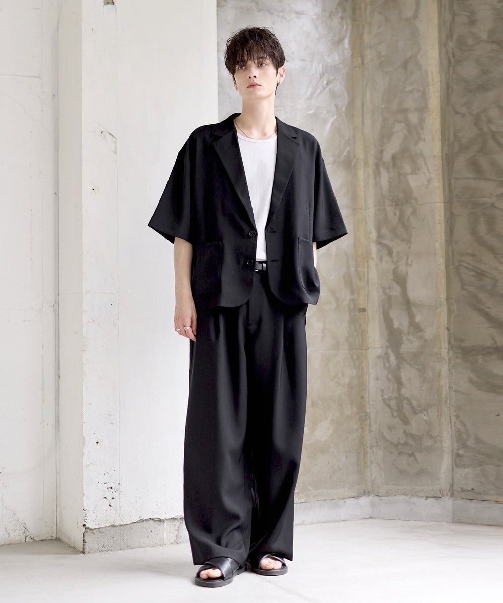 【セットアップ 2点セット】防シワシングル/ダブルテーラード半袖シャツ+タックワイドストレートパンツ